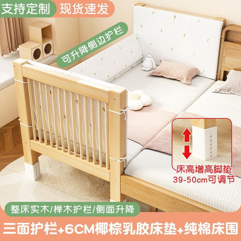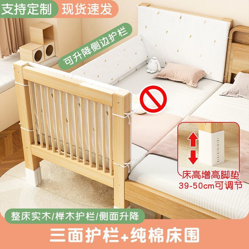 모든 솔리드 우드 어린이 침대 어린이 접합 작은 침대 아기 리프팅 폭 넓은 침대 침대 크립 너도밤 보호대