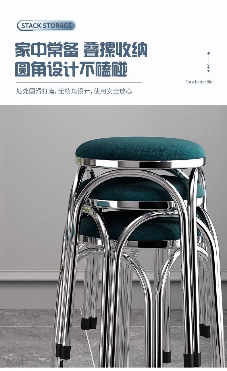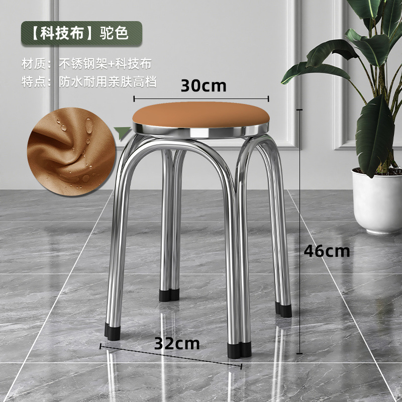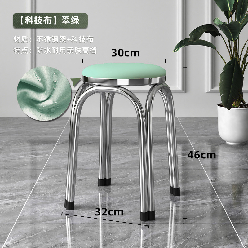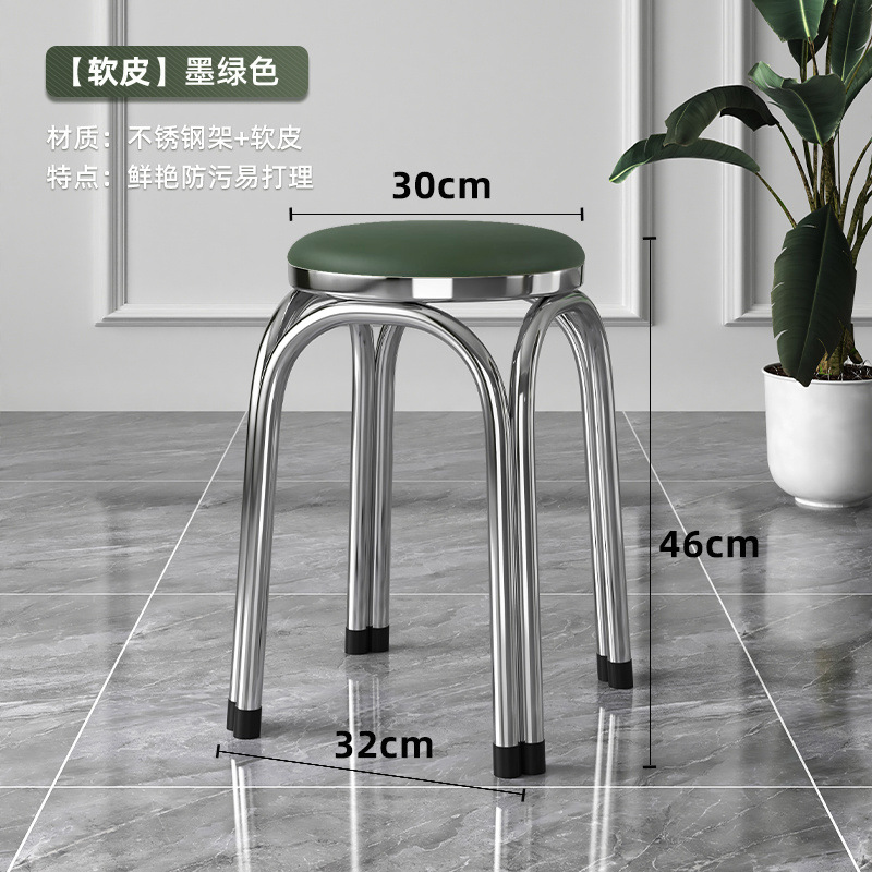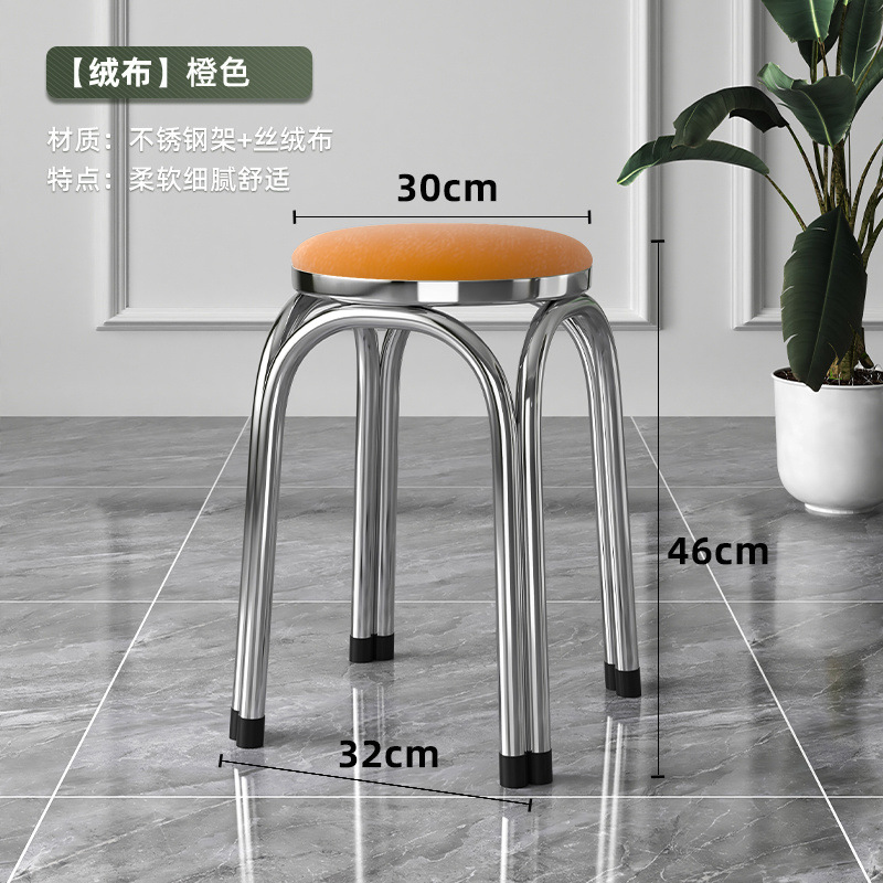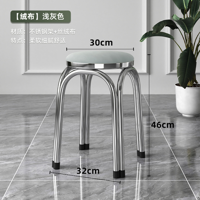 가벼운 고급 스테인레스 스틸 두꺼운 의자 쌓을 수있는 식탁 용 의자 가구 현대 간단한 라운드 의자 낮은 의자 벤치