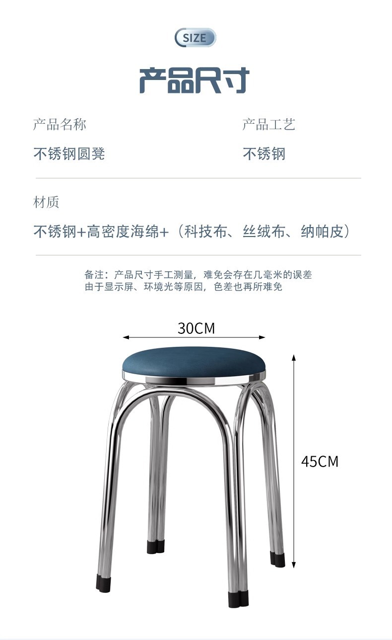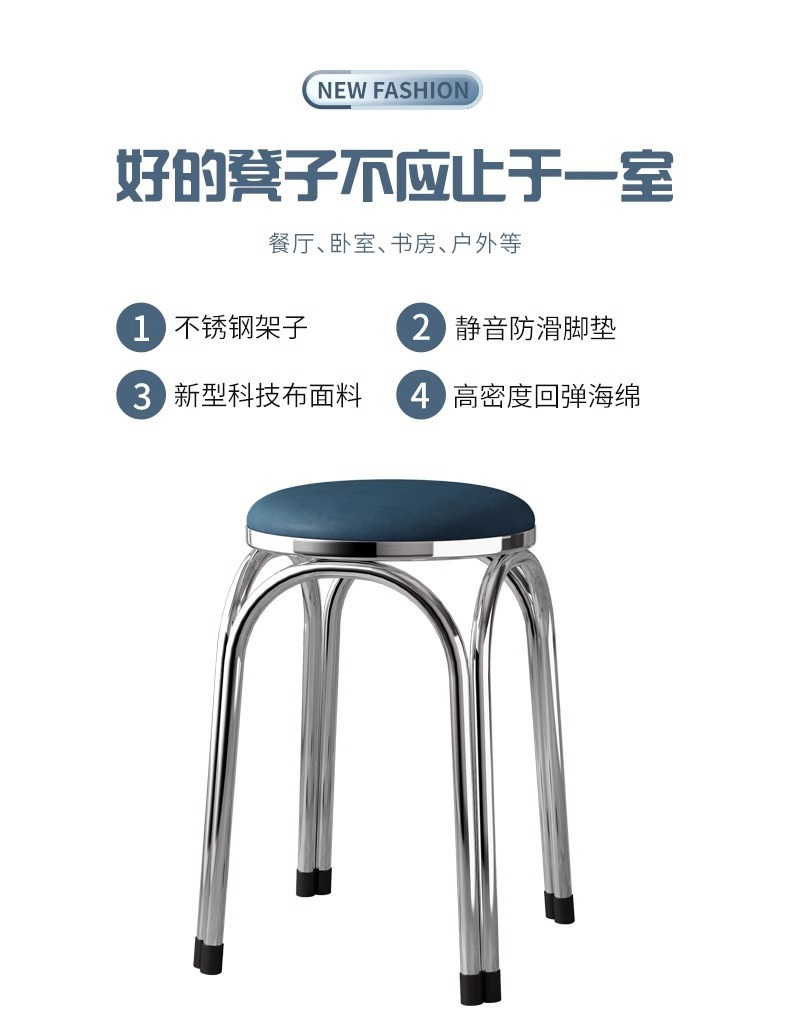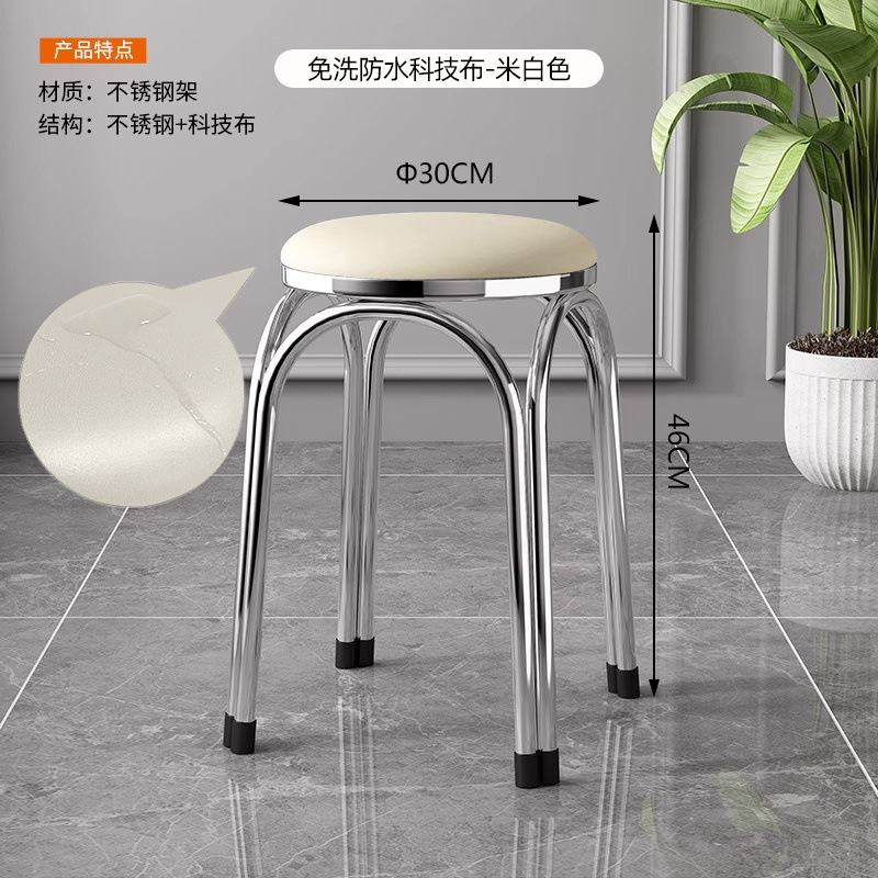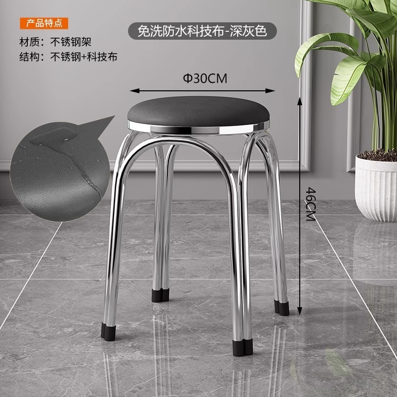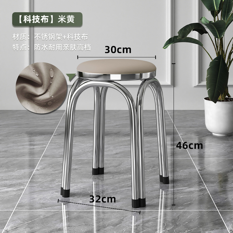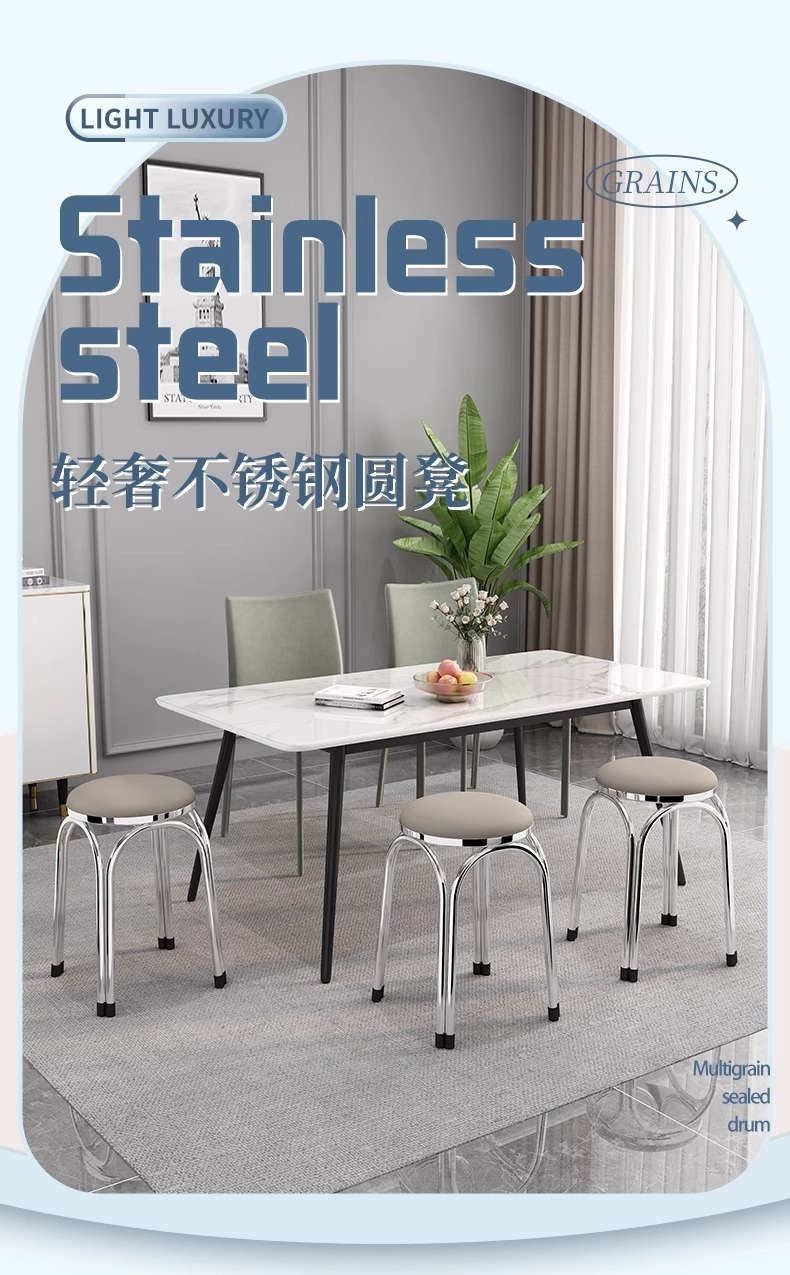 가벼운 고급 스테인레스 스틸 두꺼운 의자 쌓을 수있는 식탁 용 의자 가구 현대 간단한 라운드 의자 낮은 의자 벤치