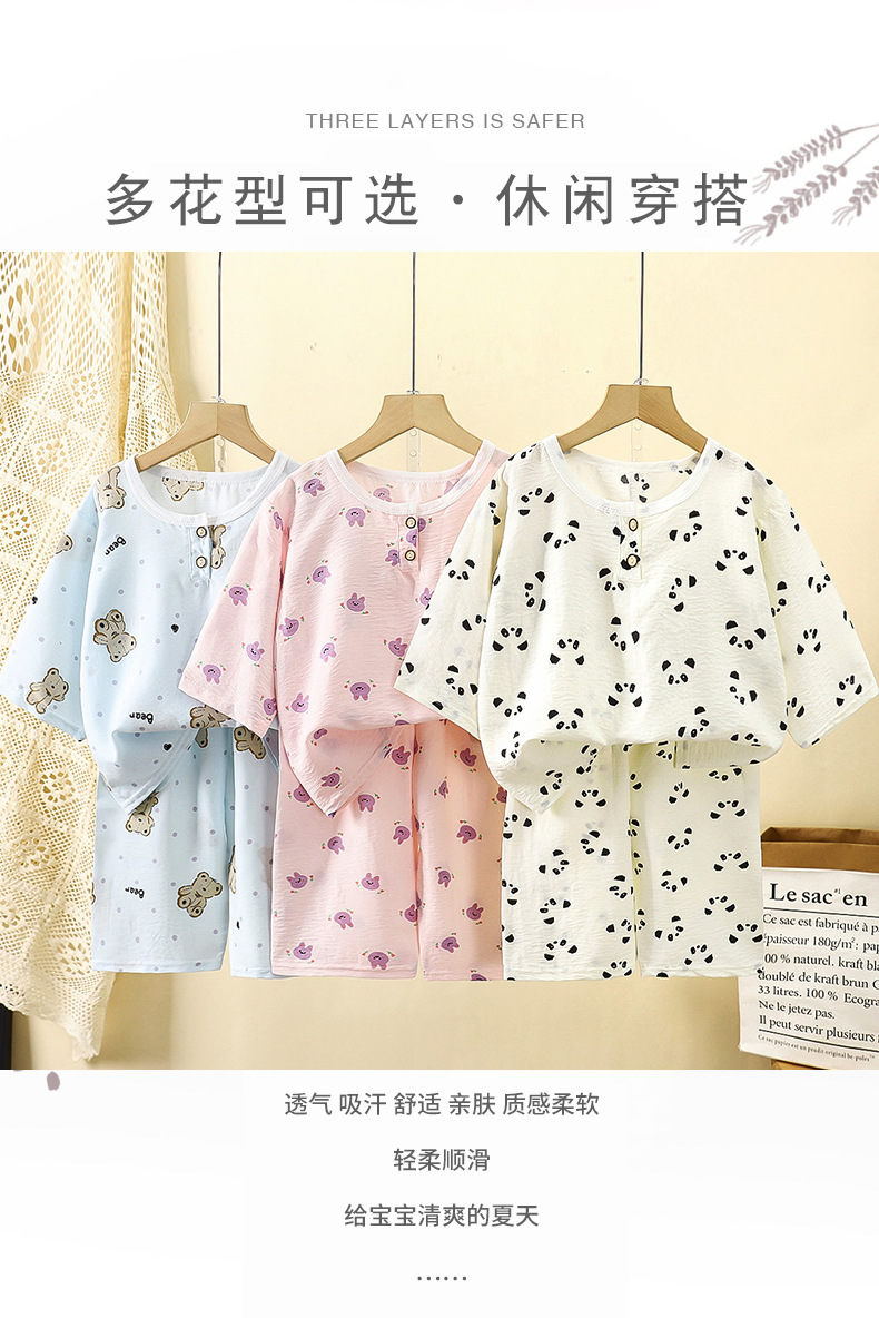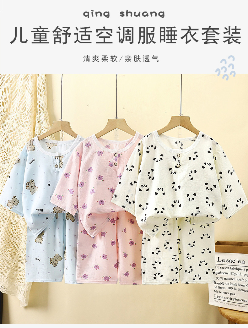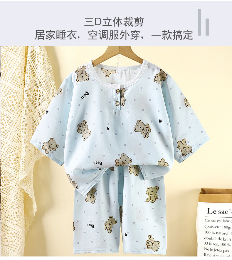 어린이 새 남학생과 여학생 홈 의류 잠옷 세트 얇은 잠옷 에어컨 여름 남녀 보물 뜨거운 세트스토어 가기