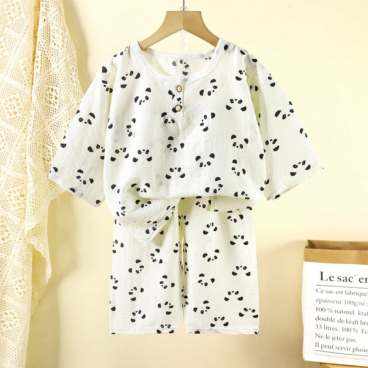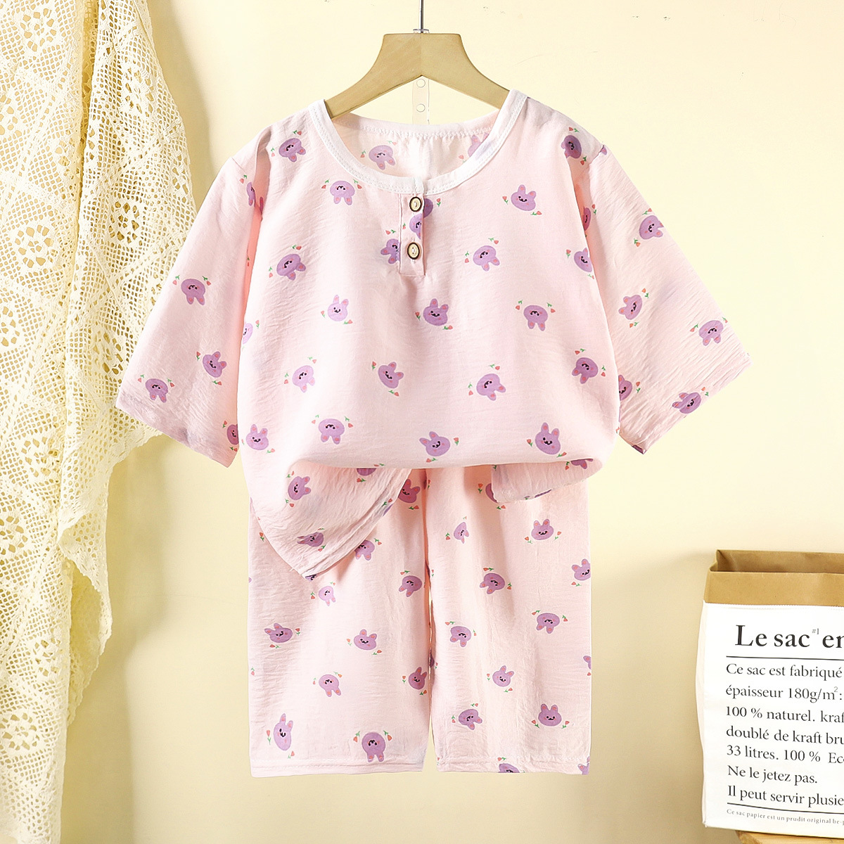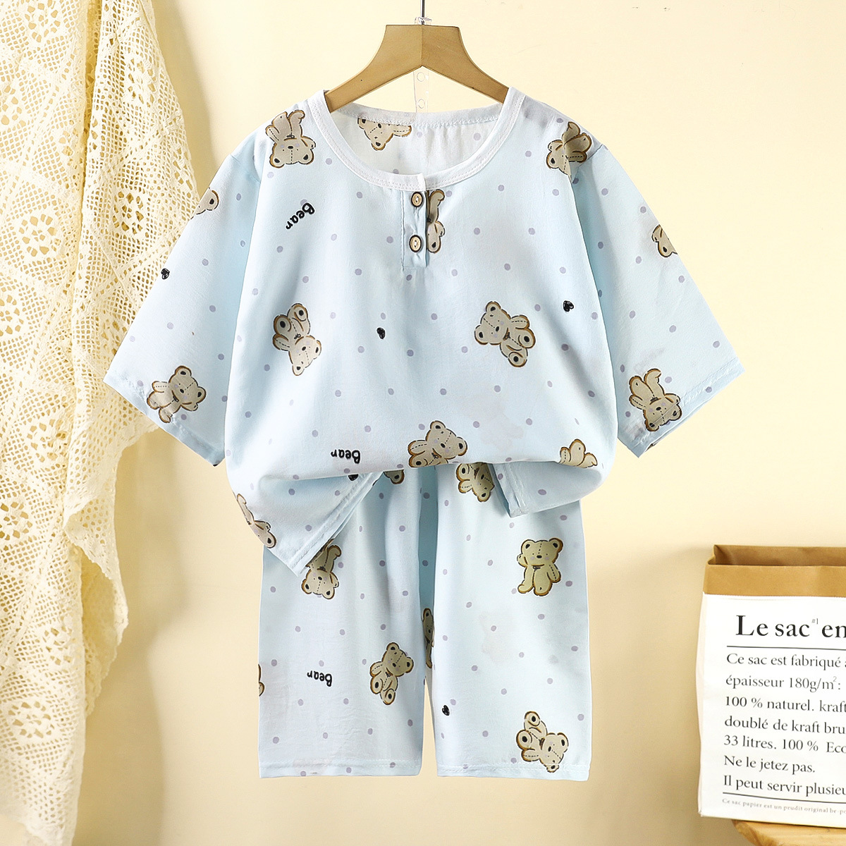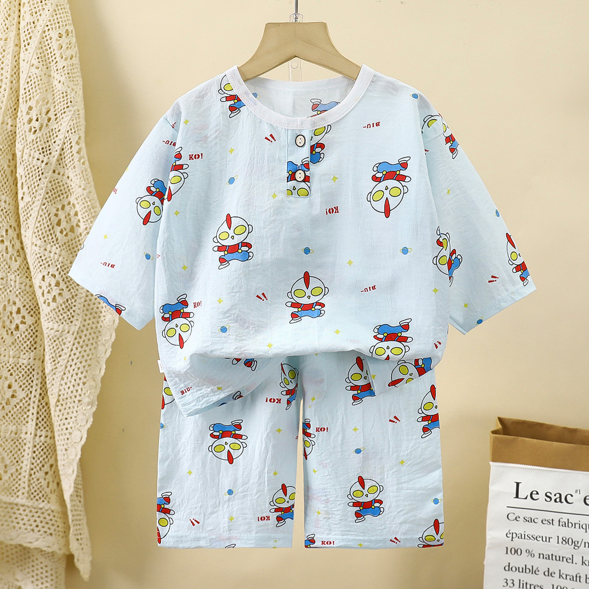 어린이 새 남학생과 여학생 홈 의류 잠옷 세트 얇은 잠옷 에어컨 여름 남녀 보물 뜨거운 세트