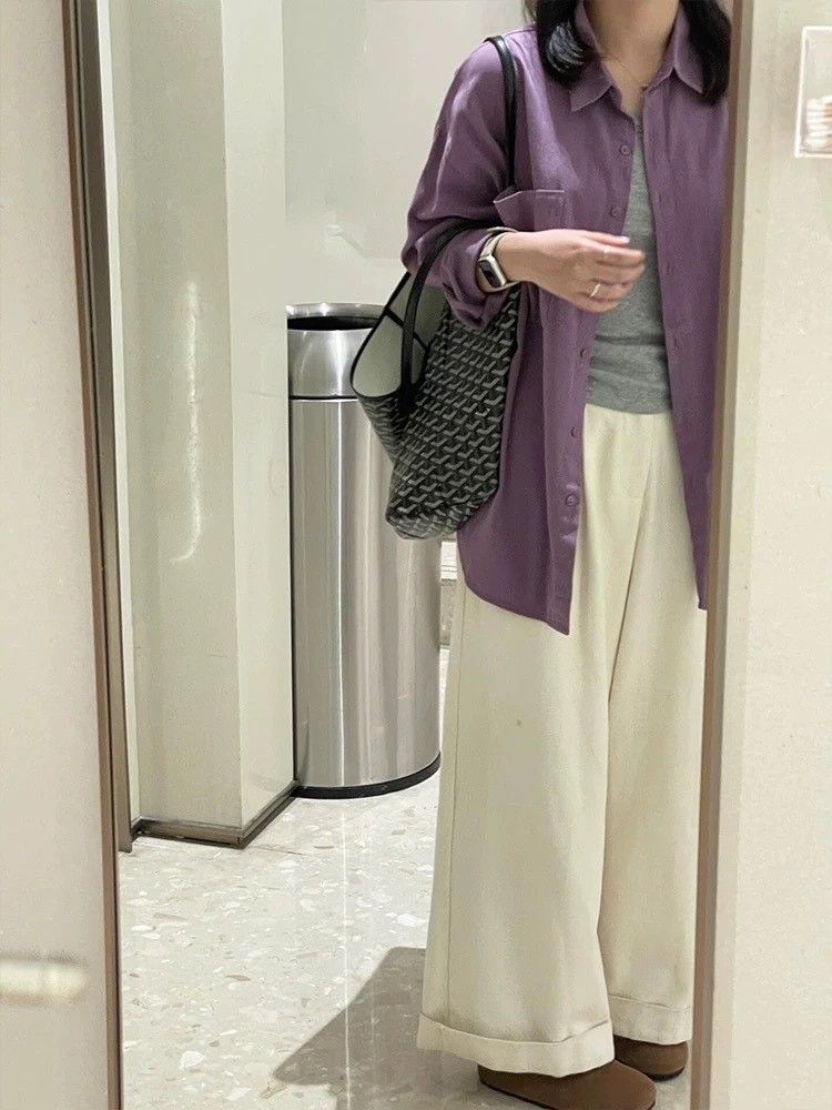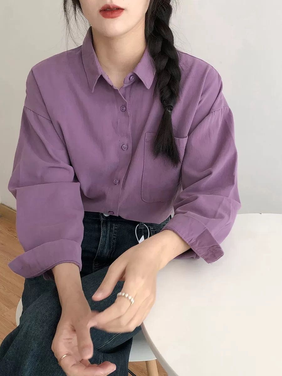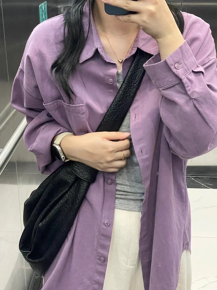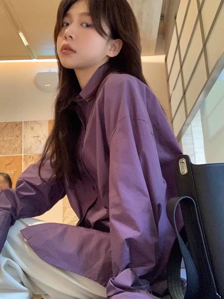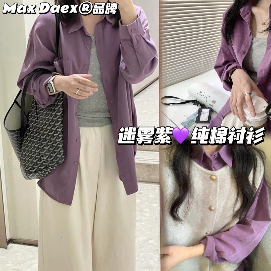 맥스 데이크스 ® 브랜드 미스트 퍼플 셔츠 여성 고급 한국 스타일 루즈 캐주얼 다용도 화이트 탑 재킷스토어 가기