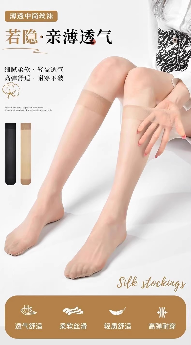 실크 스타킹 미드 튜브 여성용 얇은 안티 후크 실크 여름 송아지 스타킹 보이지 않는 미끄럼 방지 미드 길이 Fleshy 짧은 크리스탈 양말스토어 가기