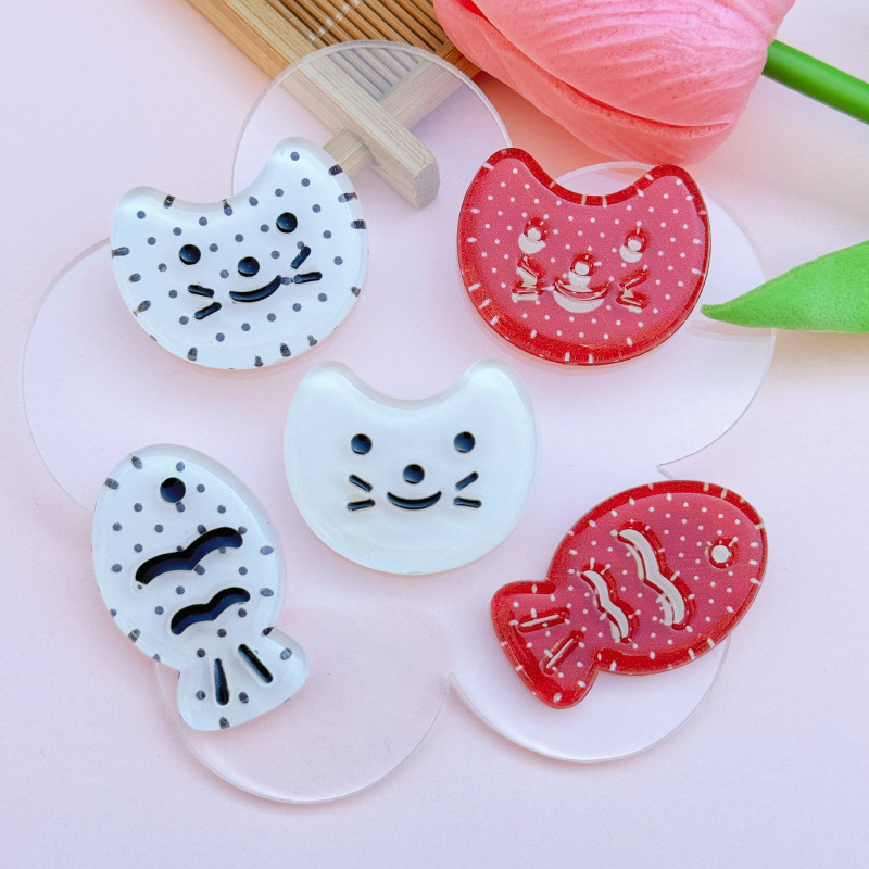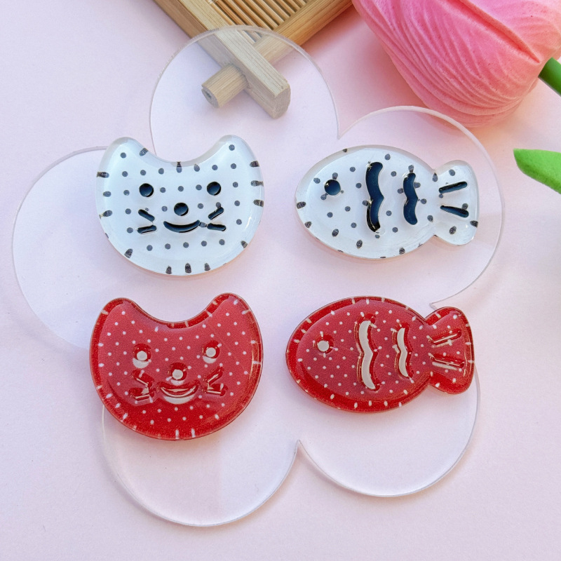 투명 컬러 도트 흑백 새끼 고양이 물고기 아크릴 diy 액세서리 휴대 전화 쉘 신발 버클 신발 꽃 헤어 액세서리 소재