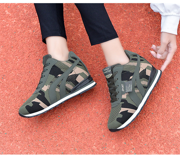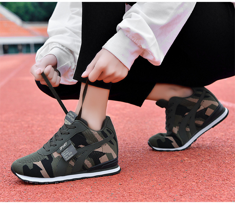 봄과 가을 새로운 스타일 플라이 짠 위장 내부 강화 스포츠 신발 캐주얼 여행 신발 초대형 여성 신발 위장 시리즈스토어 가기