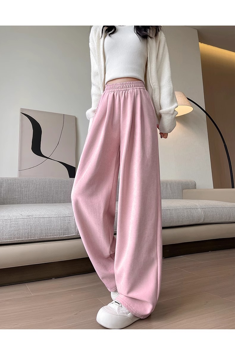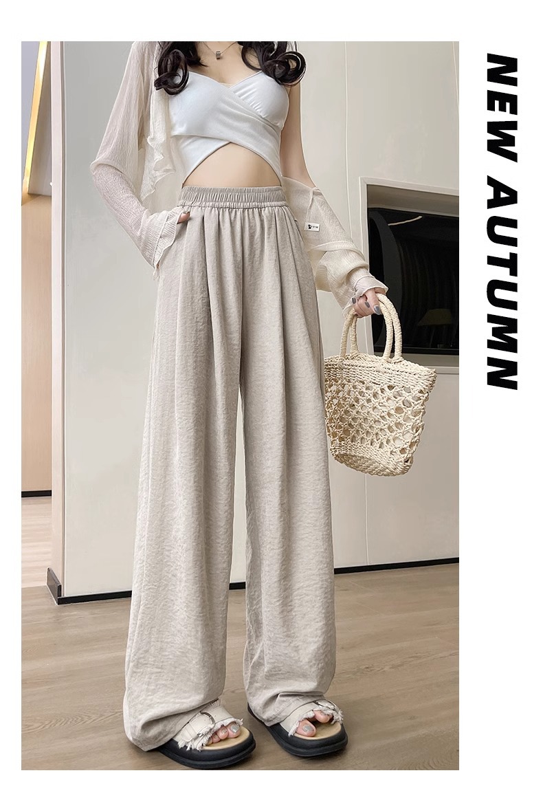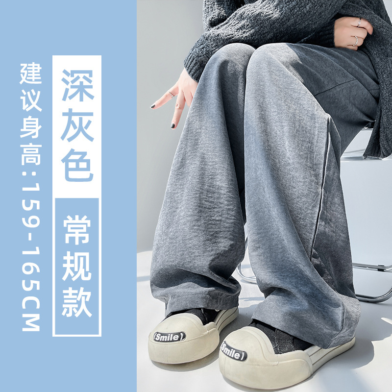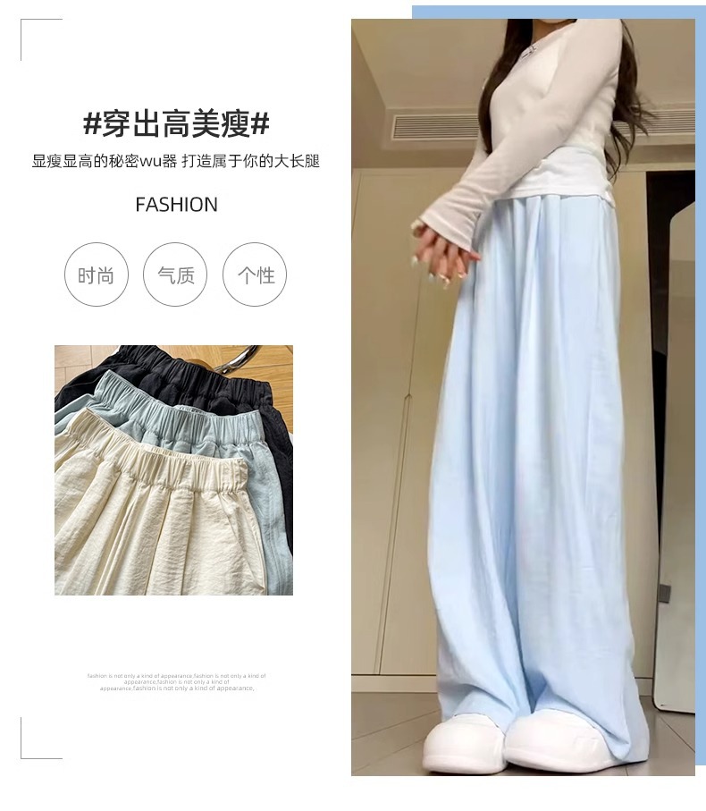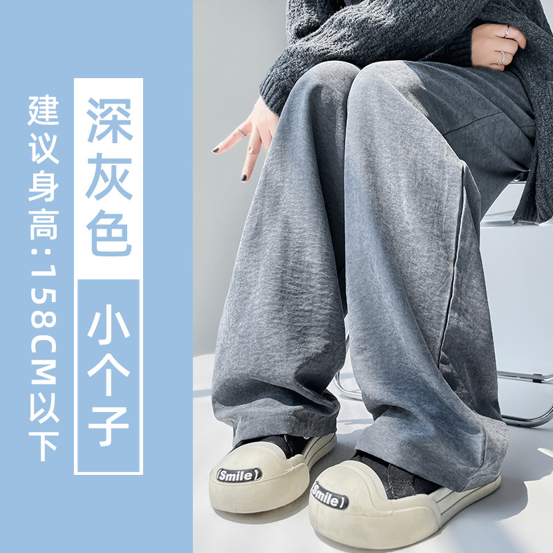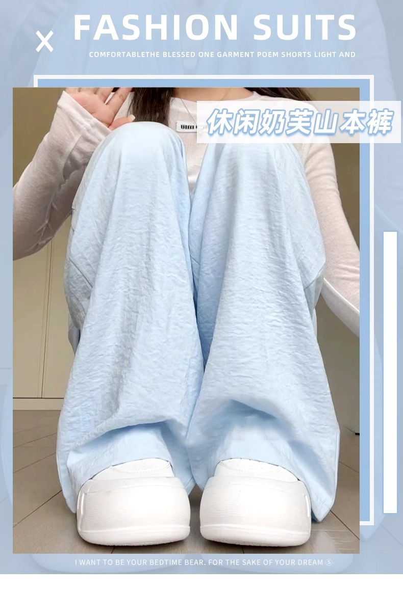 블루 밀크 푸 야마모토 바지 여성의 봄과 가을 2025 새로운 높은 허리 투약 캐주얼 작은 얇은 스트레이트 와이드 다리 바지스토어 가기
