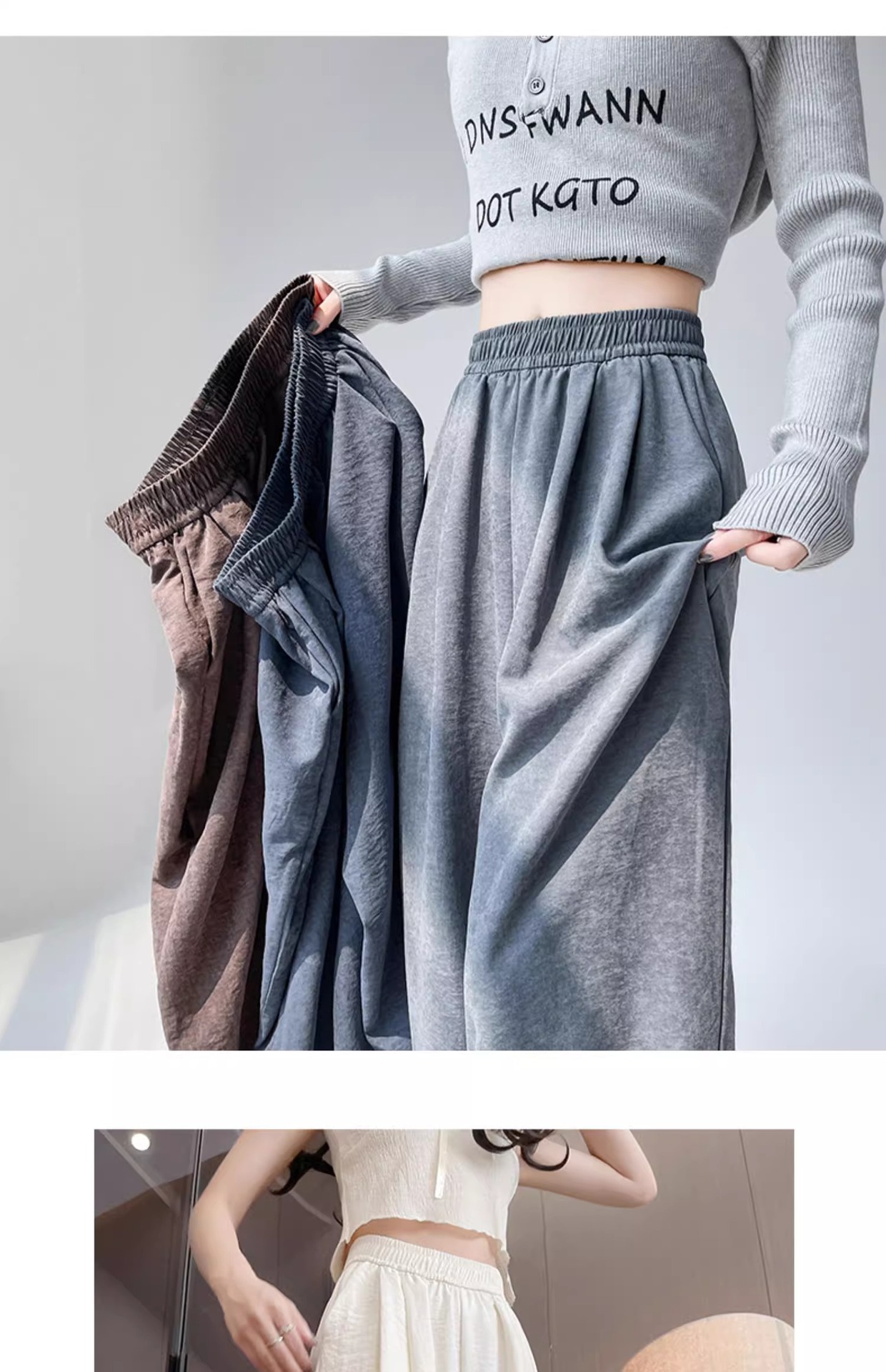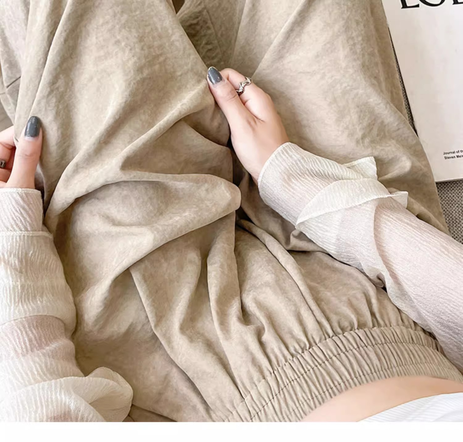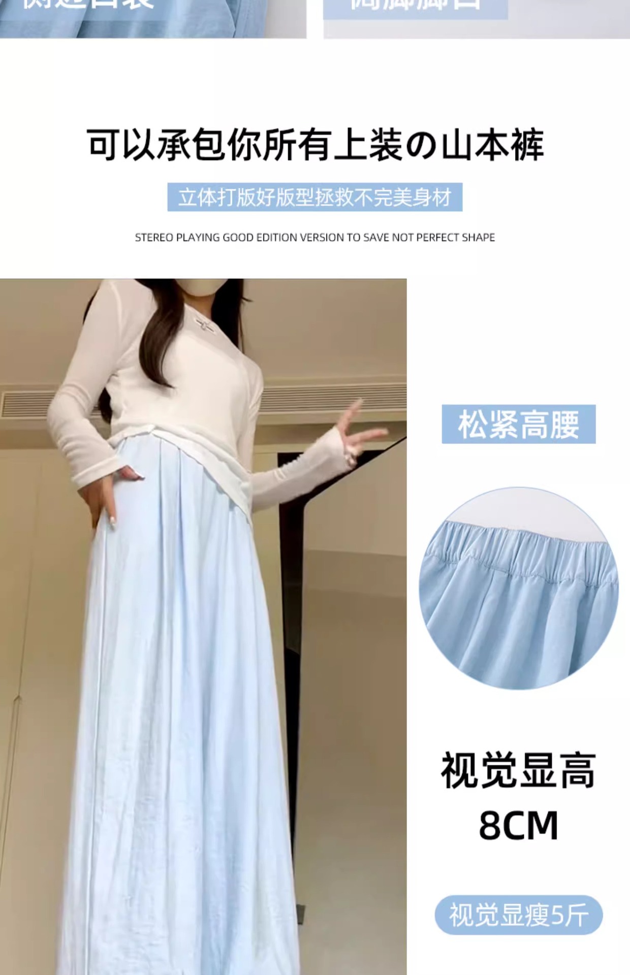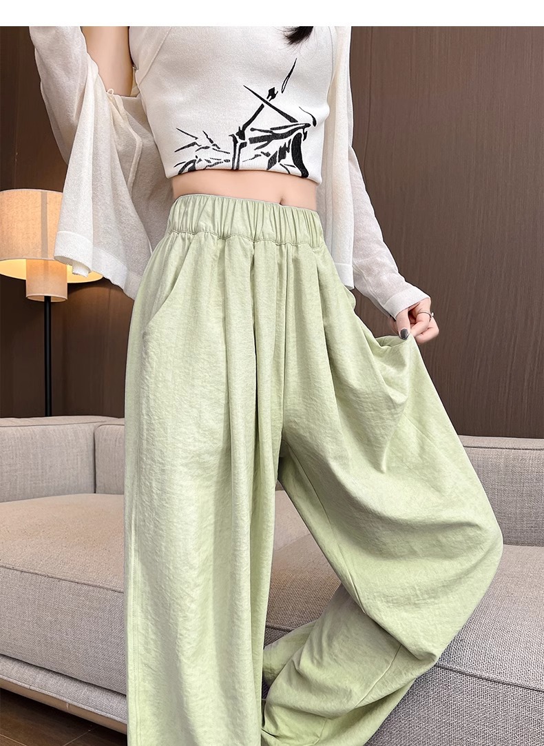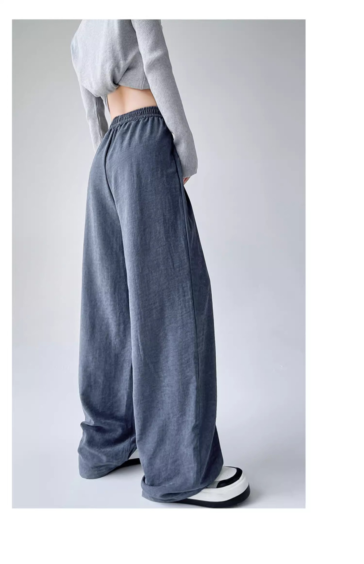 블루 밀크 푸 야마모토 바지 여성의 봄과 가을 2025 새로운 높은 허리 투약 캐주얼 작은 얇은 스트레이트 와이드 다리 바지스토어 가기
