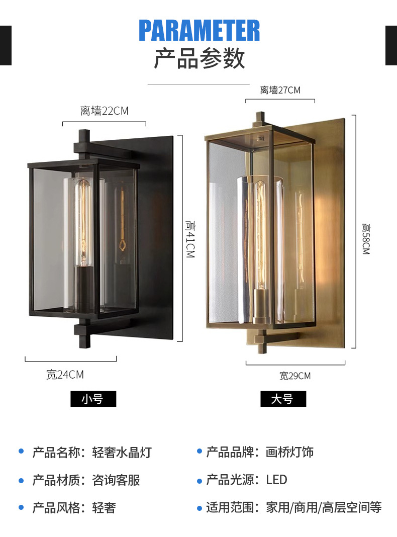 미국식 간단한 복고풍 벽 램프 빌라 계단 발코니 통로 입구 램프 호텔 장식 미니멀리스트 라이트 럭셔리 벽 램프
