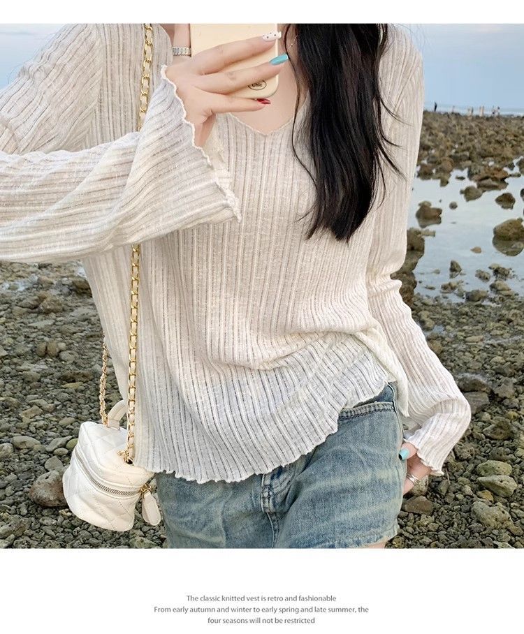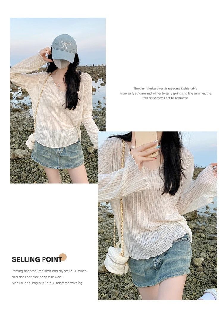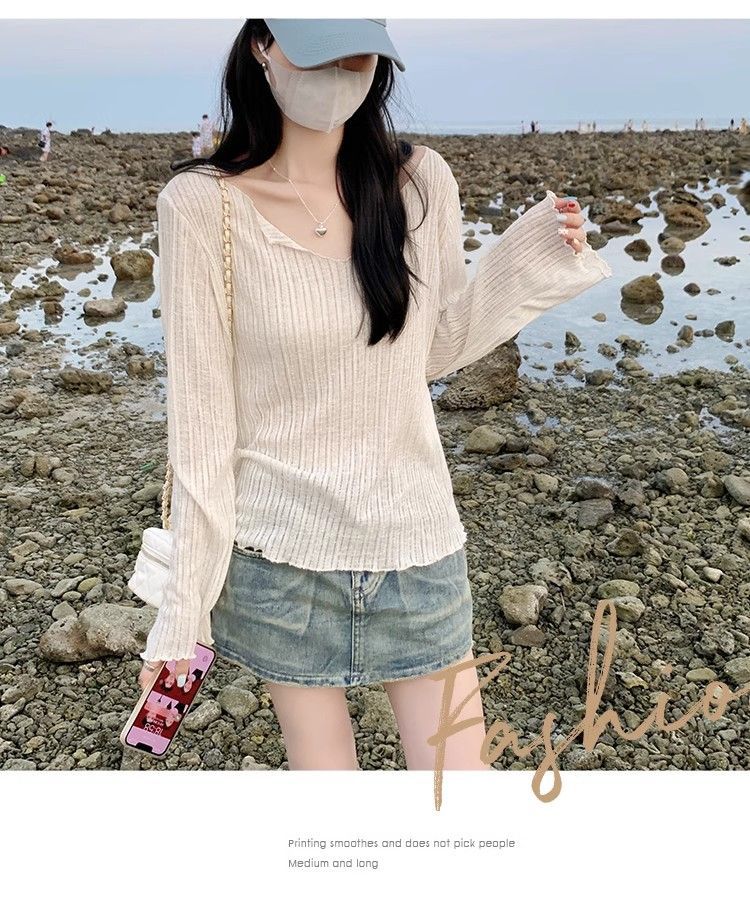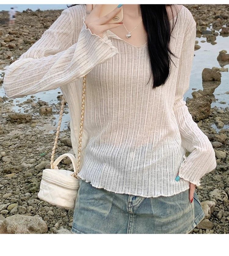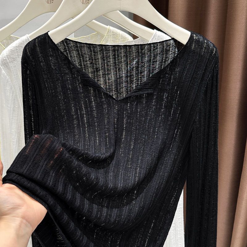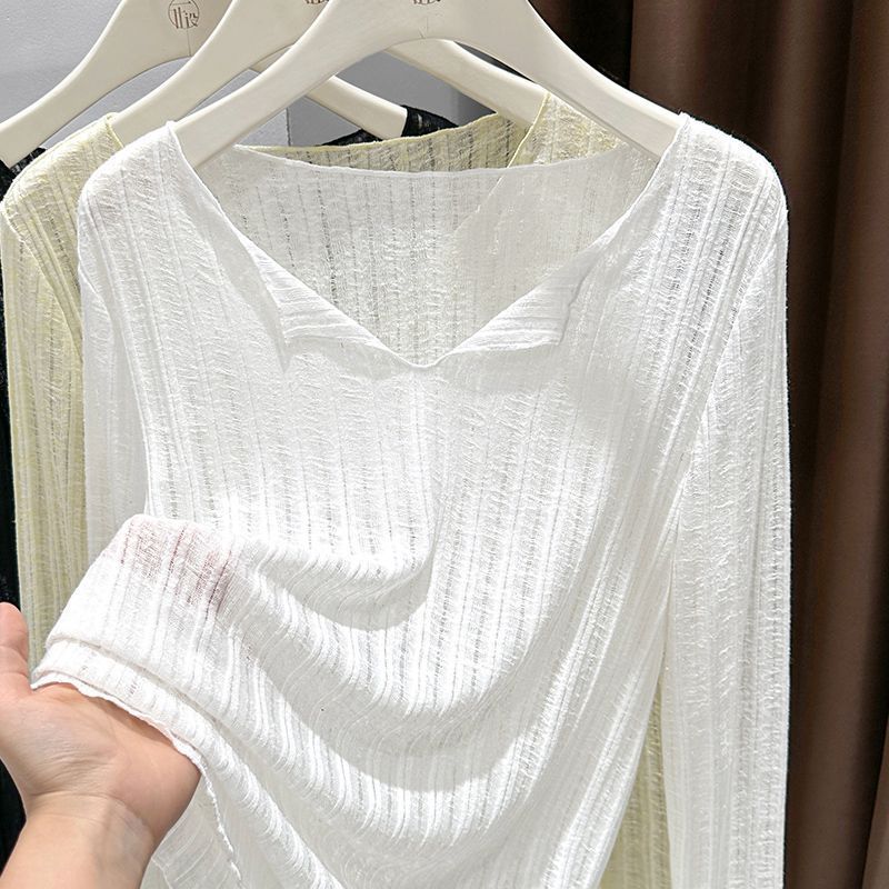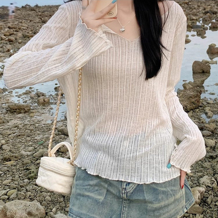 플러스 사이즈 마이크로 투명 선 스크린 에어컨 블라우스 여성 통통녀 여름 얇은 긴팔 게으른 티셔츠 탑