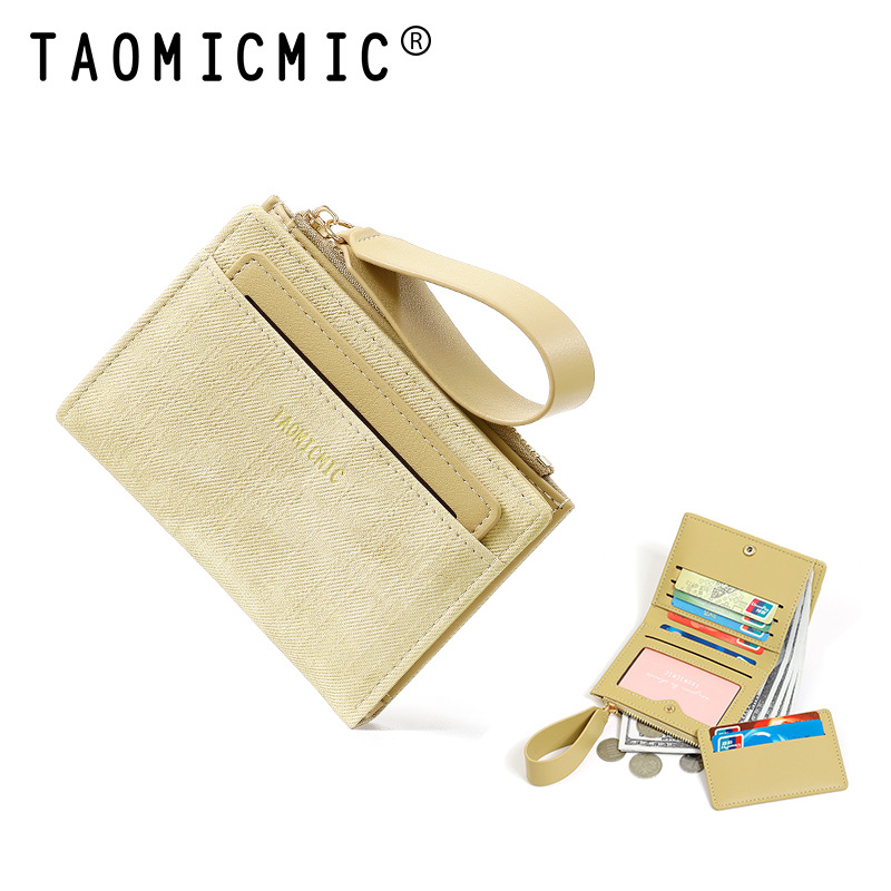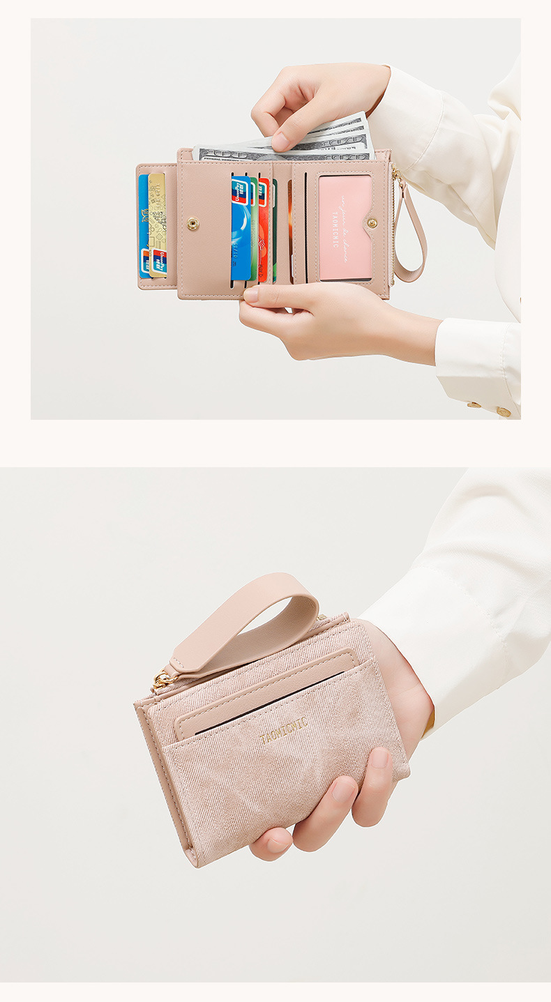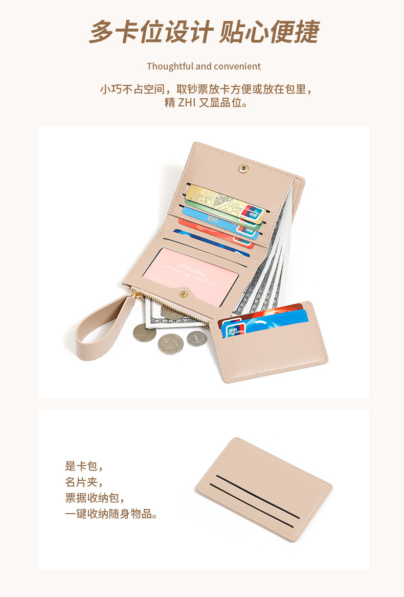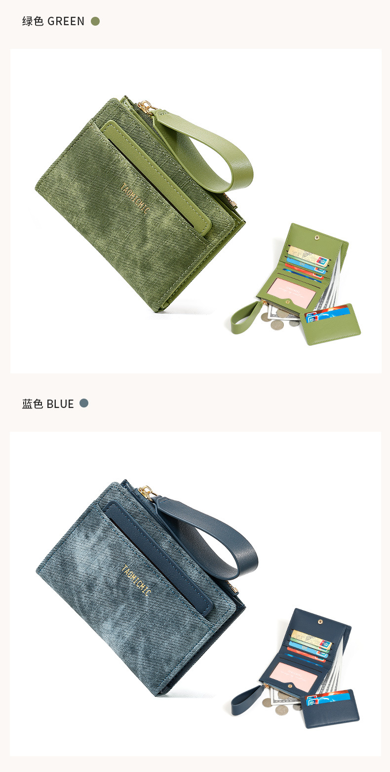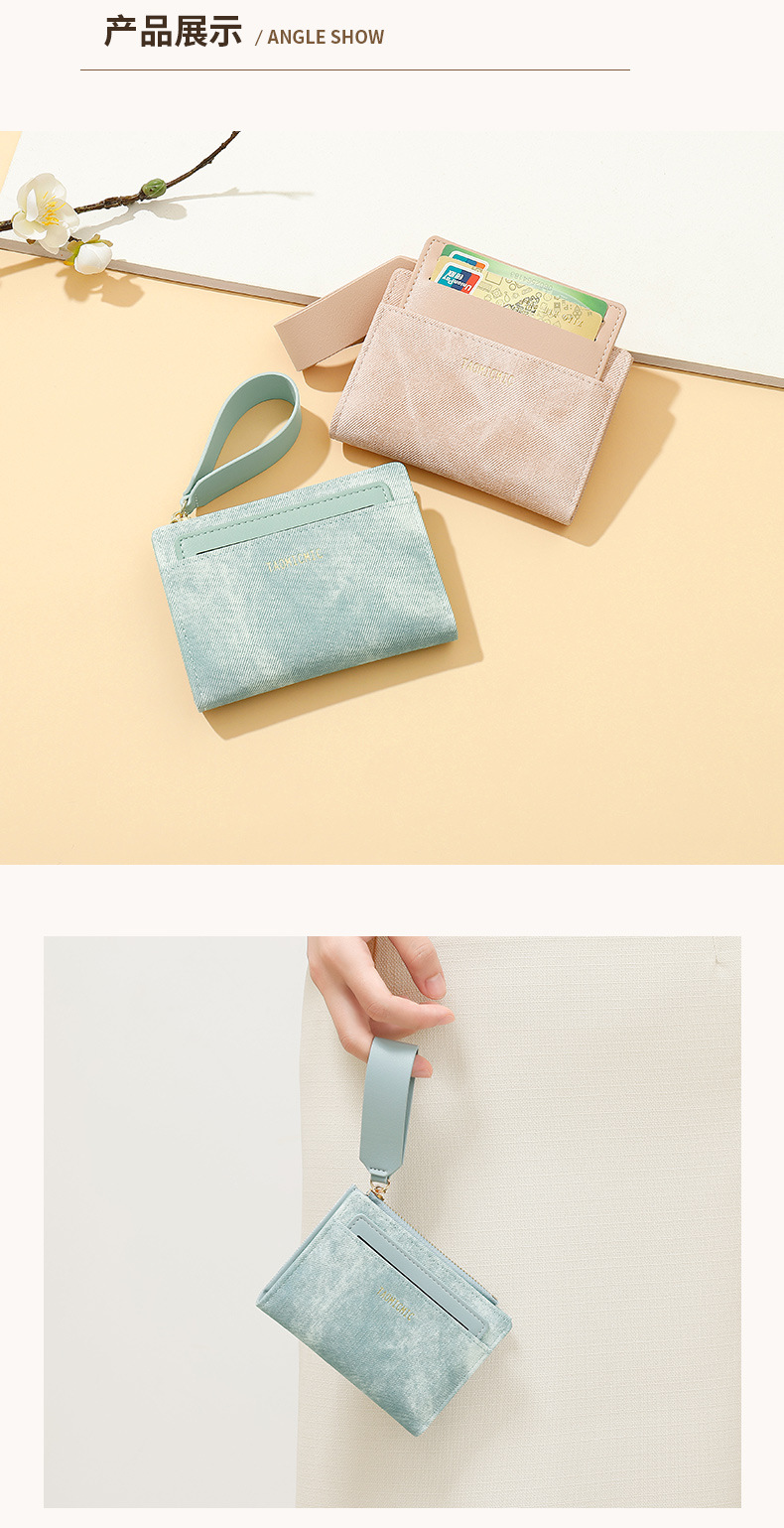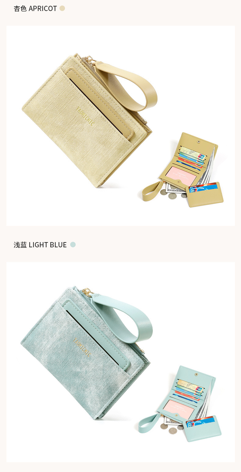 Yue Qian Kai 국경 짧은 여성 지갑 패션 대비 색상 20% 할인 손 손목 밴드 멀티 카드 지갑 도매