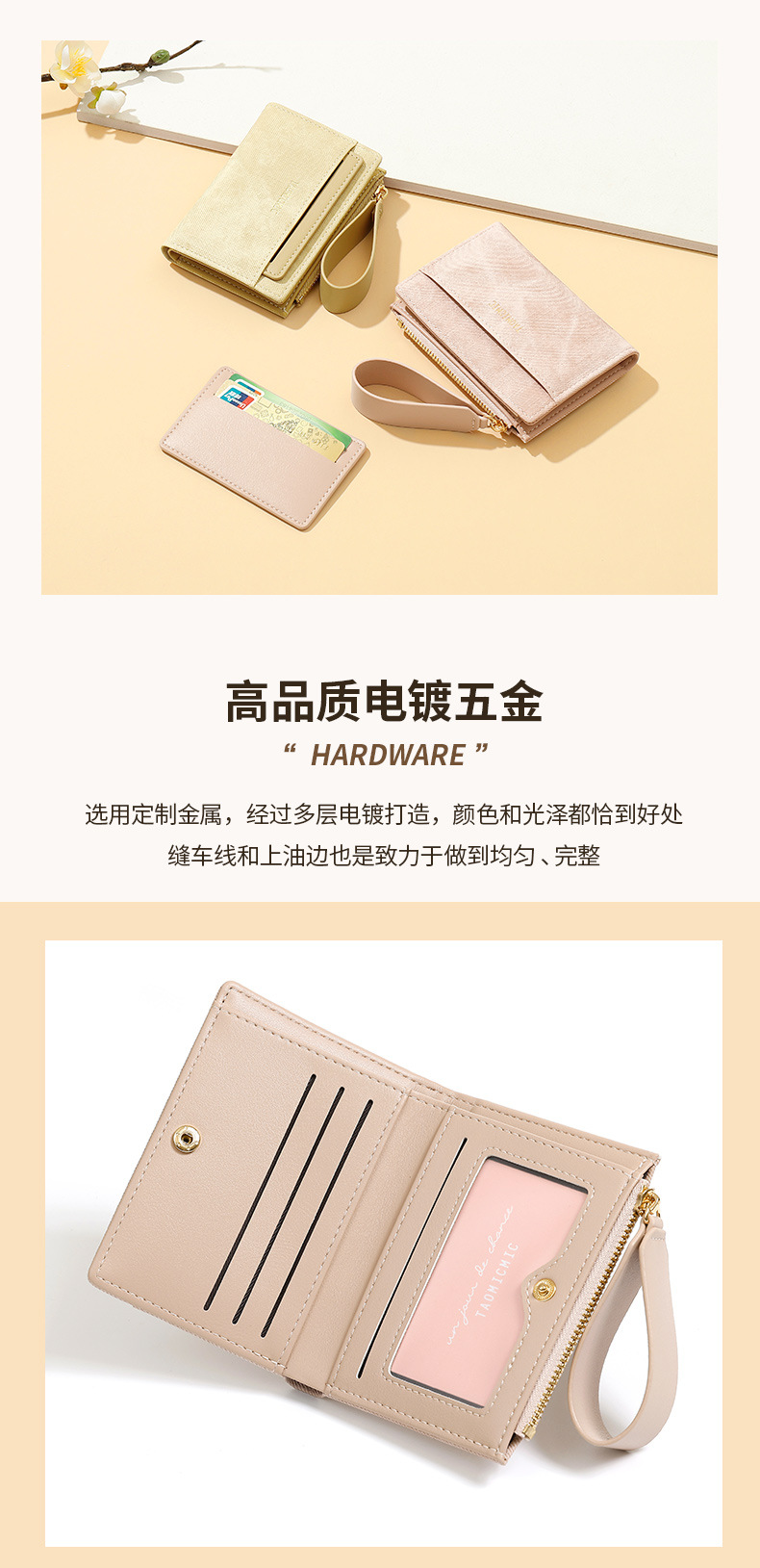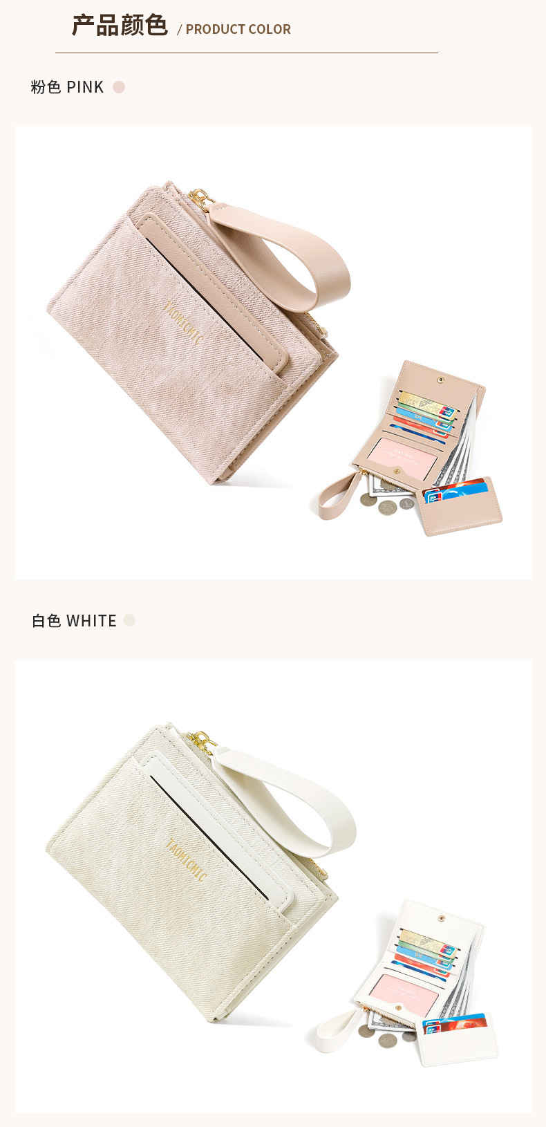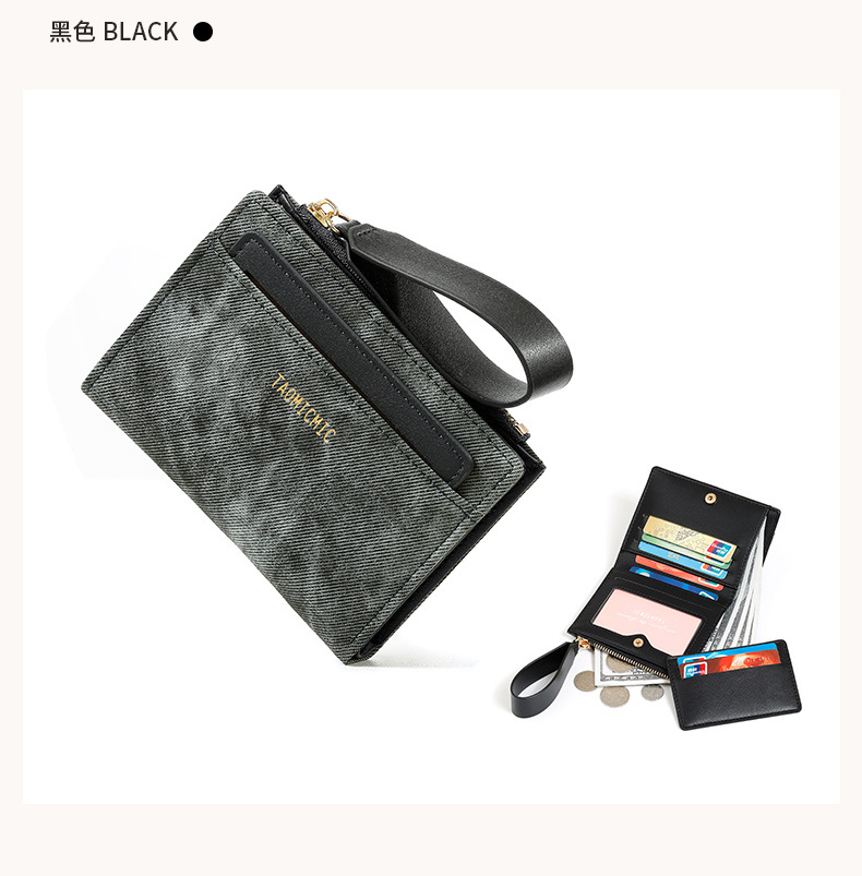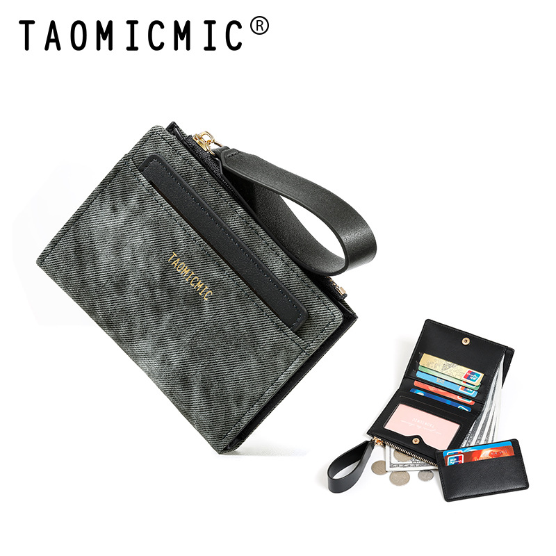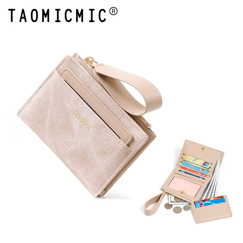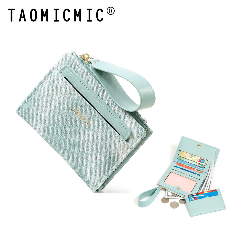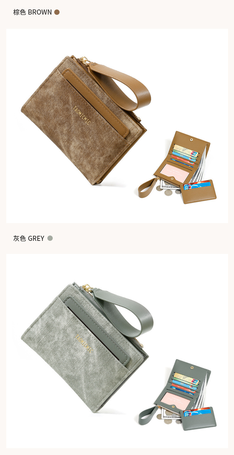 Yue Qian Kai 국경 짧은 여성 지갑 패션 대비 색상 20% 할인 손 손목 밴드 멀티 카드 지갑 도매