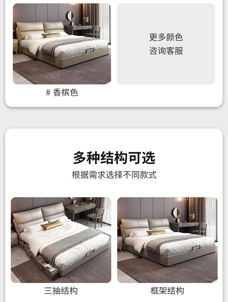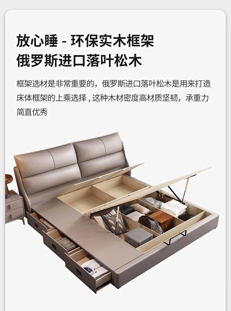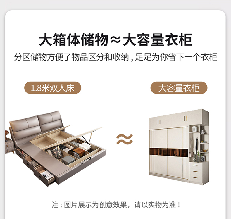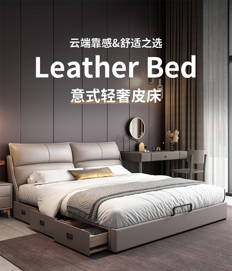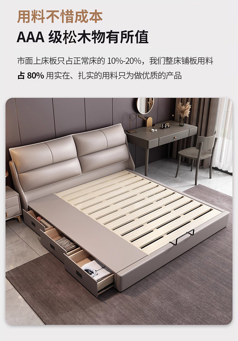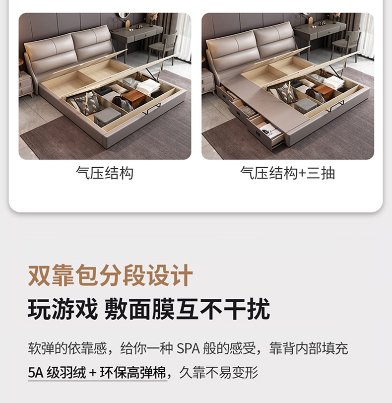 가죽 침대 하이 엔드 대기 가죽 침대 1.8 m 현대 간단한 마스터 침실 더블 퀸 침대 빛 럭셔리 소프트 가방 보관 웨딩 침대스토어 가기