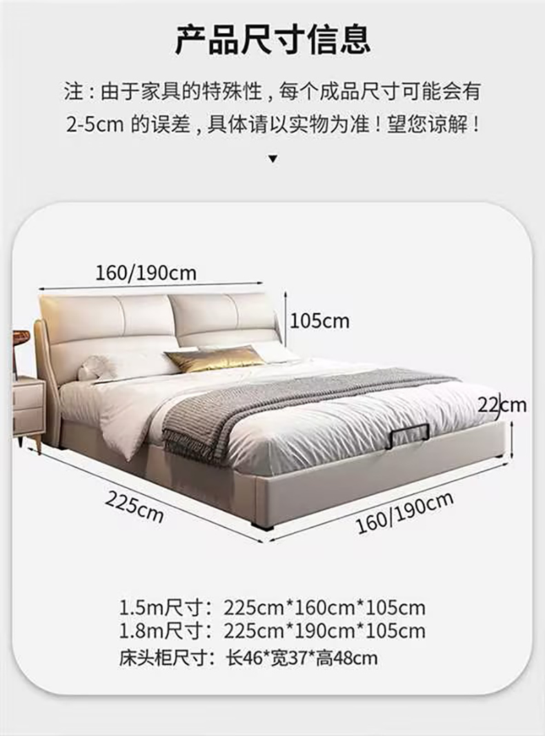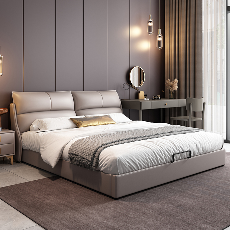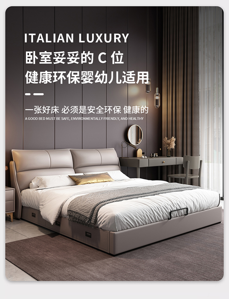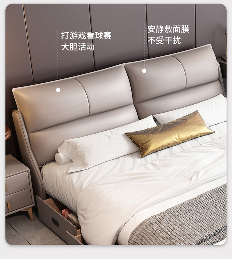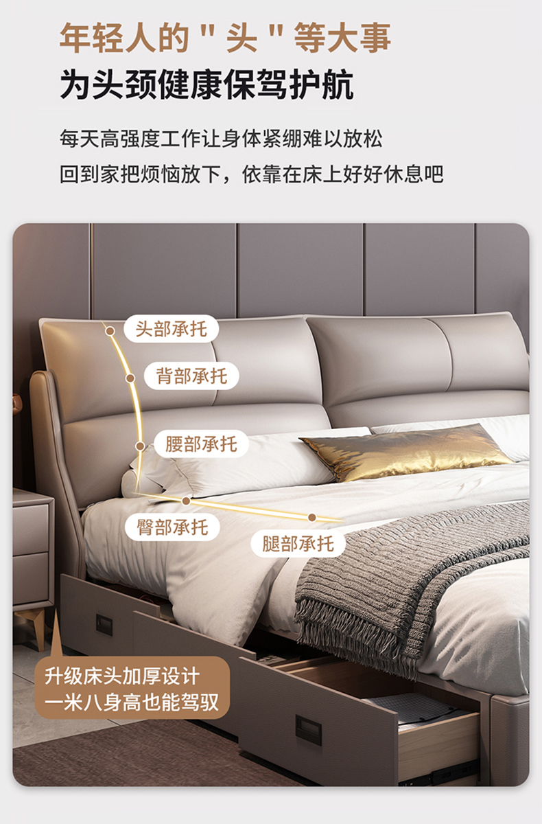 가죽 침대 하이 엔드 대기 가죽 침대 1.8 m 현대 간단한 마스터 침실 더블 퀸 침대 빛 럭셔리 소프트 가방 보관 웨딩 침대