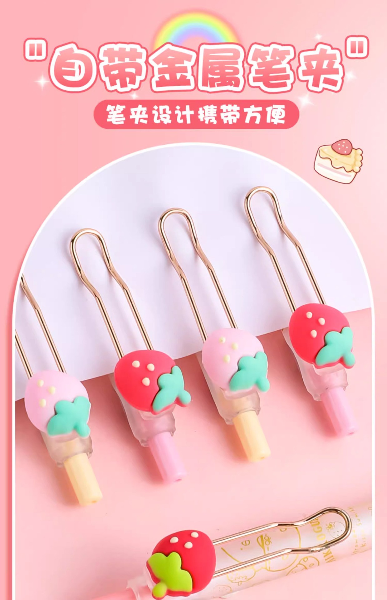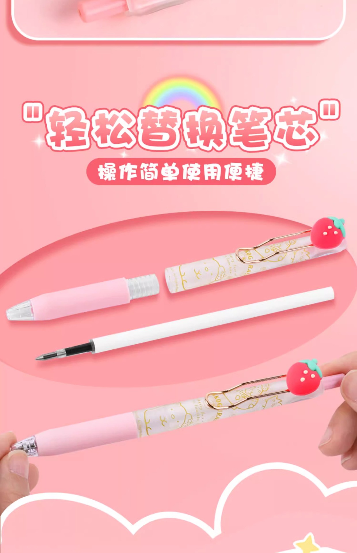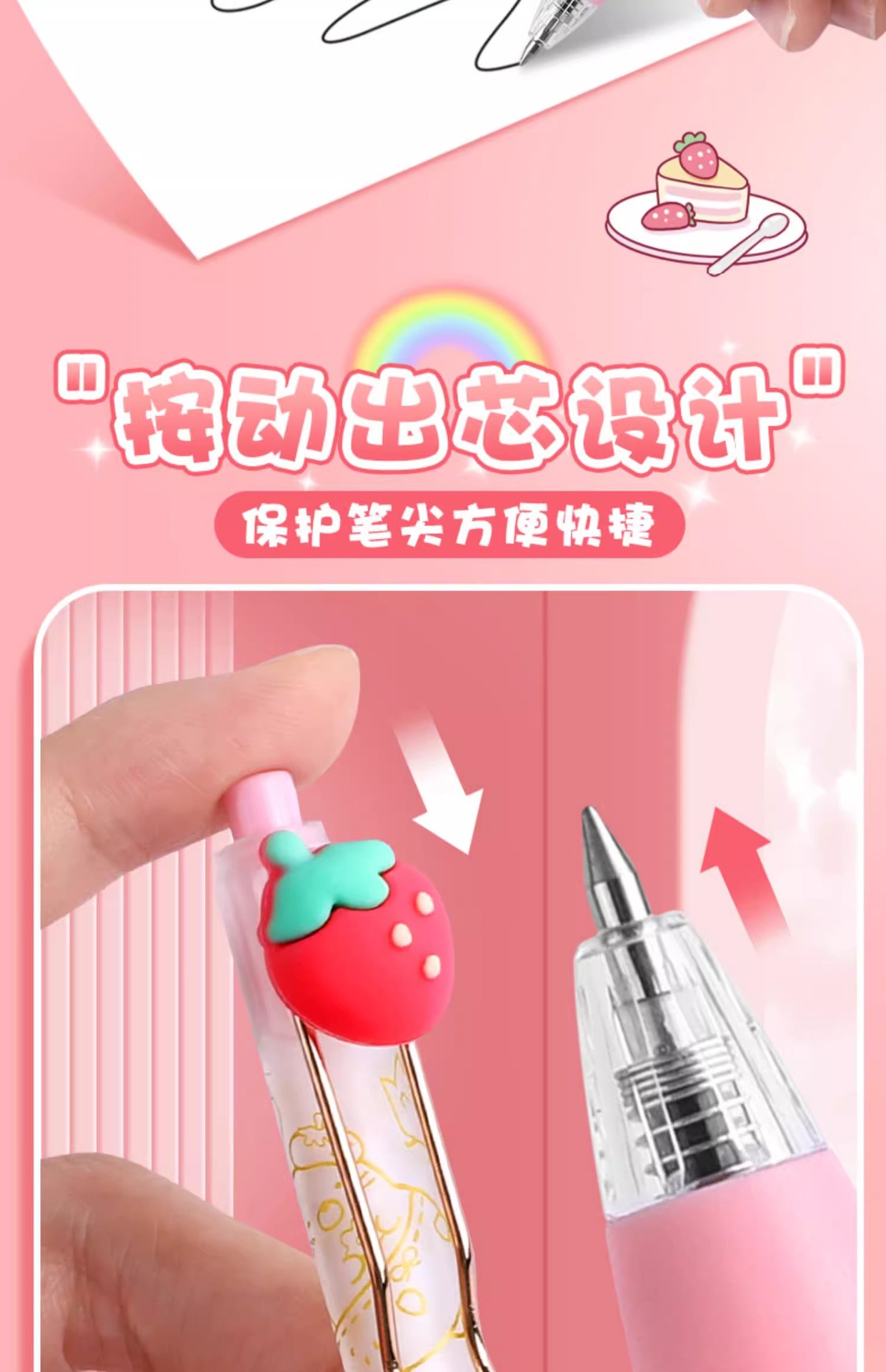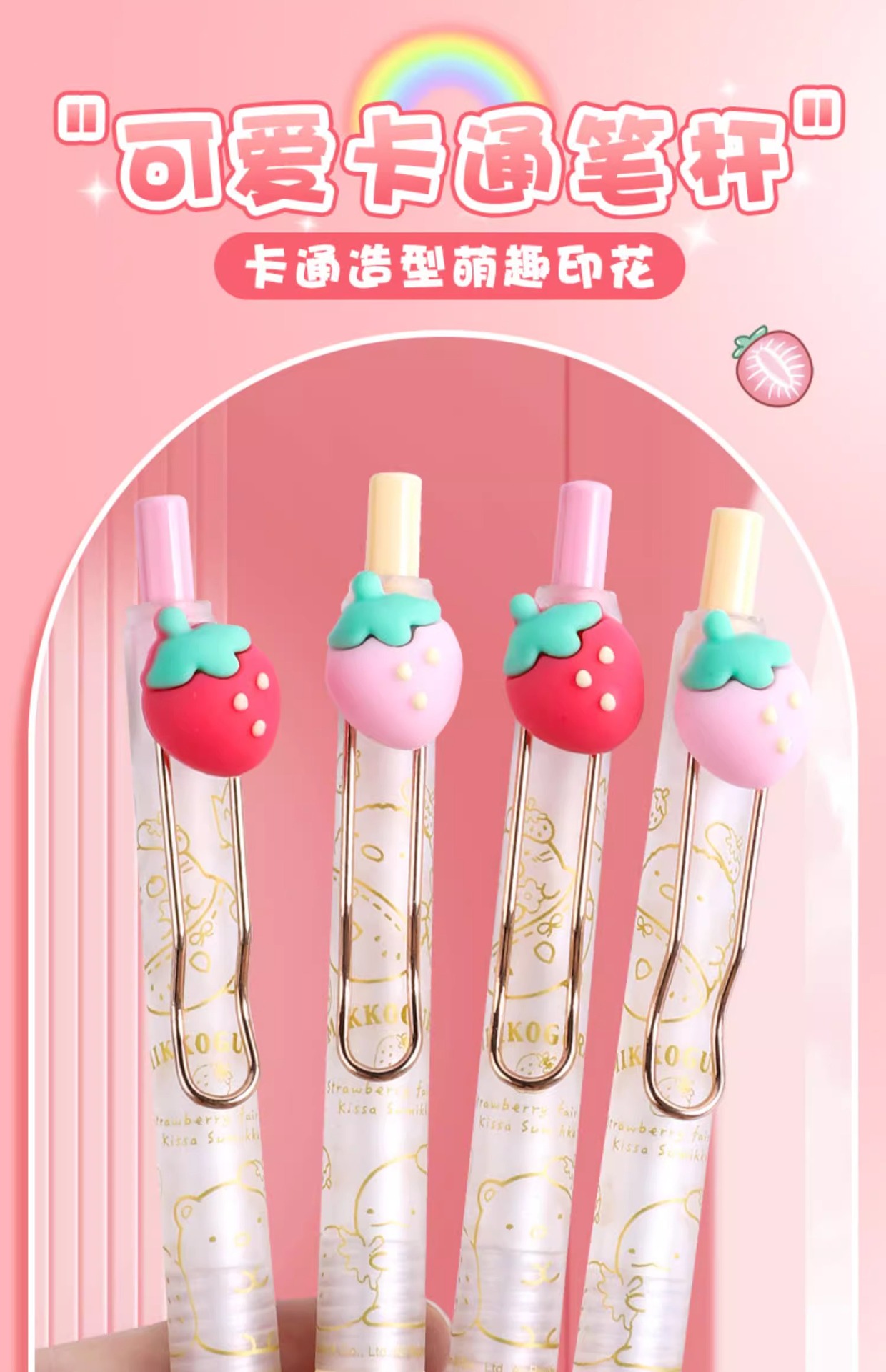딸기 코너 프레스 젤 펜 세트 학생 특수 브러시 펜 블랙 펜 젤 펜 빠른 건조 부드럽게