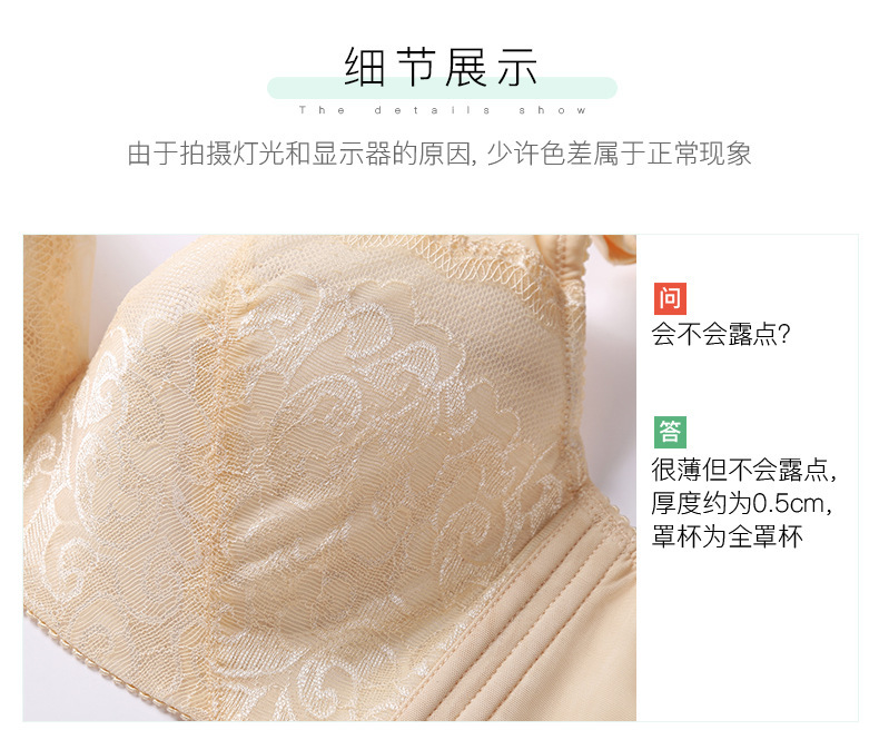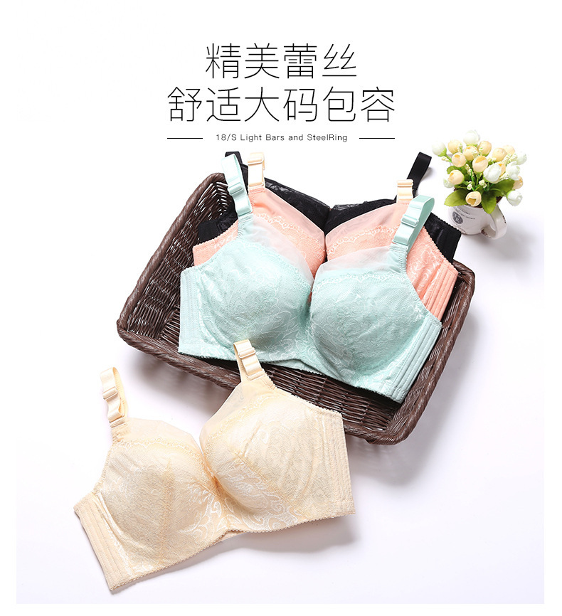 Wankang 플러스 사이즈 속옷 얇은 통기성 통통녀 큰 가슴은 작은 풀 컵 모임 조정 가능한 브래지어를 보여줍니다스토어 가기