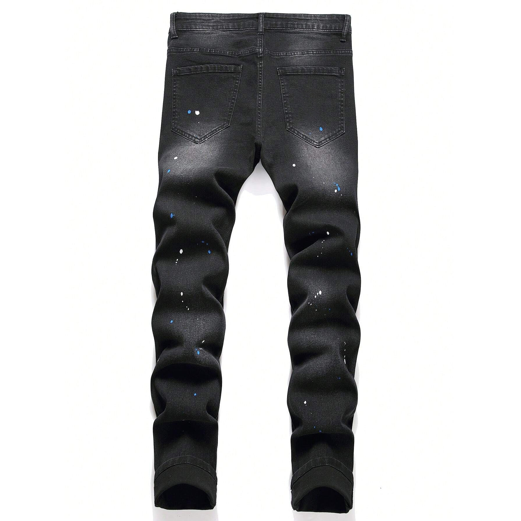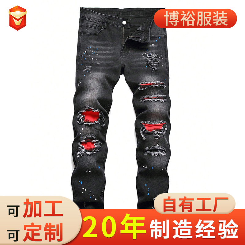 해외 국경 찢어진 픽 블랙 청바지 남자 재고 한국 기본 스트레이트 타입