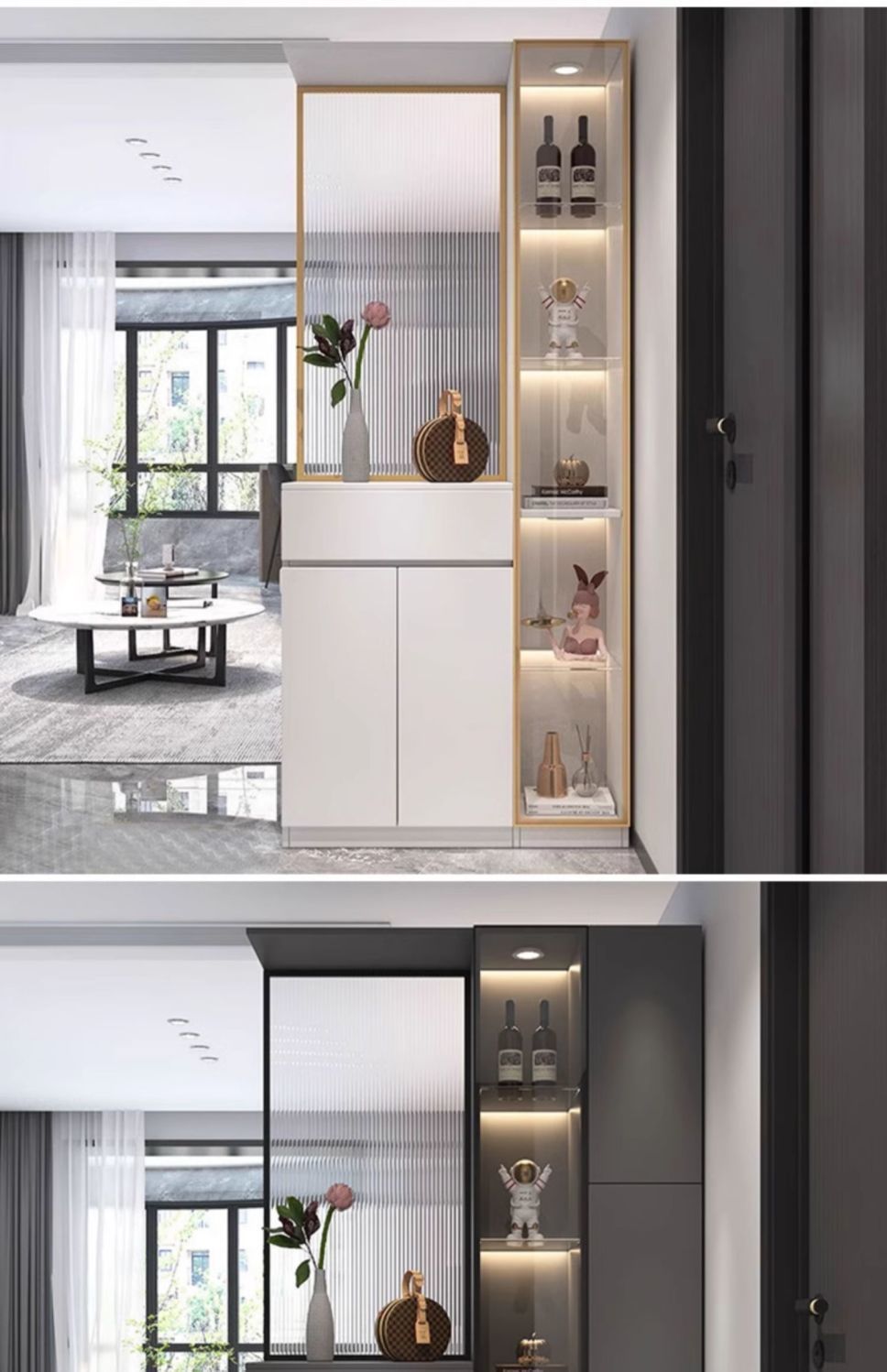 현관 캐비닛, 신발장, 일체형 거실 입구, 가벼운 고급 스크린 와인 캐비닛, 모던하고 심플한 장홍 유리 칸막이 캐비닛스토어 가기