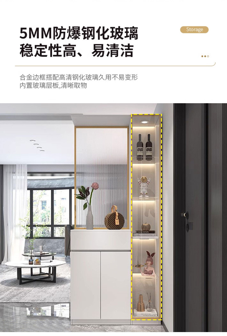 현관 캐비닛, 신발장, 일체형 거실 입구, 가벼운 고급 스크린 와인 캐비닛, 모던하고 심플한 장홍 유리 칸막이 캐비닛