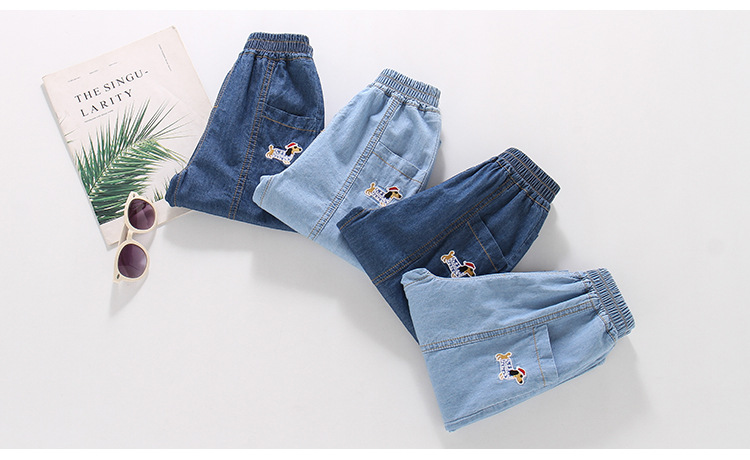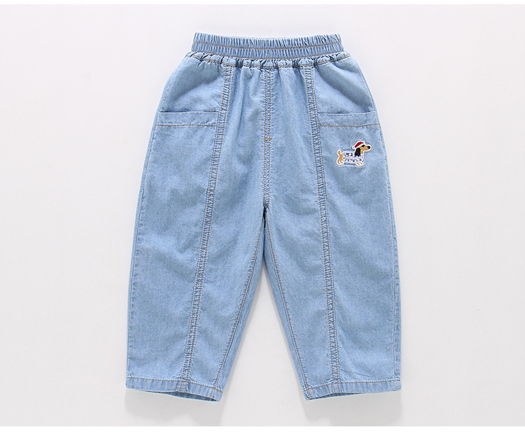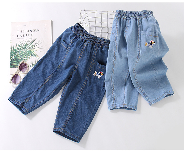여름 어린이 순면 청바지 얇은 어린이 만화 느슨한 면 직선 다리 바지 소년 면 바지