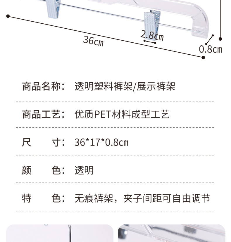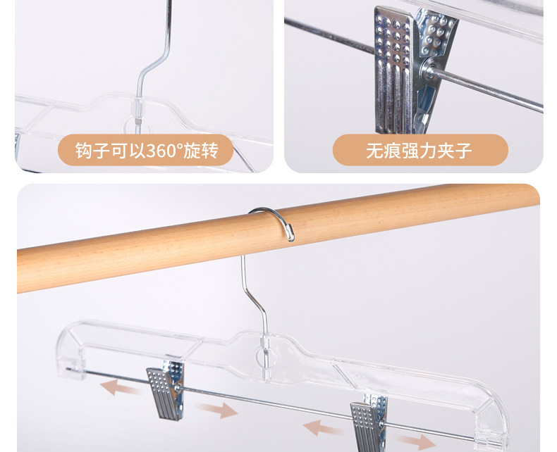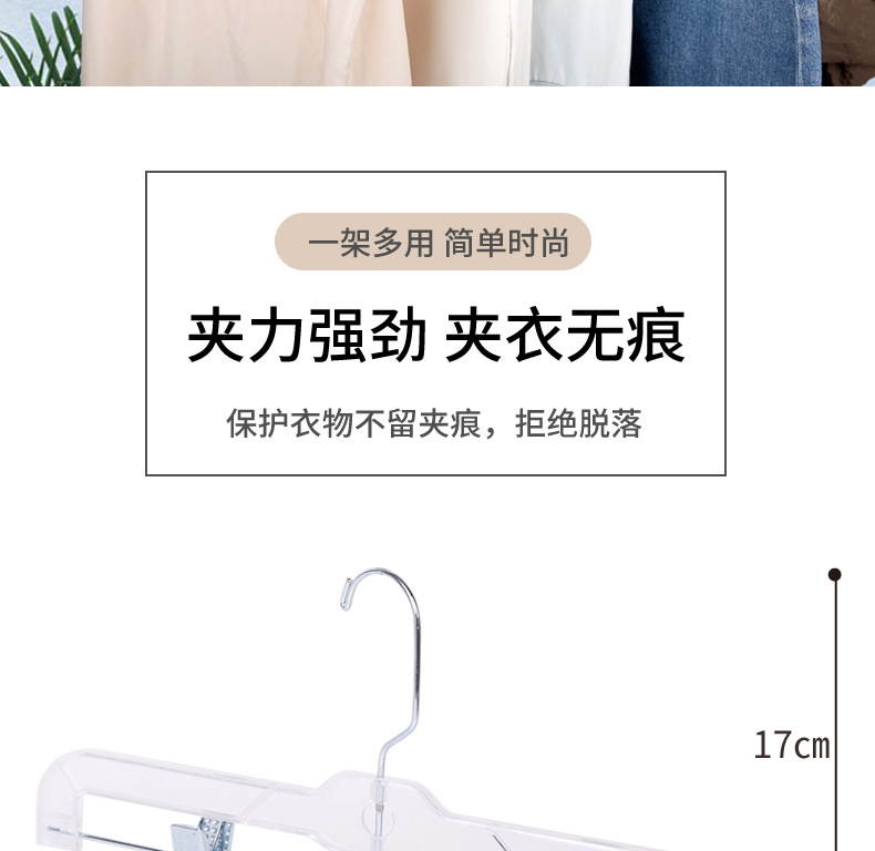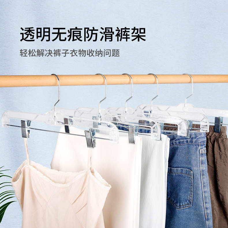 옷가게 아크릴 투명 바지걸이, 짧은 목옷걸이, 가정용 무봉제 바지걸이, 바지클립, 옷과 스커트 걸이용 특수옷걸이