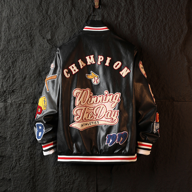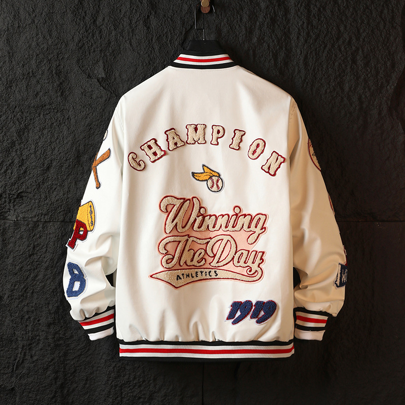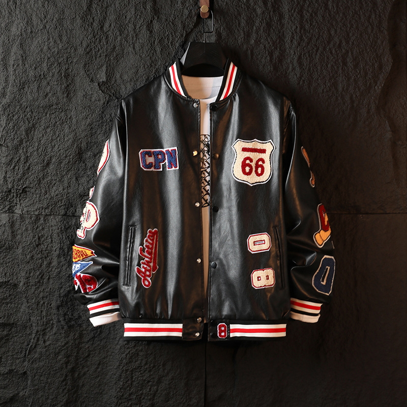 대외 무역 고급 수건 자수 PU 가죽 재킷 봄과 가을 새로운 야구 유니폼 남성 중공업 자수 봄버 재킷스토어 가기