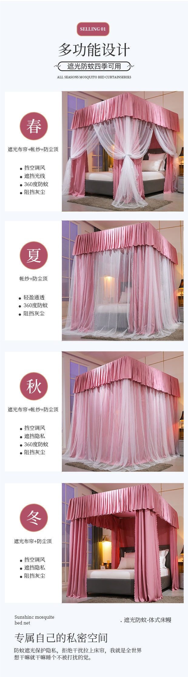 가정용 모기장 침대 커튼 침실 1.8m 침대 방풍 두꺼운 1.5m 암호화 폐쇄 모기 방지 및 방진