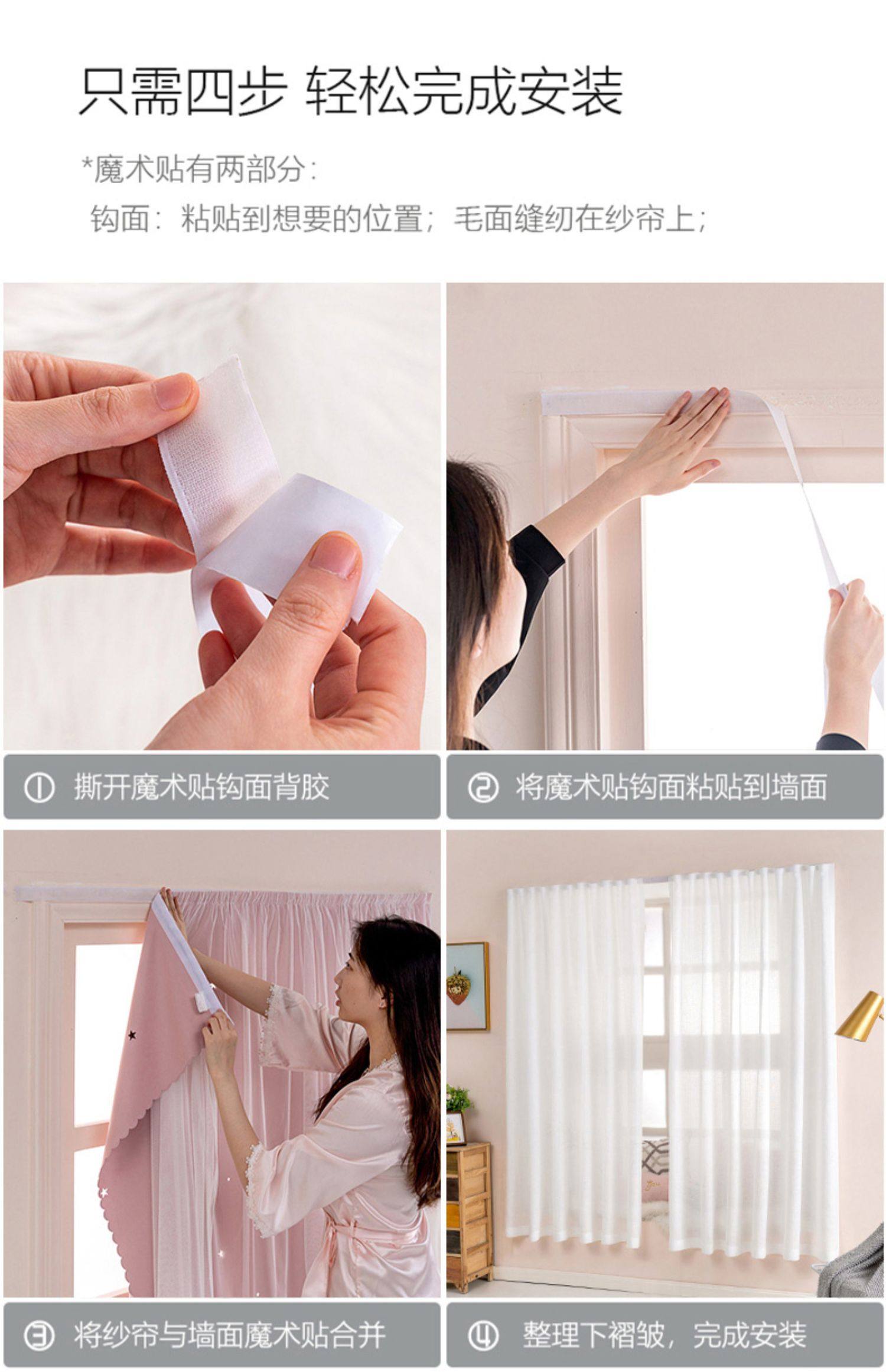 도매 작은 모래 커튼 커튼 비 천공 설치 음영 매직 페이스트 유형 거즈 커튼 자체 접착 투명스토어 가기