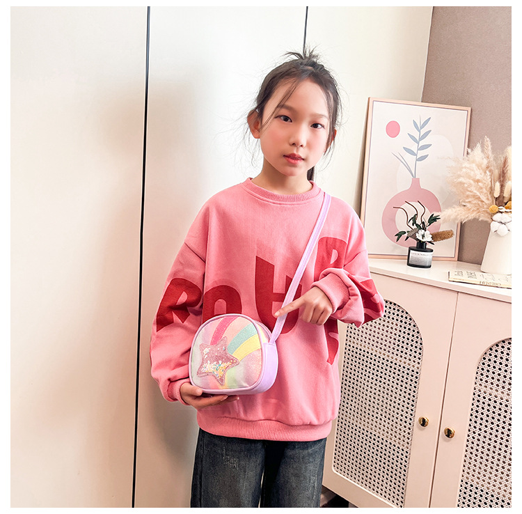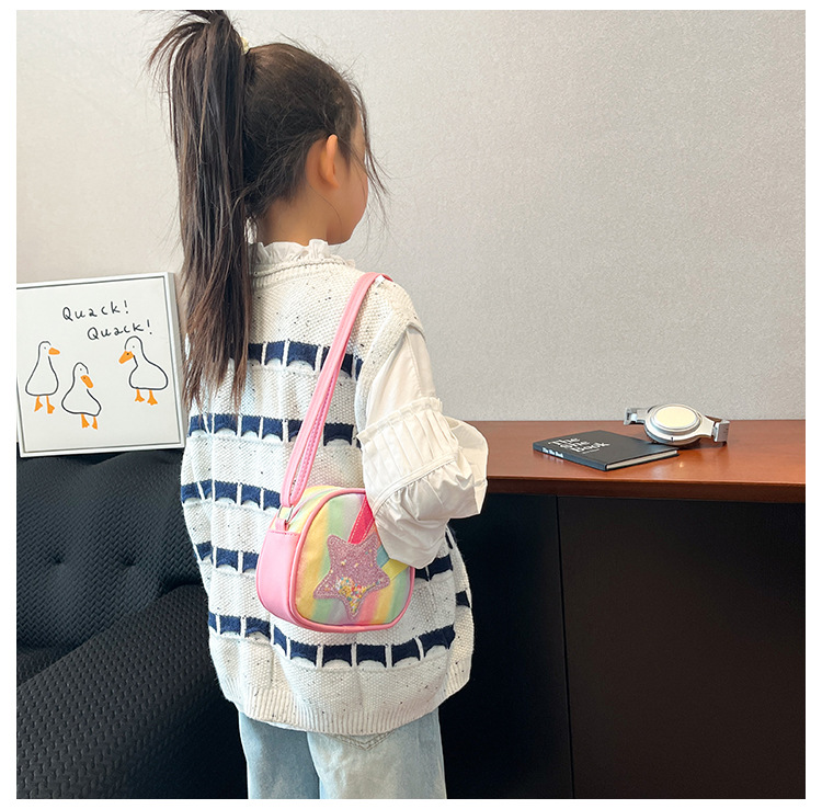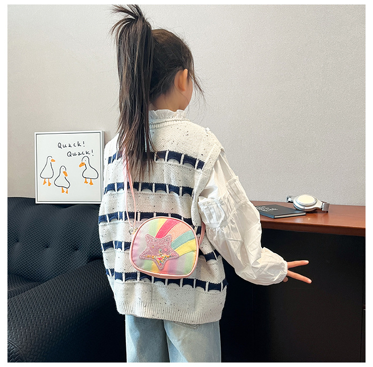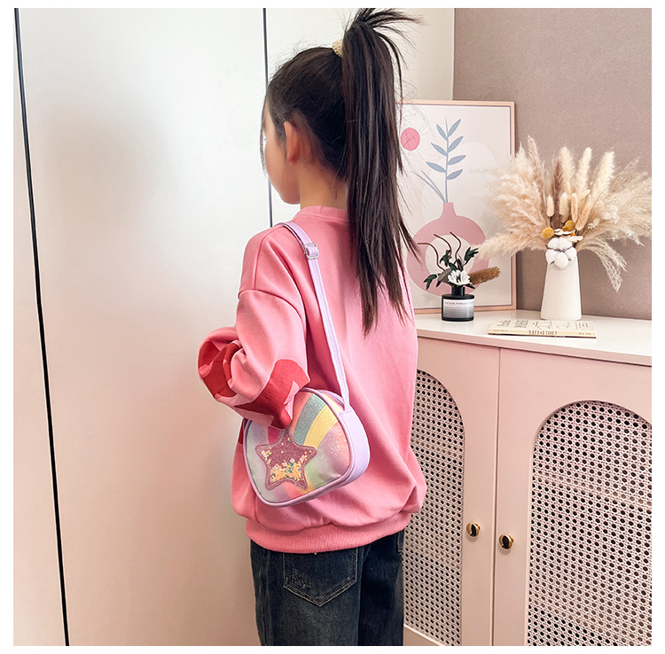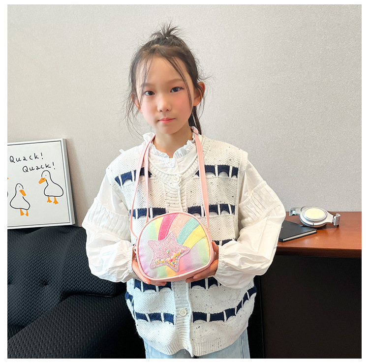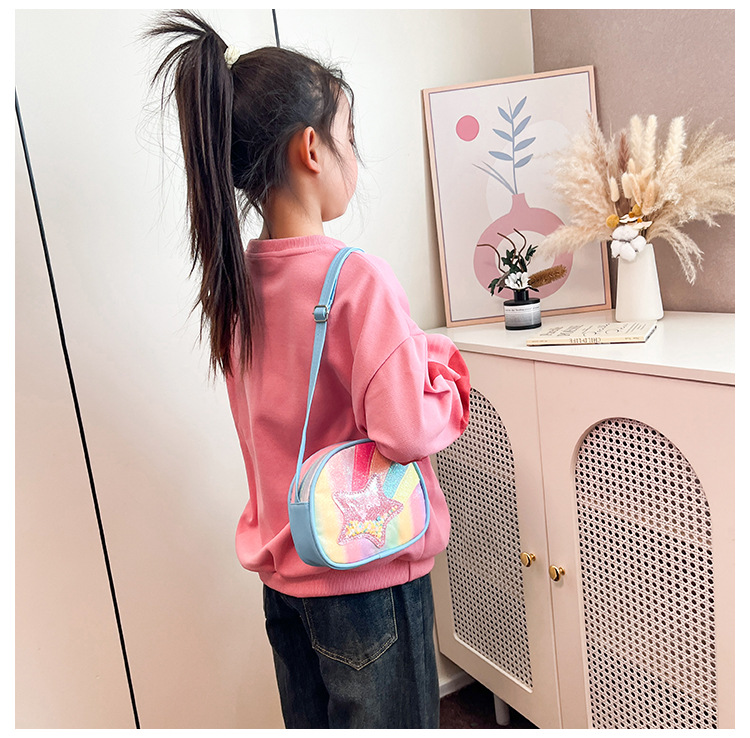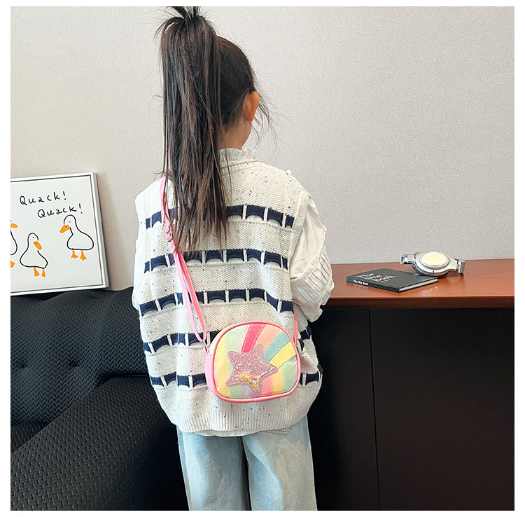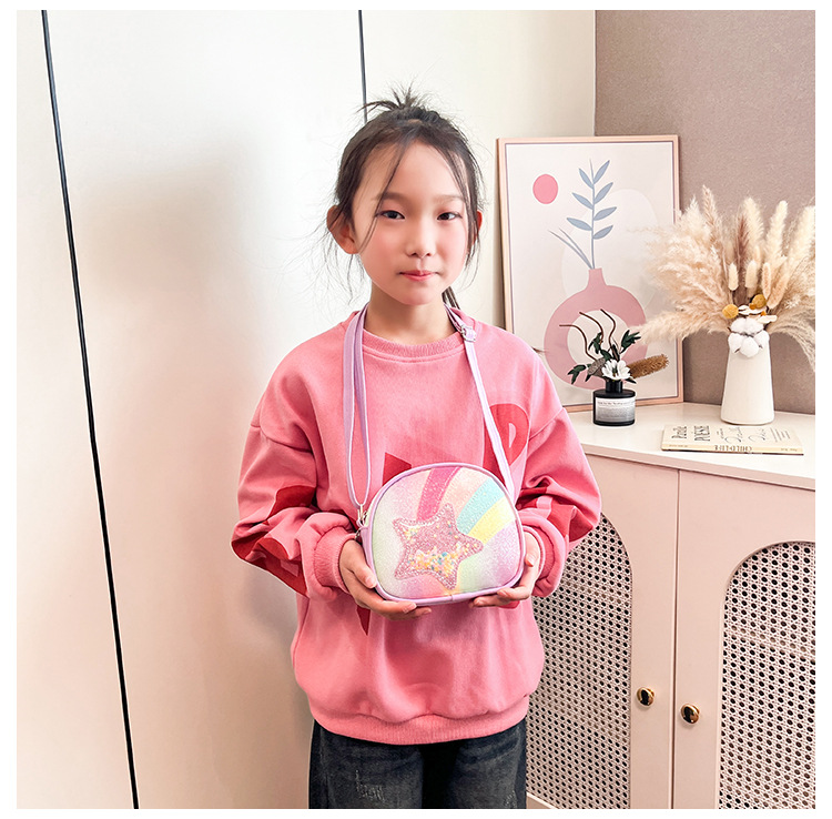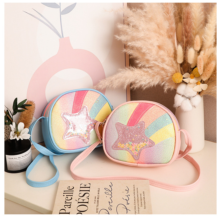 도매 빛나는 무지개 별 퀵 샌드 어린이 가방 귀여운 소녀 메신저 가방 여행 작은 가방 동전 지갑스토어 가기