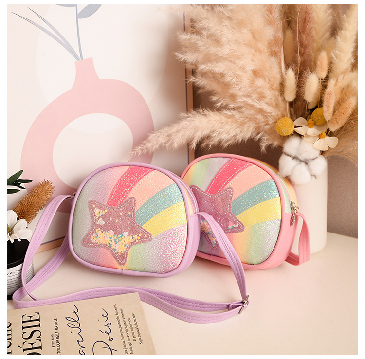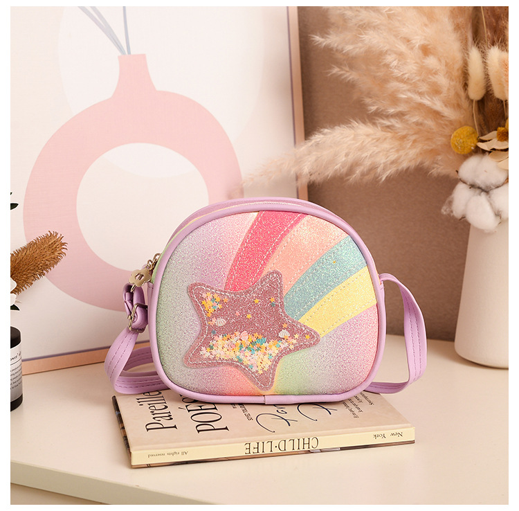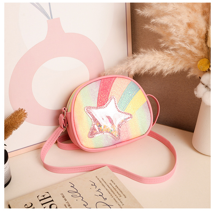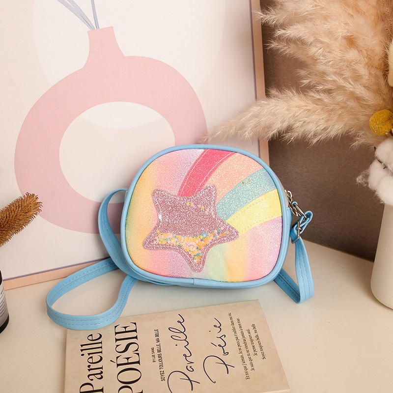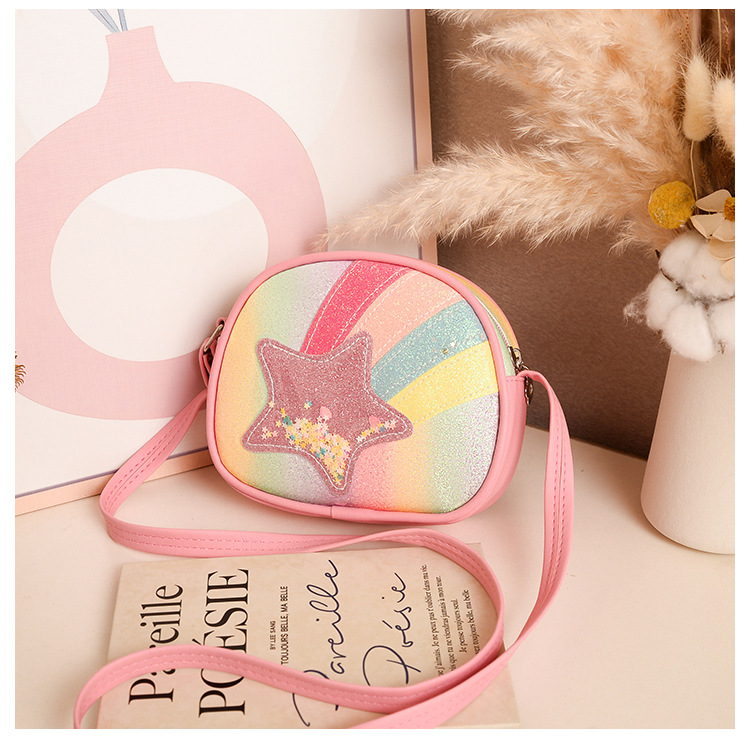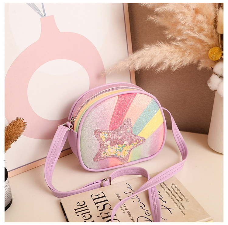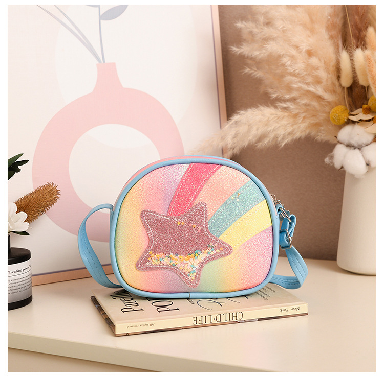 도매 빛나는 무지개 별 퀵 샌드 어린이 가방 귀여운 소녀 메신저 가방 여행 작은 가방 동전 지갑