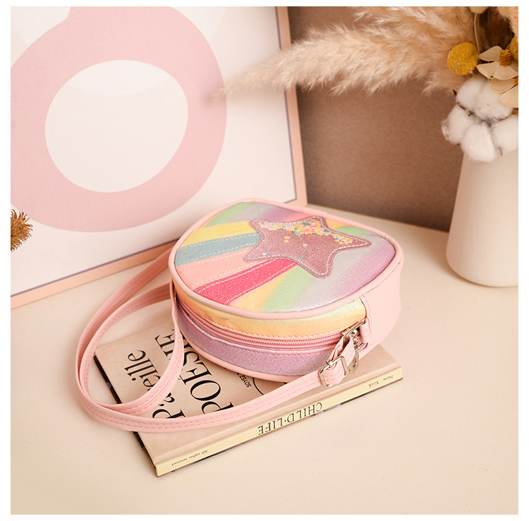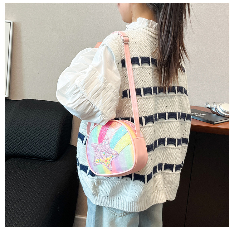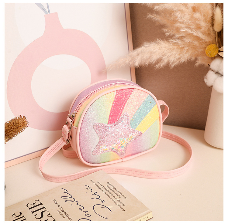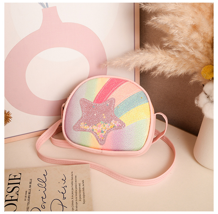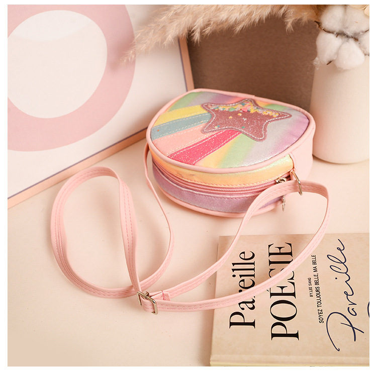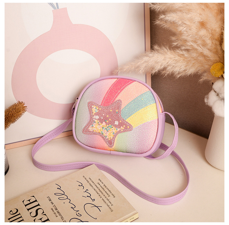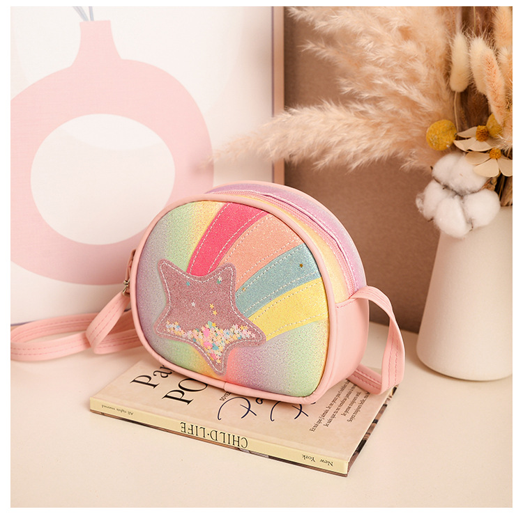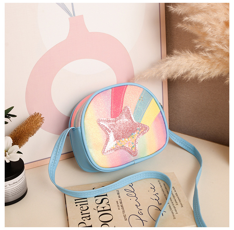도매 빛나는 무지개 별 퀵 샌드 어린이 가방 귀여운 소녀 메신저 가방 여행 작은 가방 동전 지갑