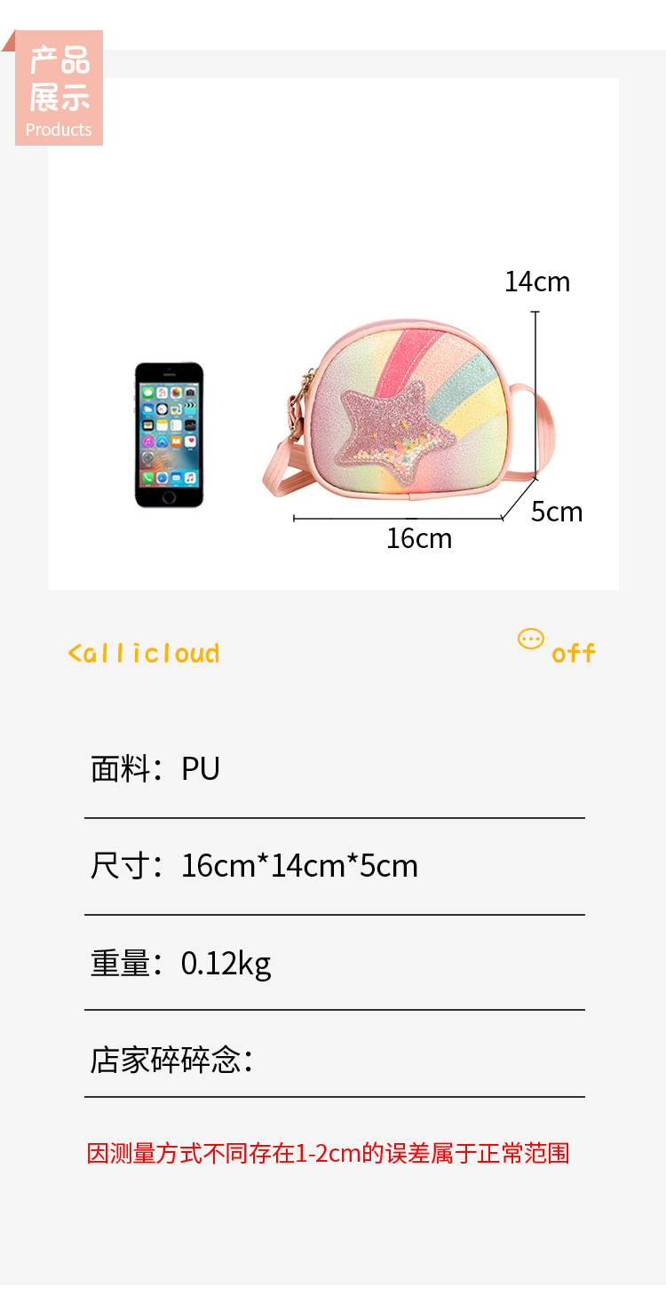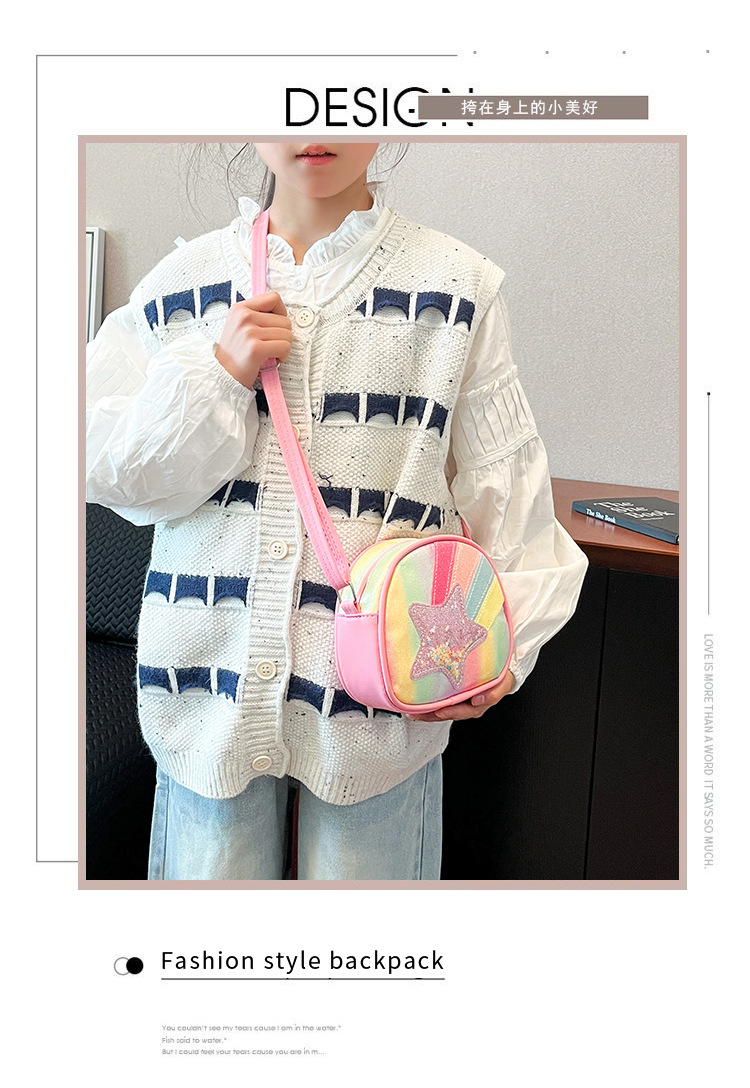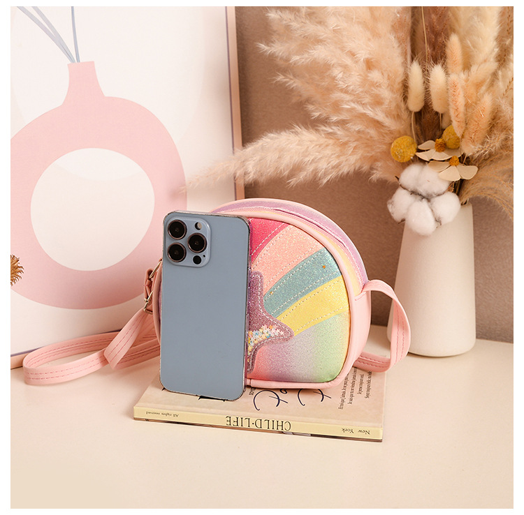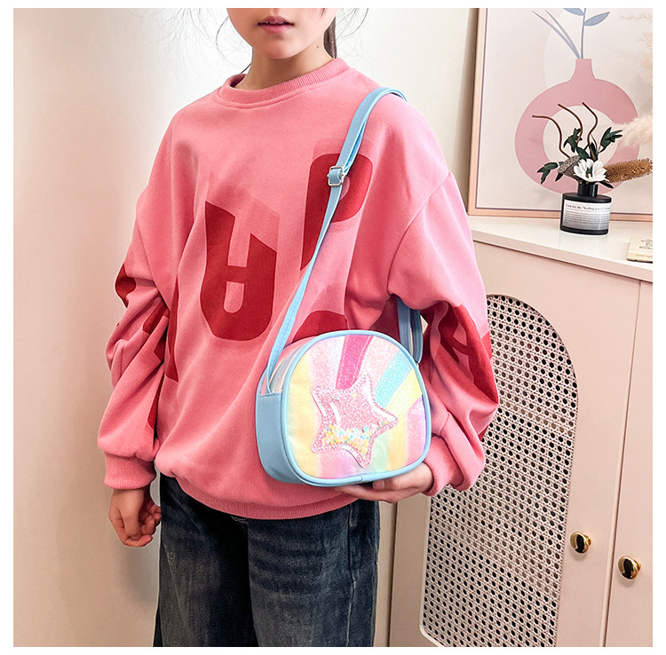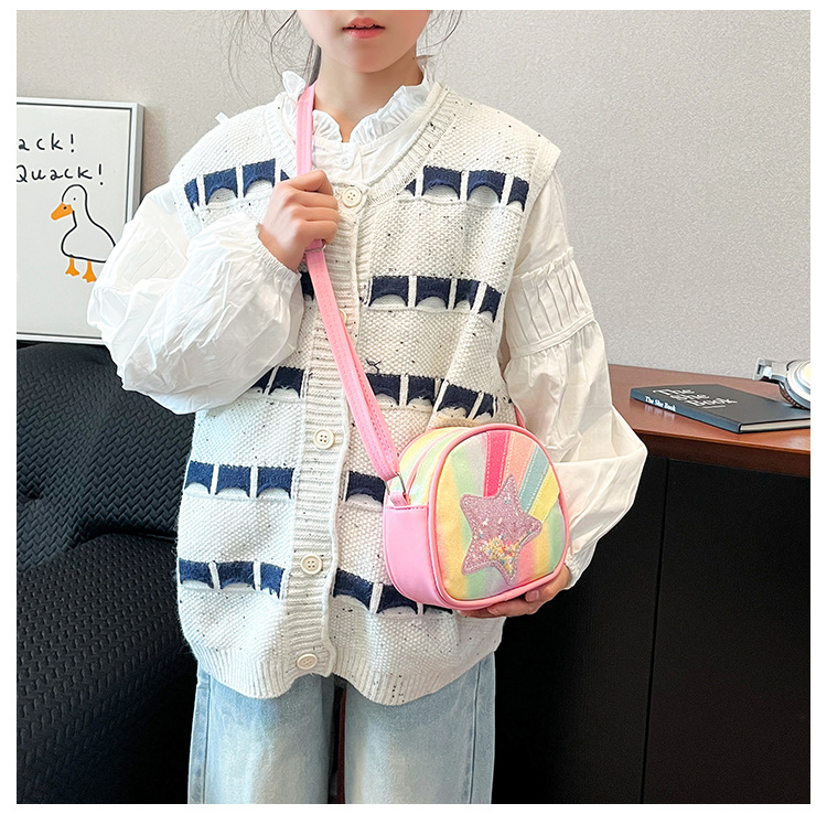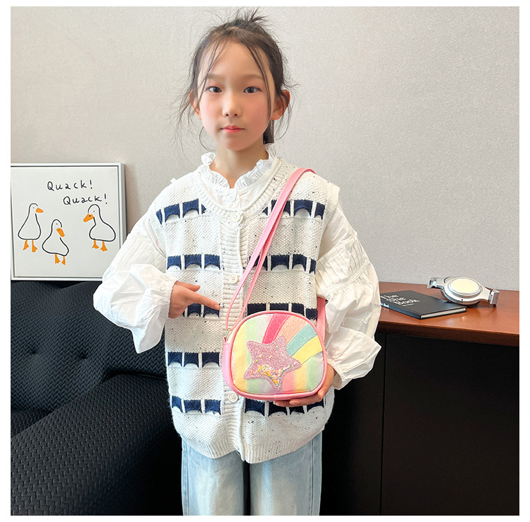 도매 빛나는 무지개 별 퀵 샌드 어린이 가방 귀여운 소녀 메신저 가방 여행 작은 가방 동전 지갑