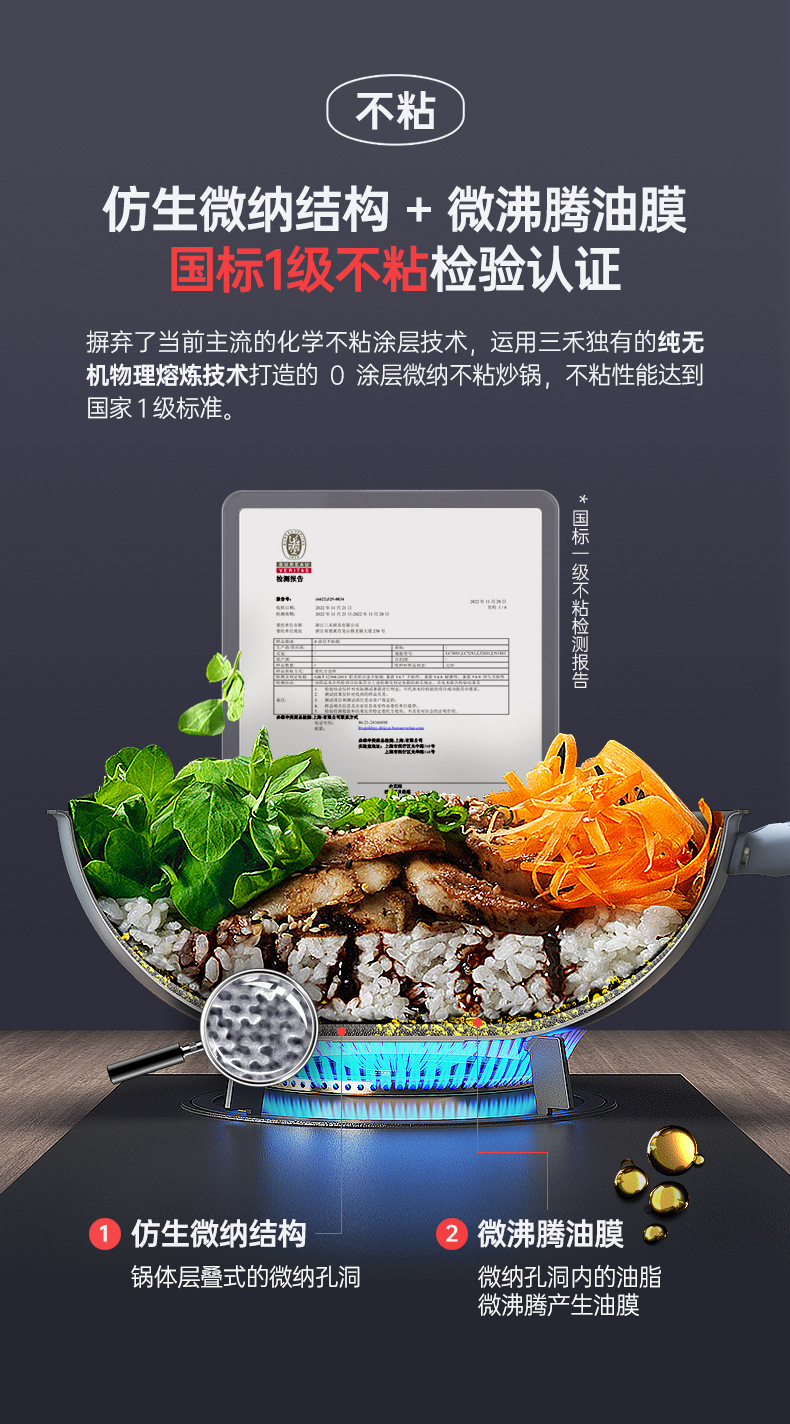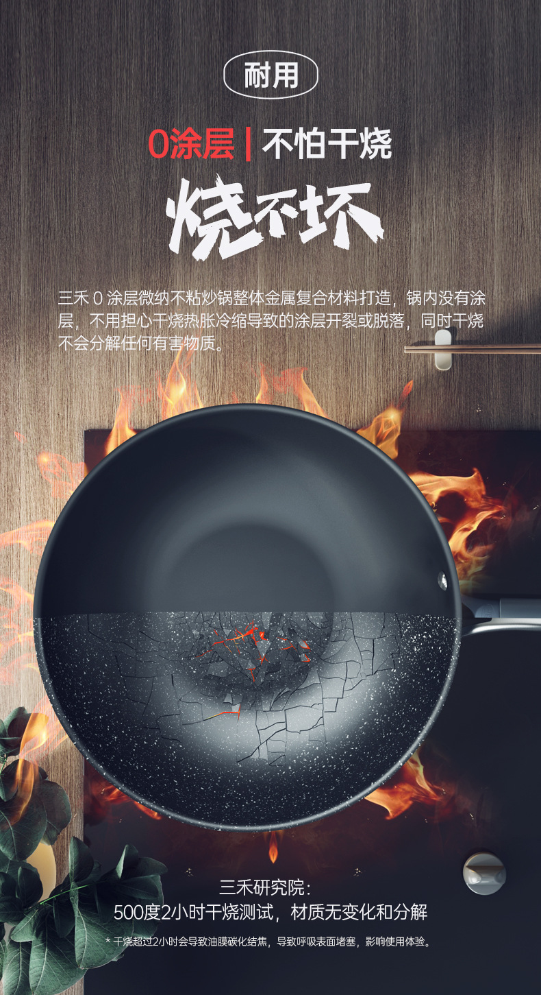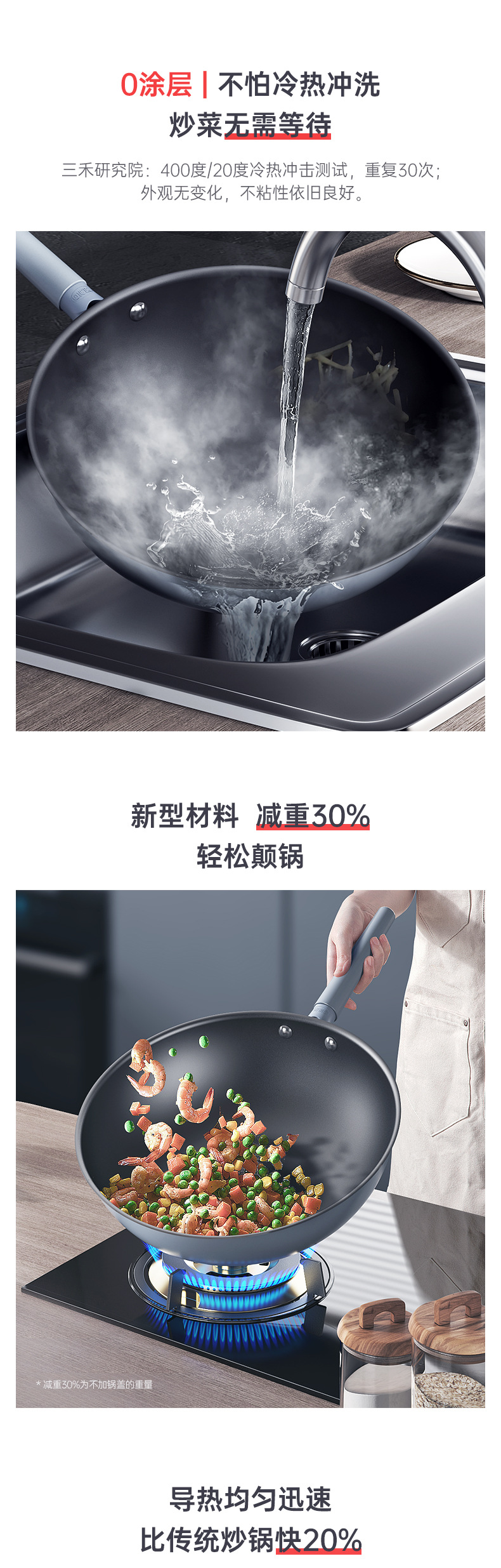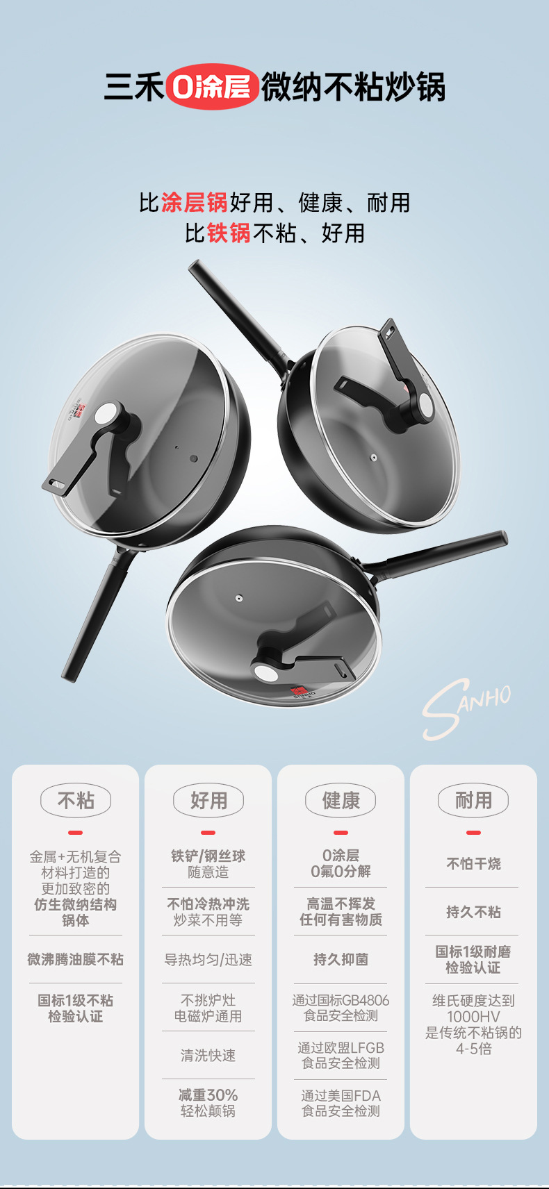 Sanhe Micro Nano 코팅되지 않은 붙지 않는 냄비 0 코팅 요리 냄비 인덕션 쿠커 가스 스토브 범용 30/32cm 크로스보더 T