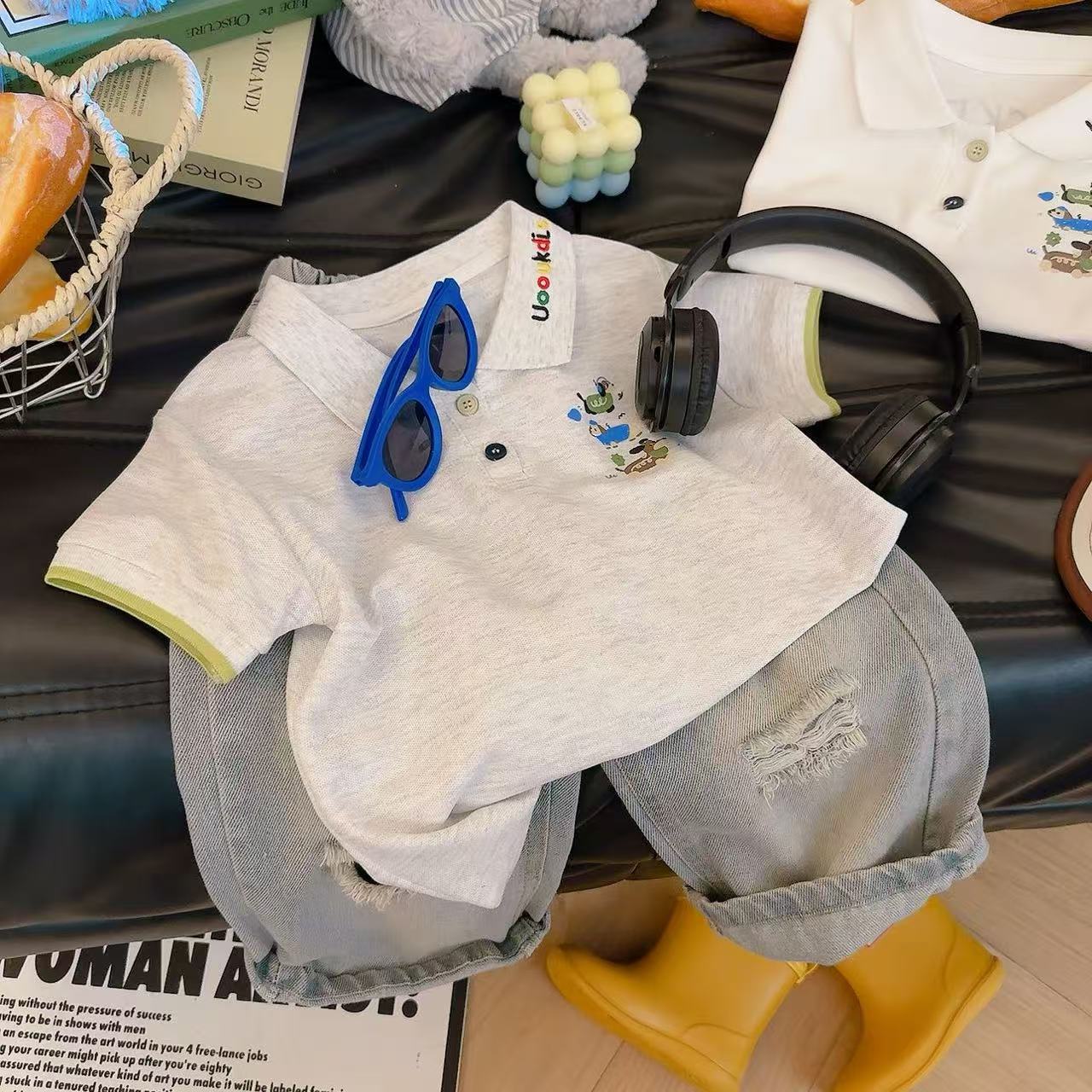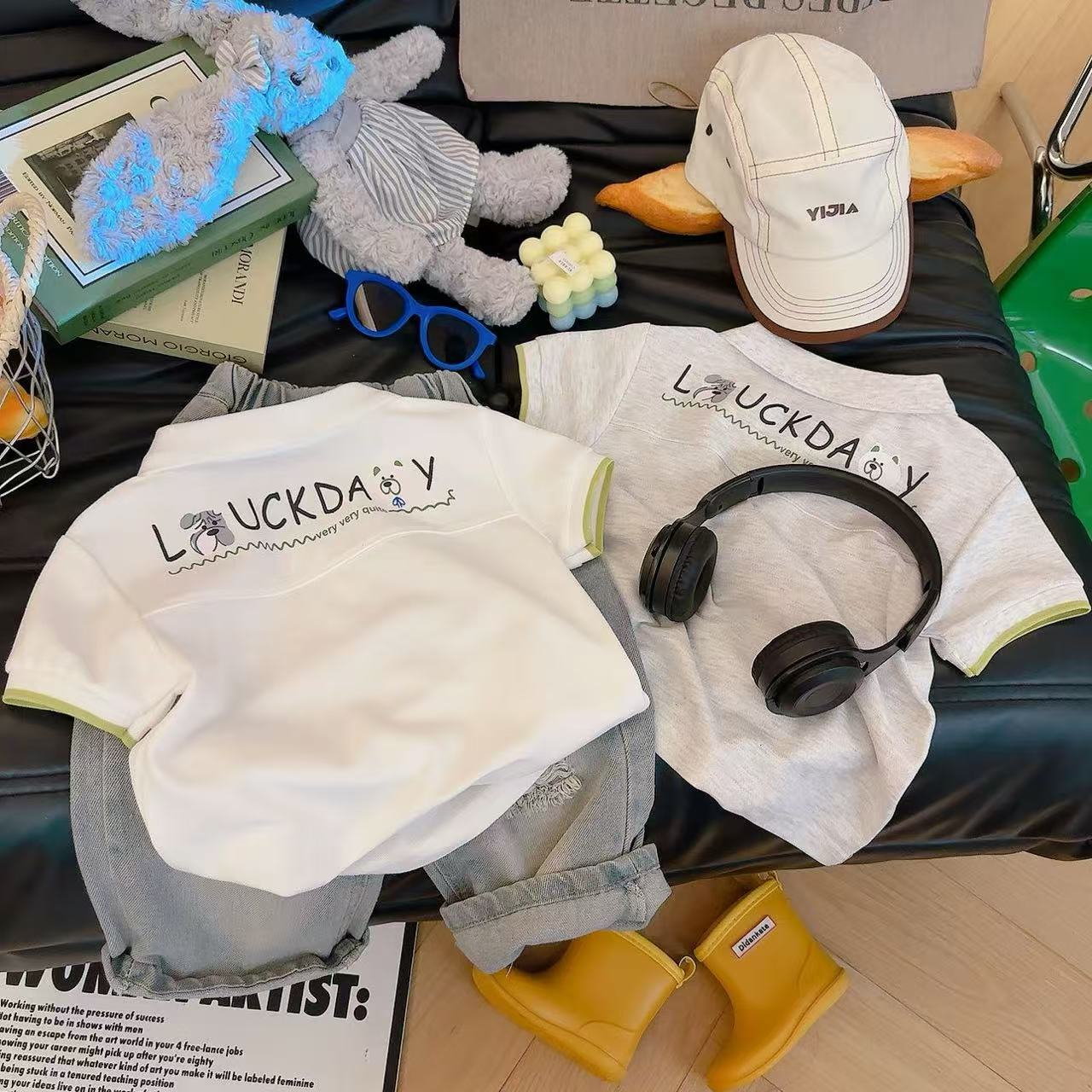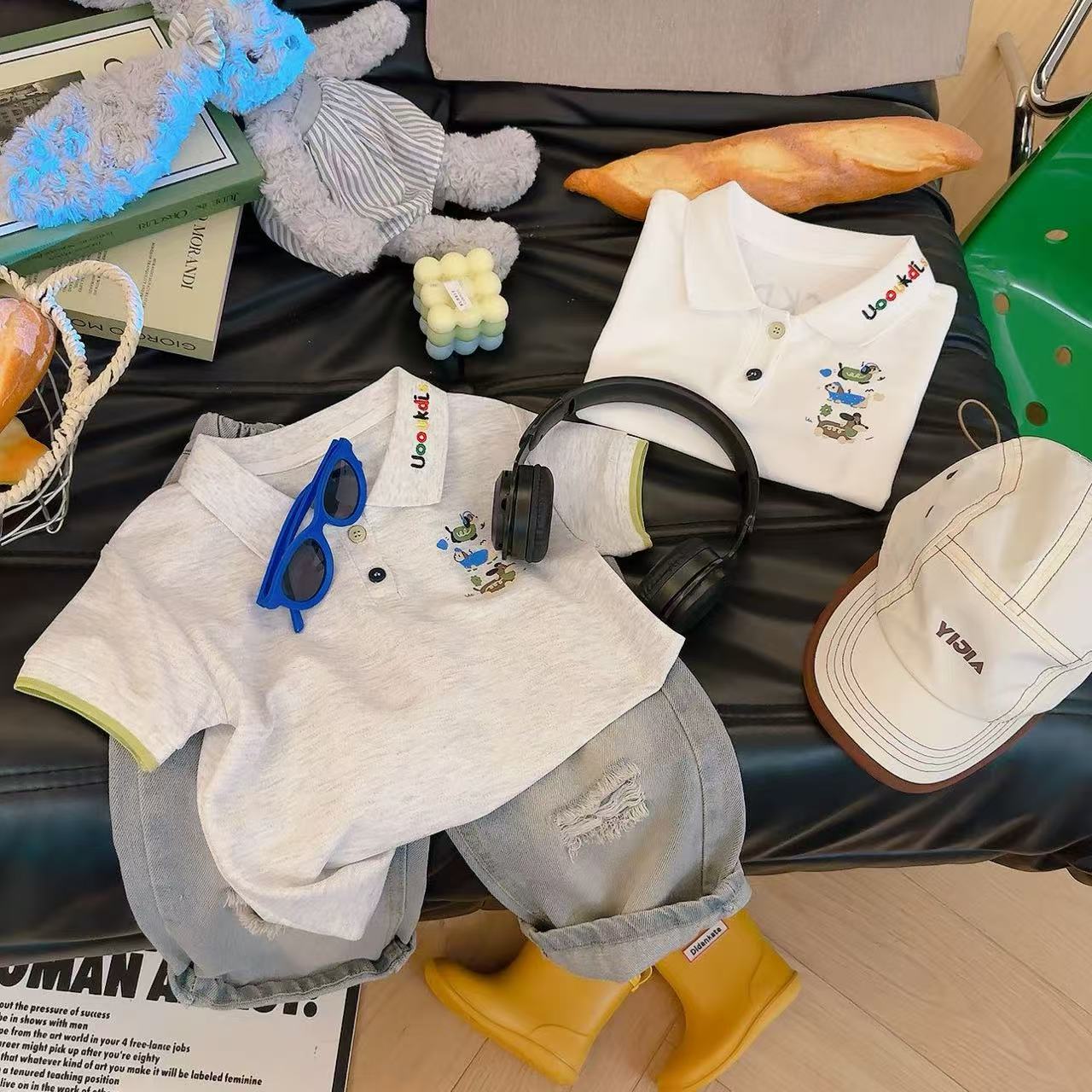 새로운 자수 어린이 반팔 대형 어린이 느슨한 유행 외형 POLO 셔츠 Lel 어린이 2025 새로운스토어 가기