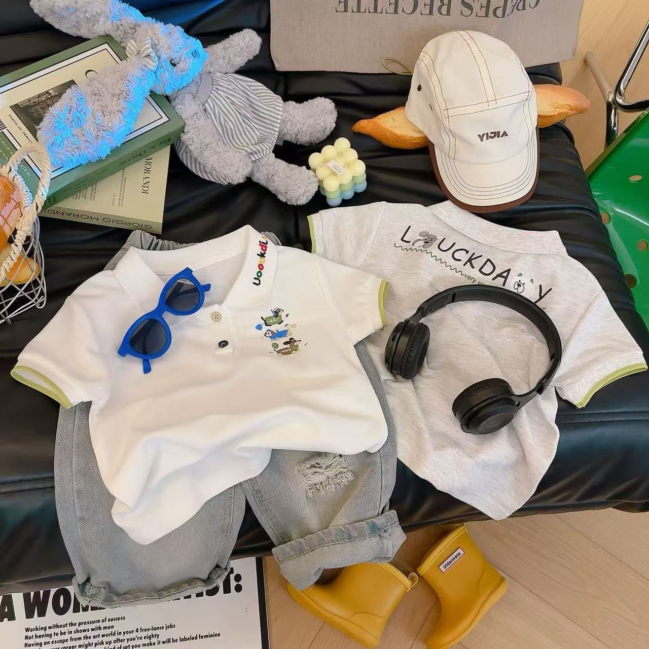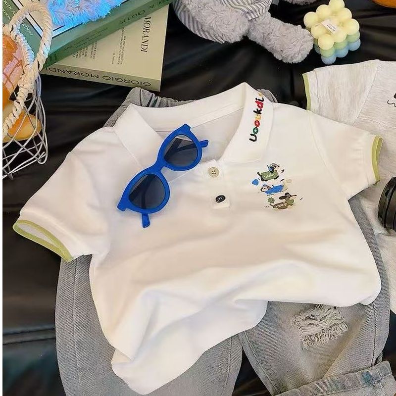 새로운 자수 어린이 반팔 대형 어린이 느슨한 유행 외형 POLO 셔츠 Lel 어린이 2025 새로운