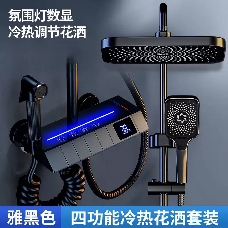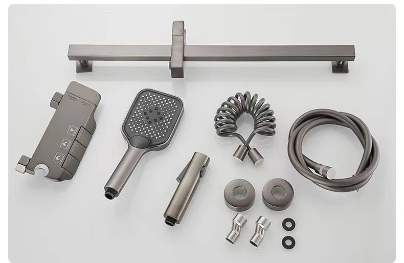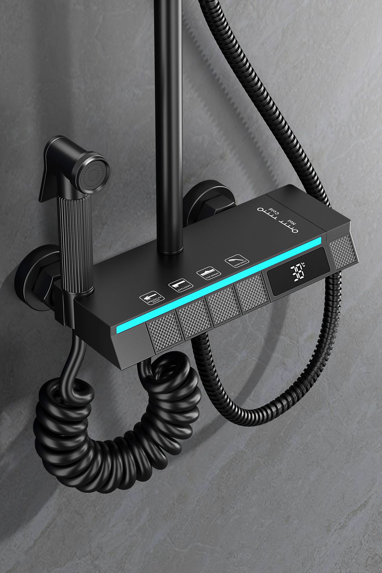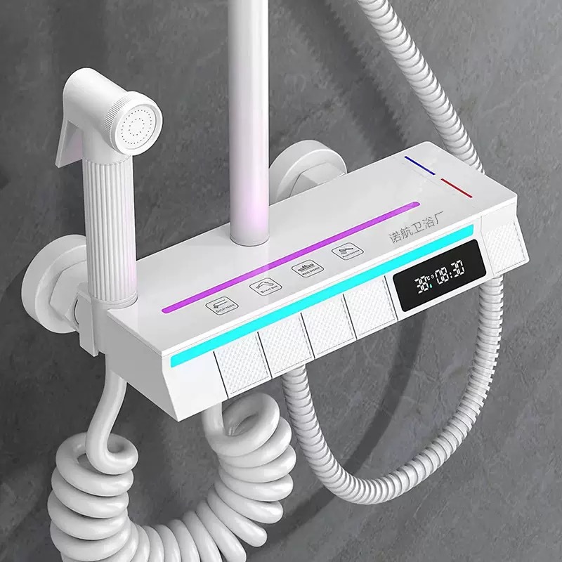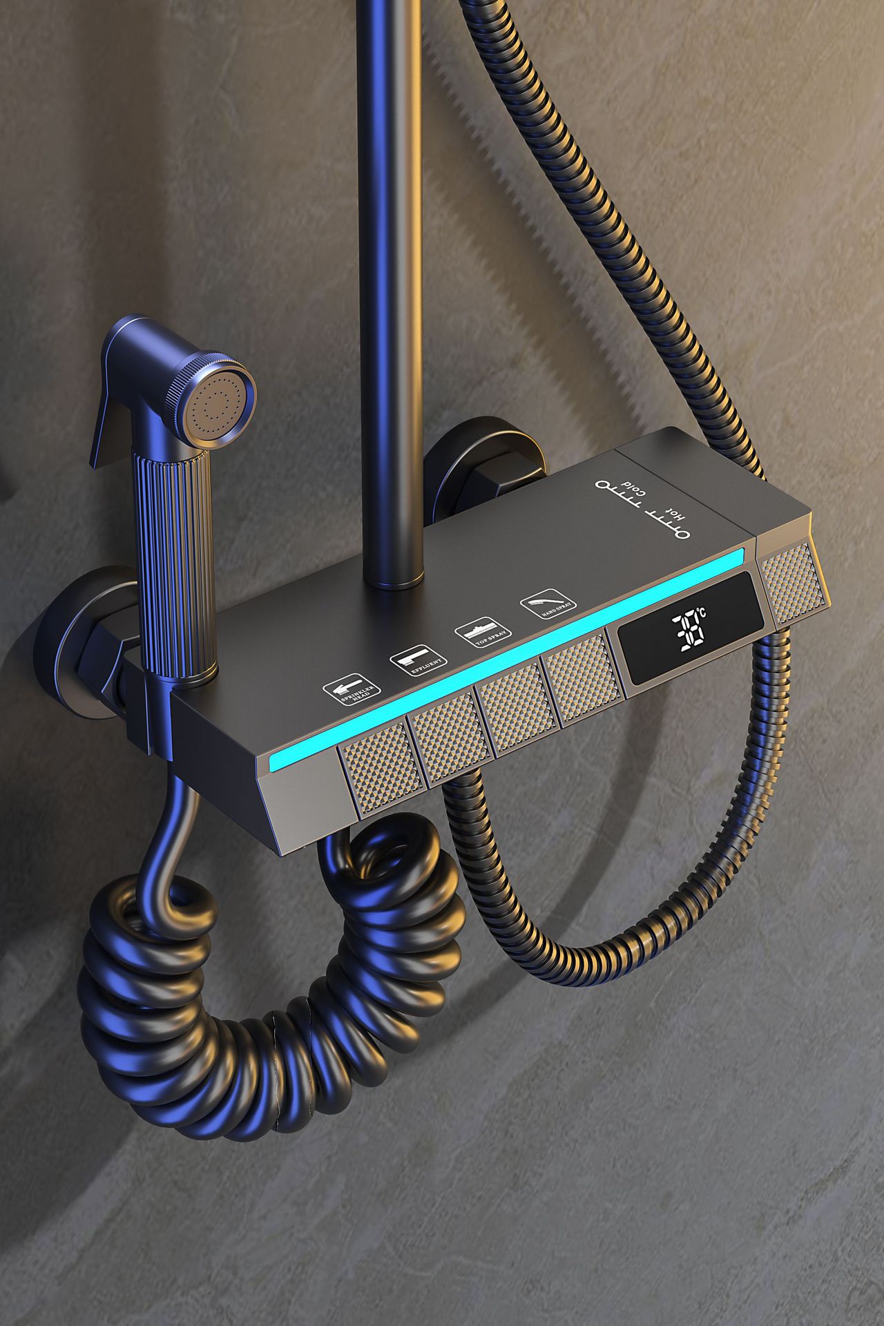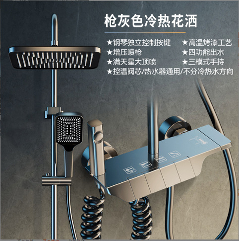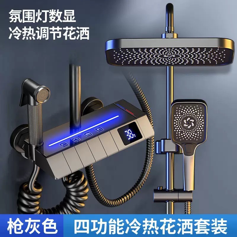 샤워 세트 총 회색 우유 흰색 검은 주방 욕실 손 스프레이 탑 스프레이 호스 피아노 키 캐리어 디지털 디스플레이