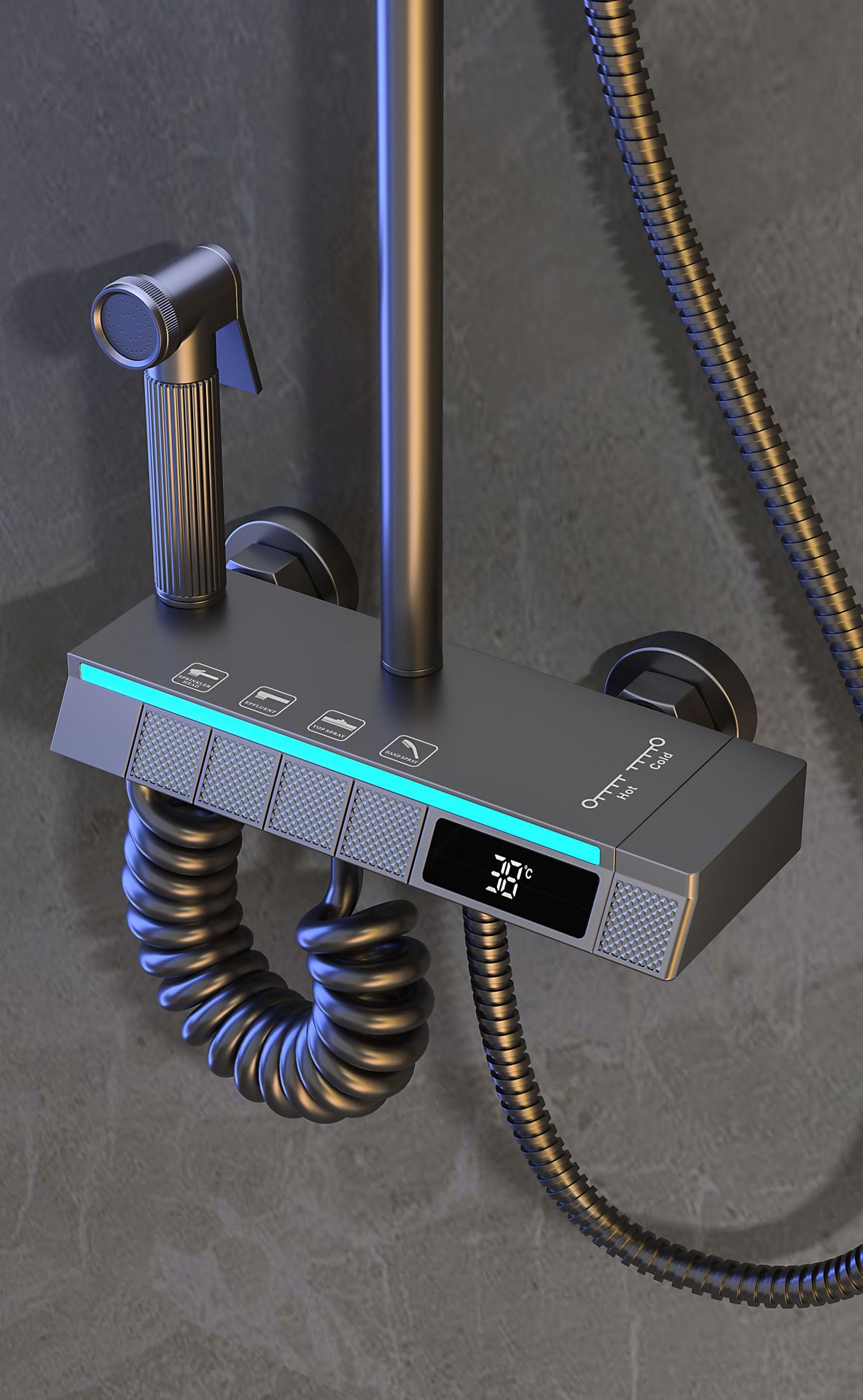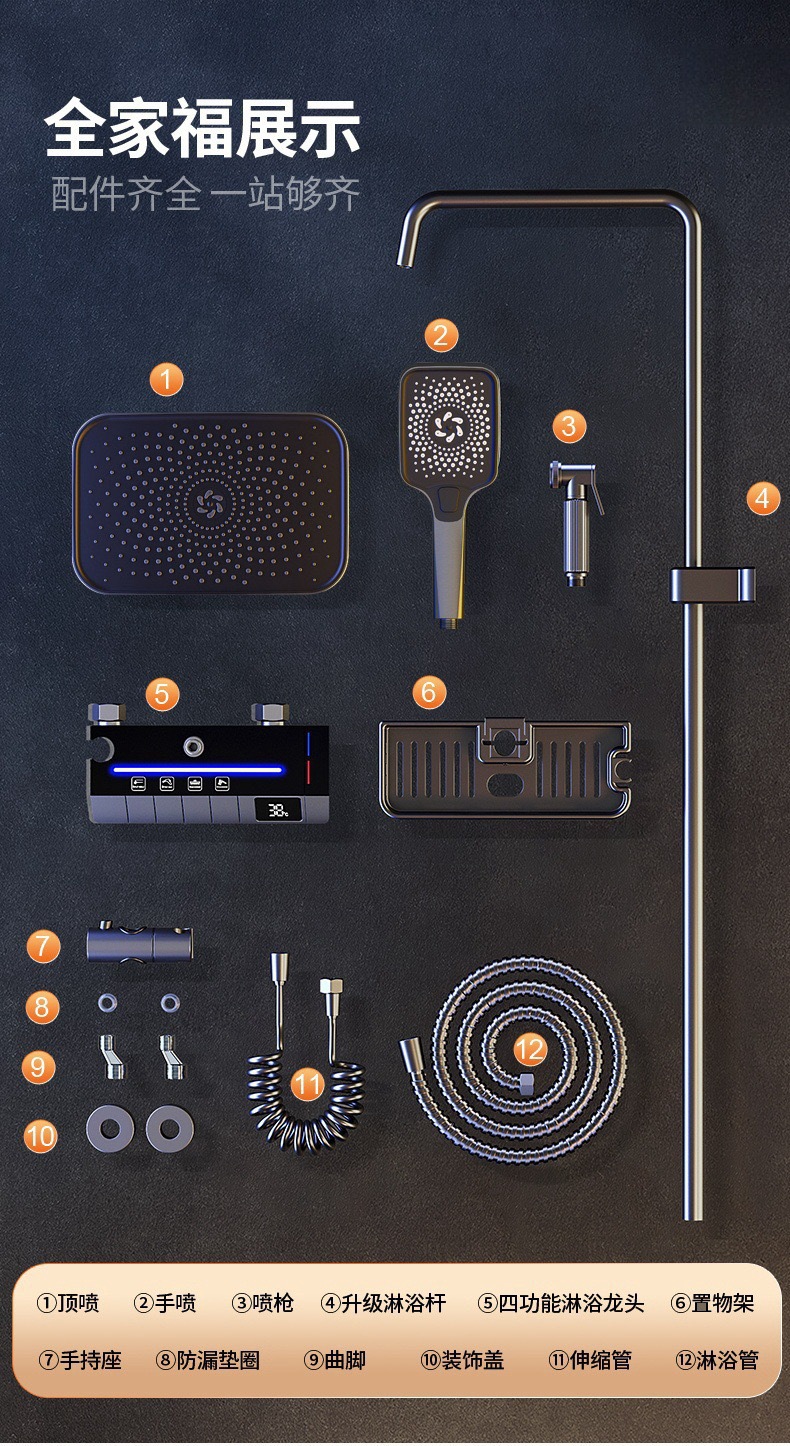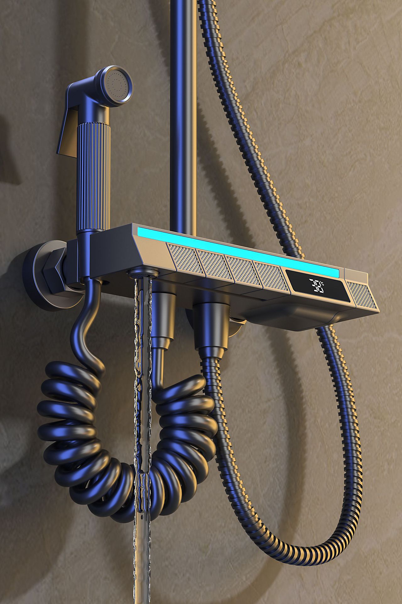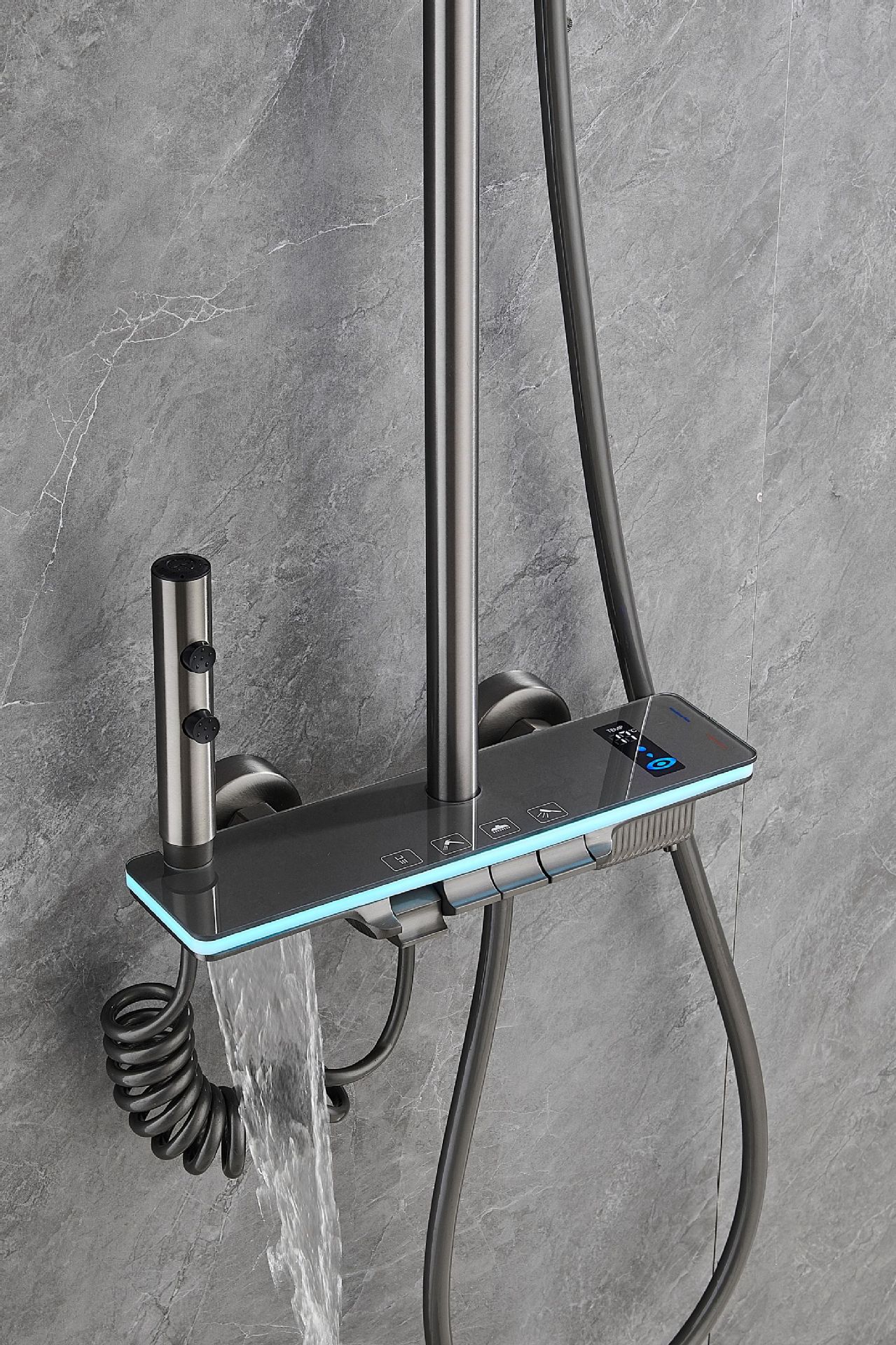 샤워 세트 총 회색 우유 흰색 검은 주방 욕실 손 스프레이 탑 스프레이 호스 피아노 키 캐리어 디지털 디스플레이