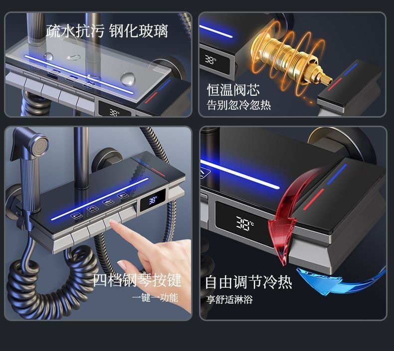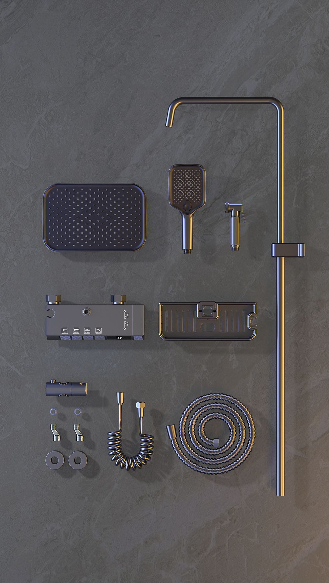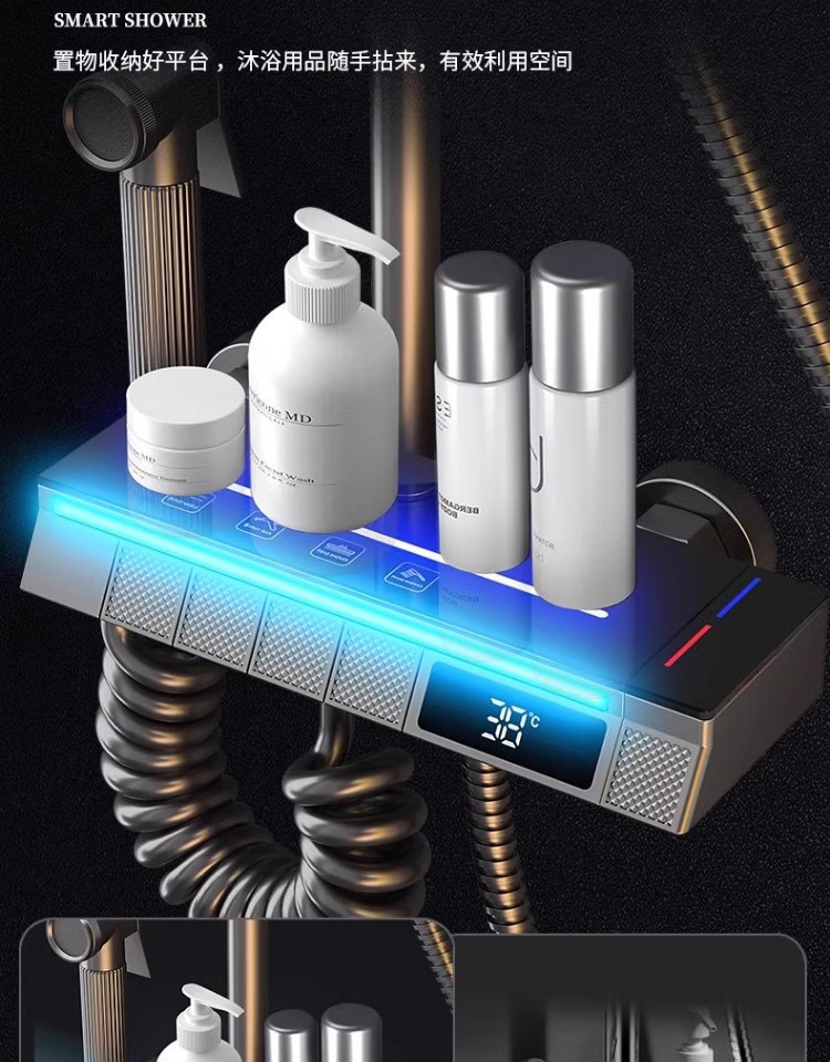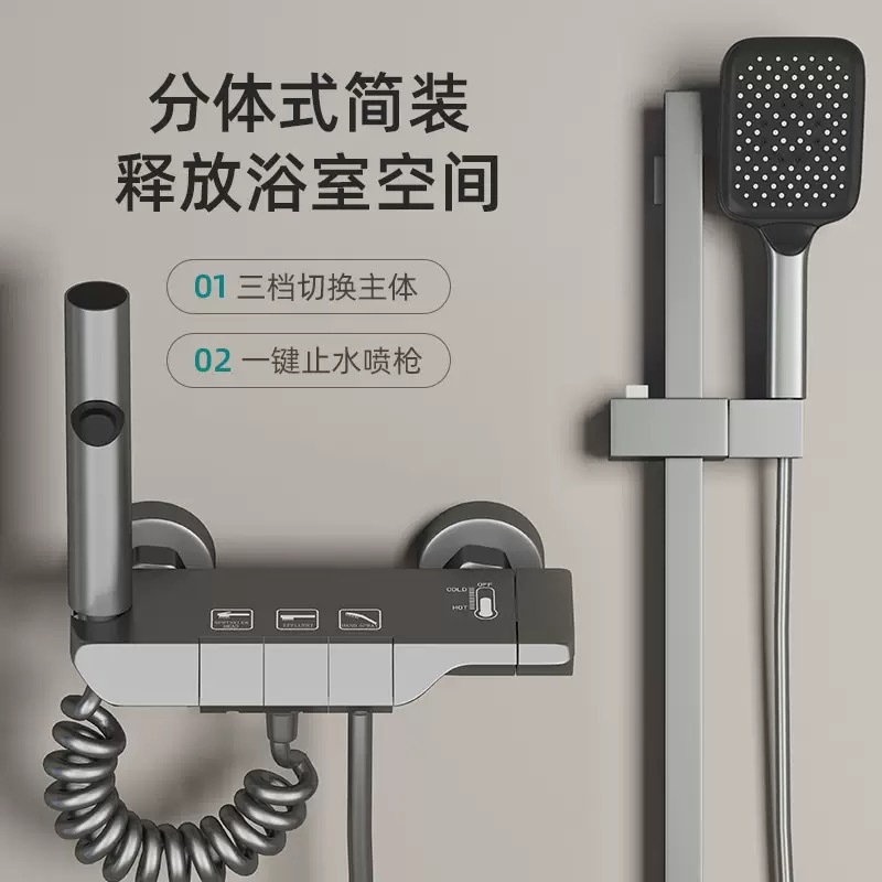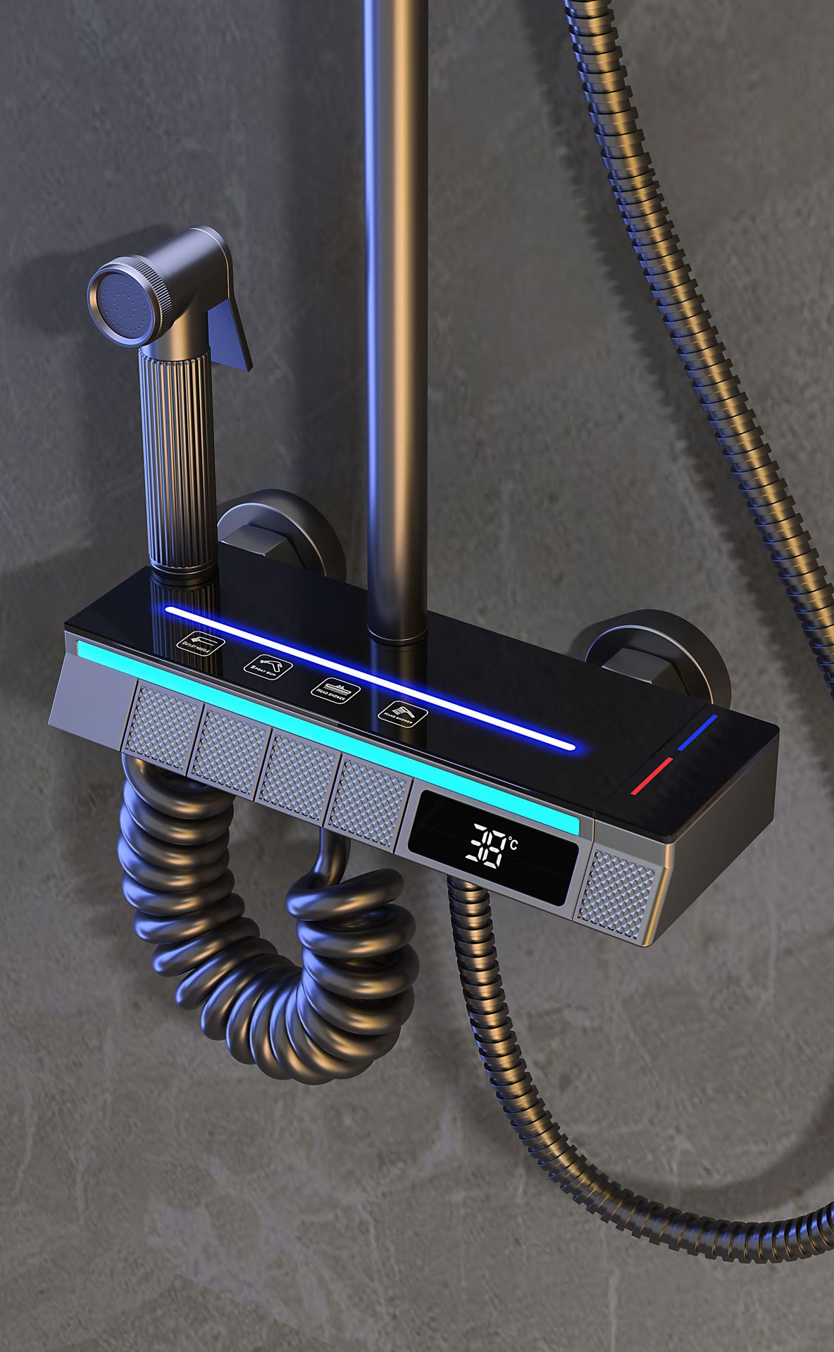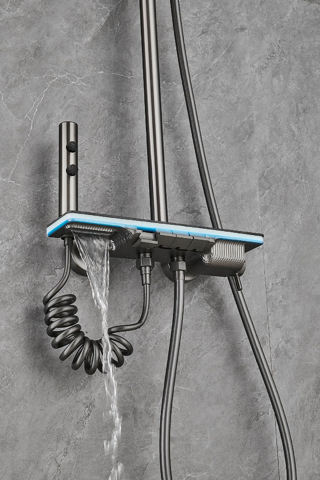 샤워 세트 총 회색 우유 흰색 검은 주방 욕실 손 스프레이 탑 스프레이 호스 피아노 키 캐리어 디지털 디스플레이