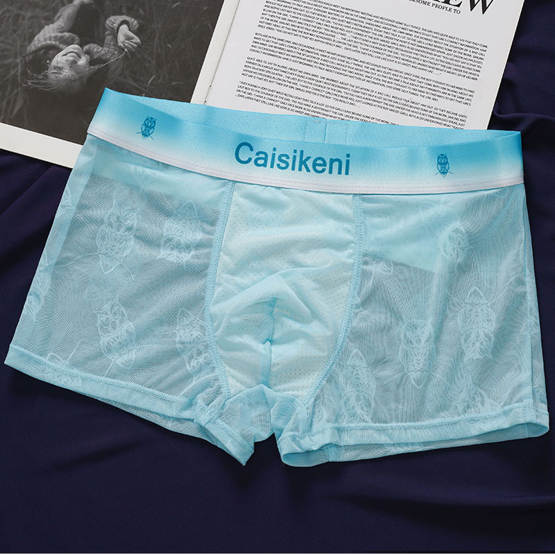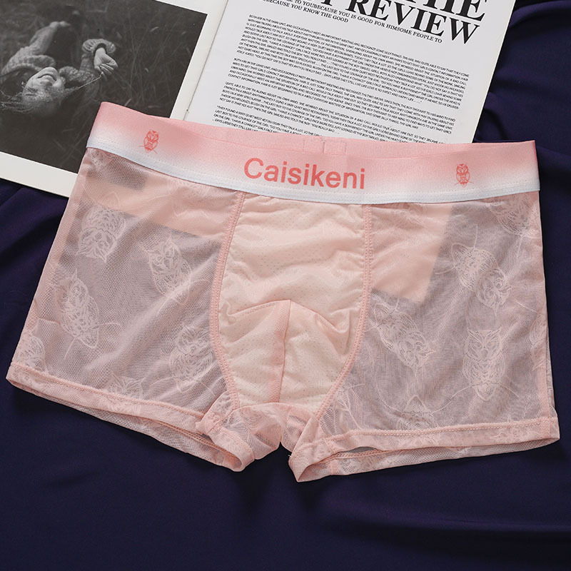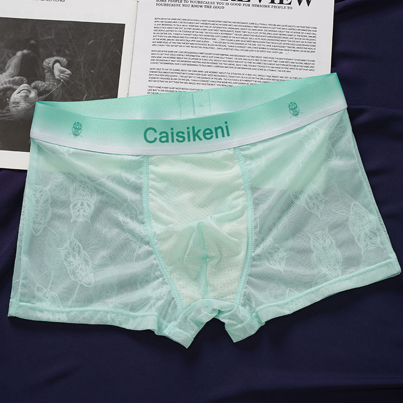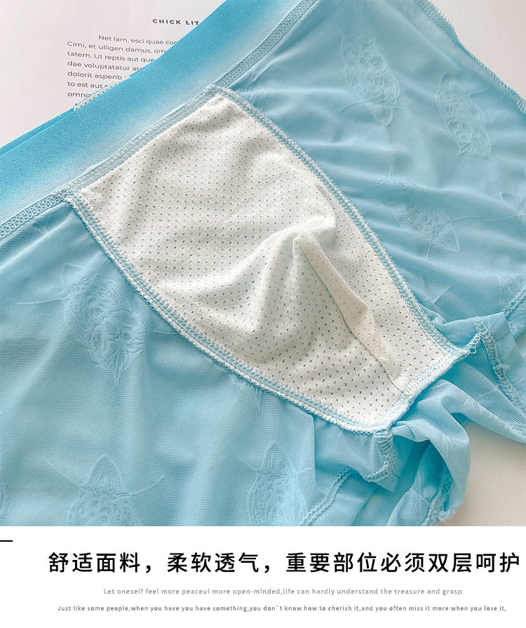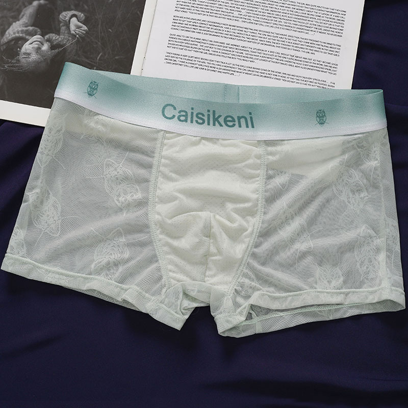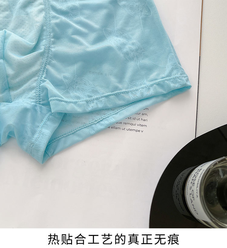 남성용 속옷, 아이스 실크, 남성용 레이스 사각 여름 얇은 무봉제 메쉬 섹시한 투명 사각 팬티 남성용스토어 가기