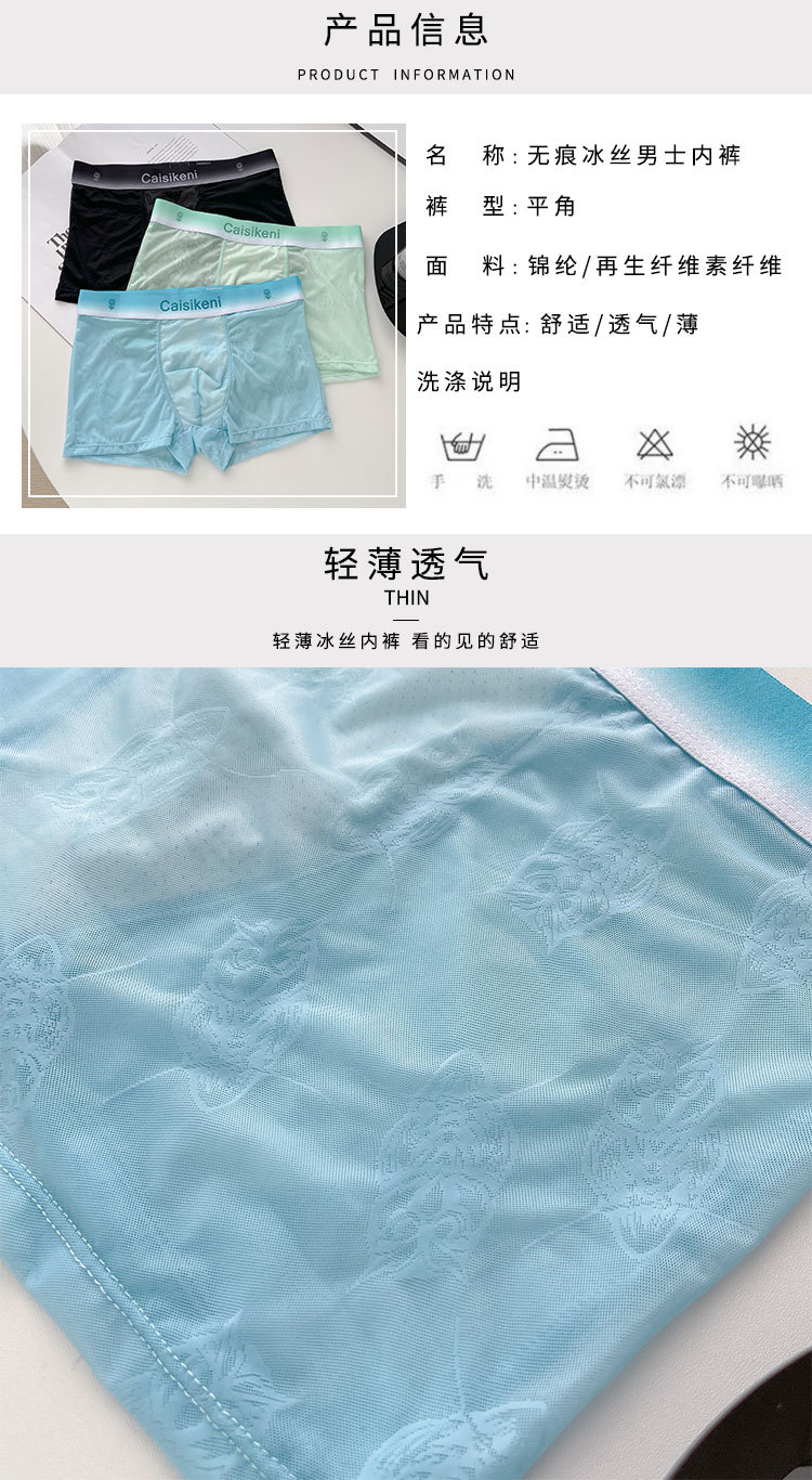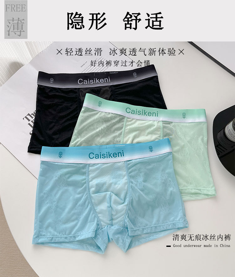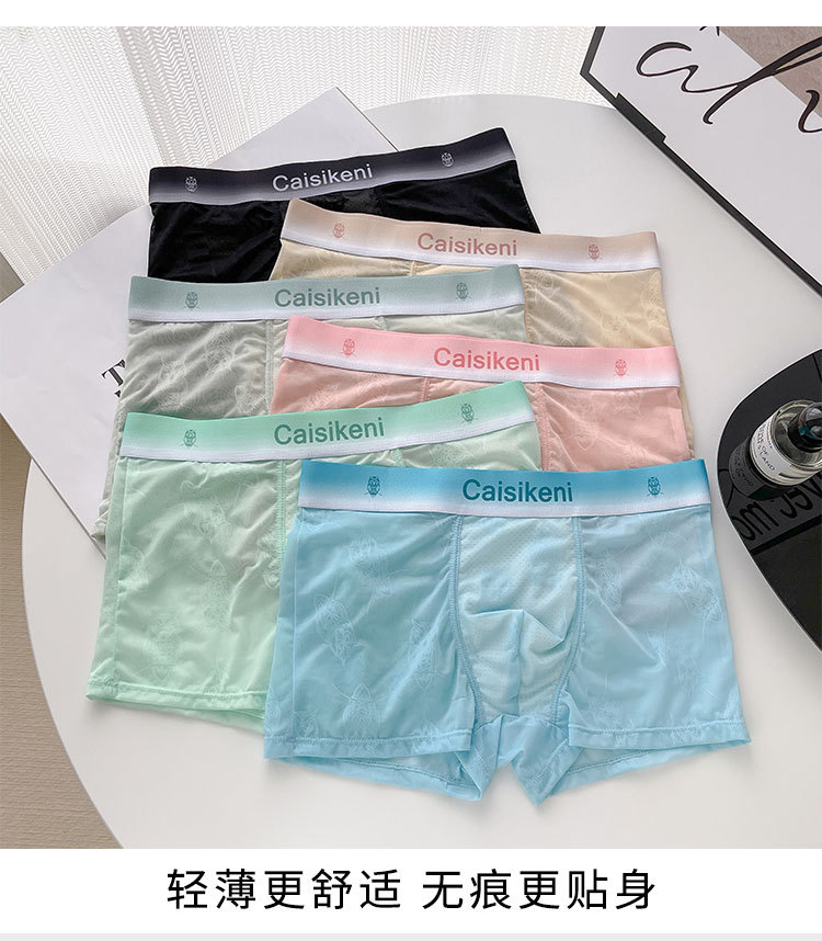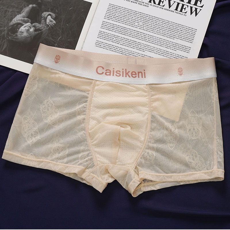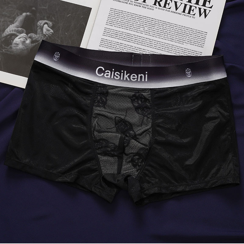 남성용 속옷, 아이스 실크, 남성용 레이스 사각 여름 얇은 무봉제 메쉬 섹시한 투명 사각 팬티 남성용스토어 가기