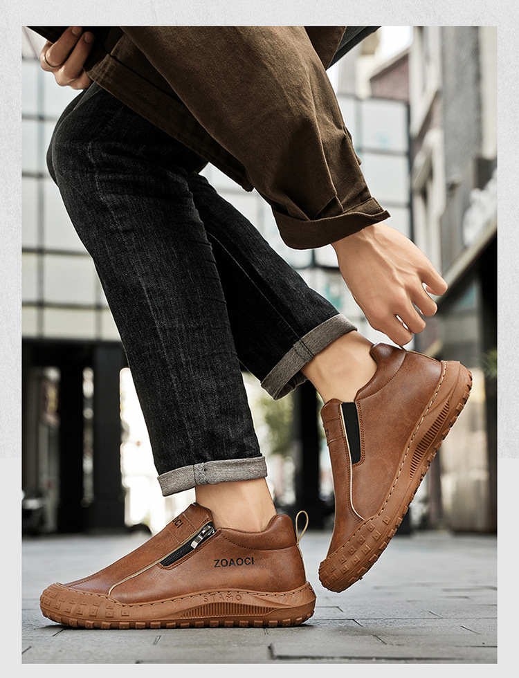 남성용 슬립온 신발, 봄 신작 통기성 건설 현장 작업용 미끄럼 방지 내마모성 가죽 신발, 스포츠 및 레저 운동화, 노동 보호 신발스토어 가기