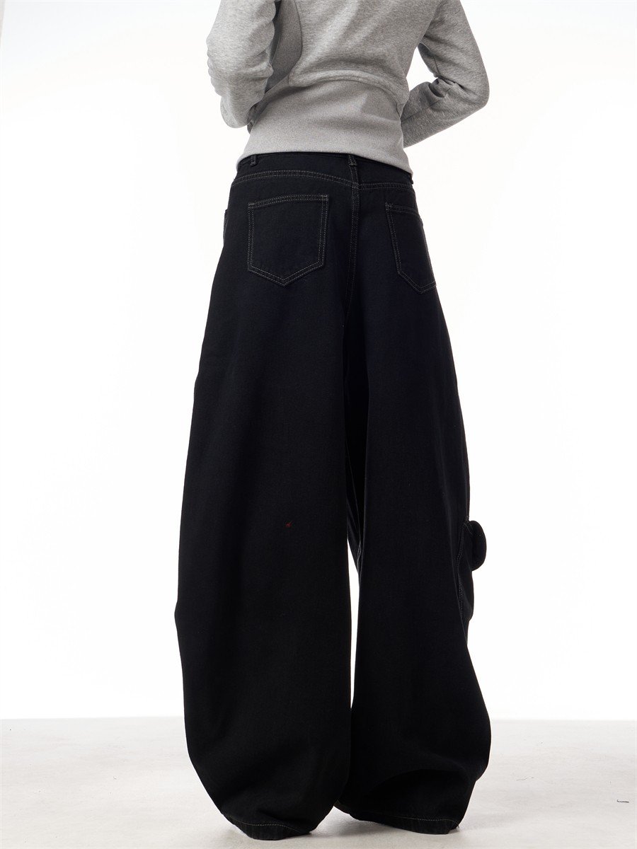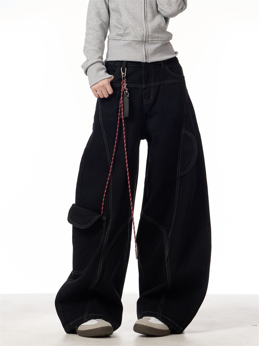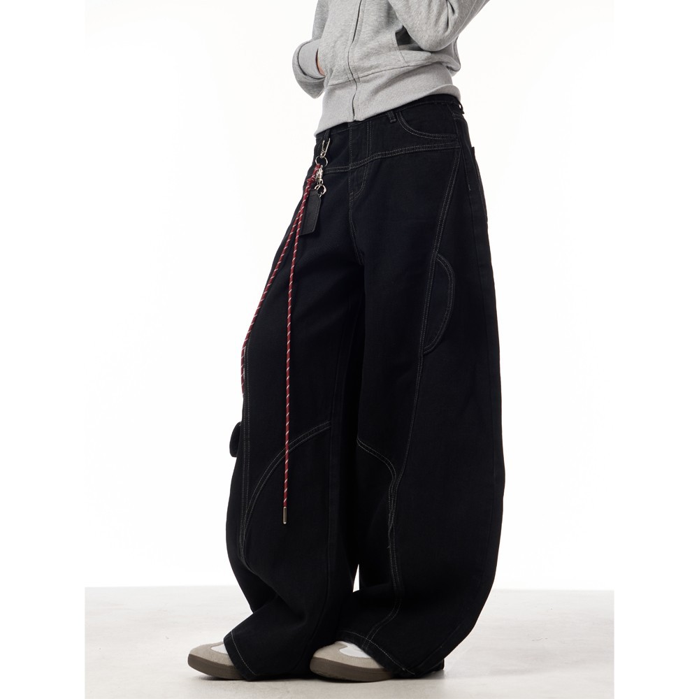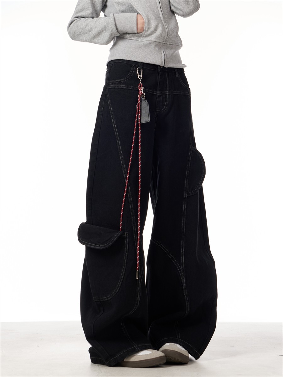 봄과 가을 2025 신년 붉은 청바지 여성 국가 유행 해체 된 마체테 디자인 느슨한 유행 유행 바지스토어 가기
