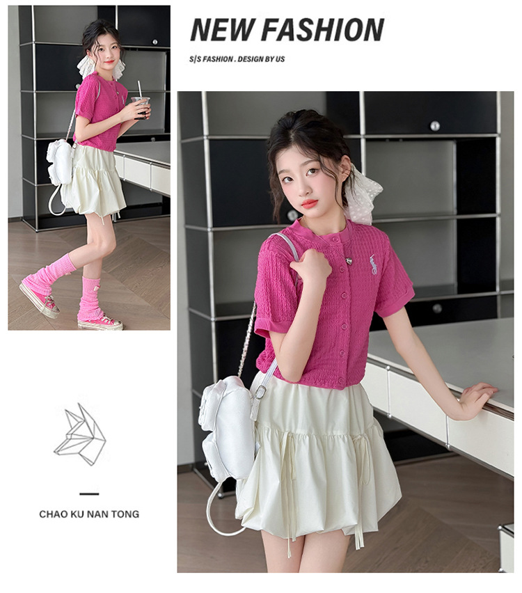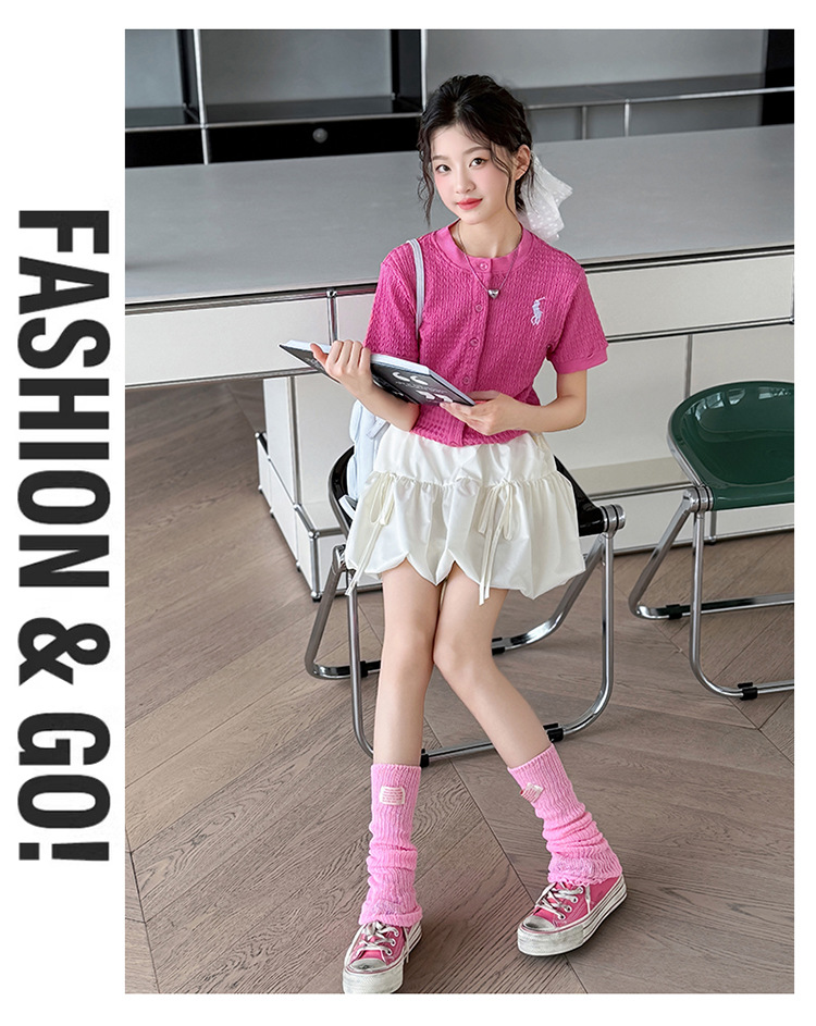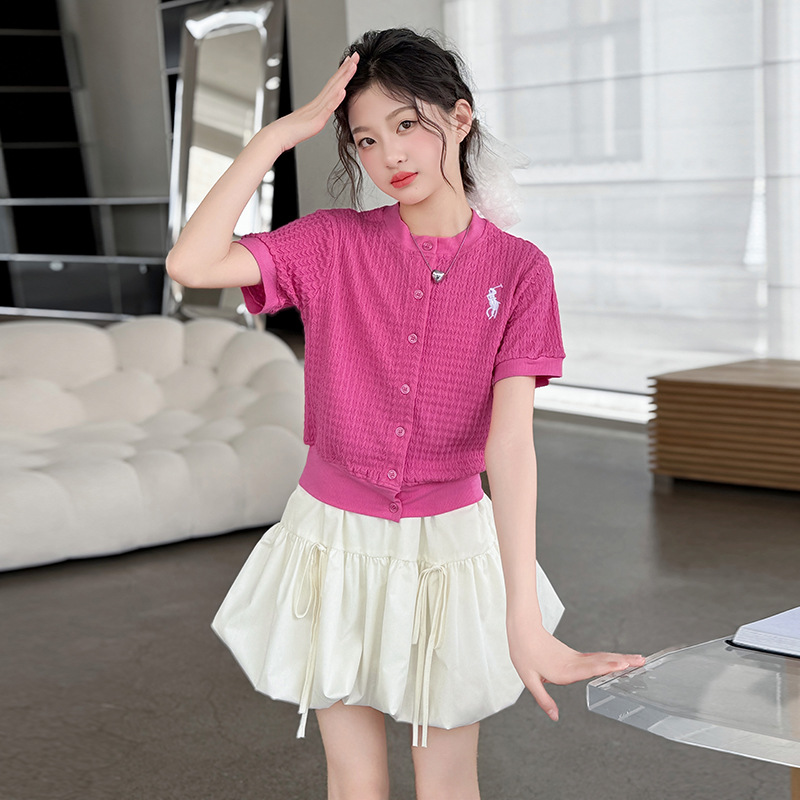 소녀 반팔 카디건 여름 2025 새로운 서양식 어린이 니트 탑 티셔츠 캐주얼 트렌디베이스 티셔츠
