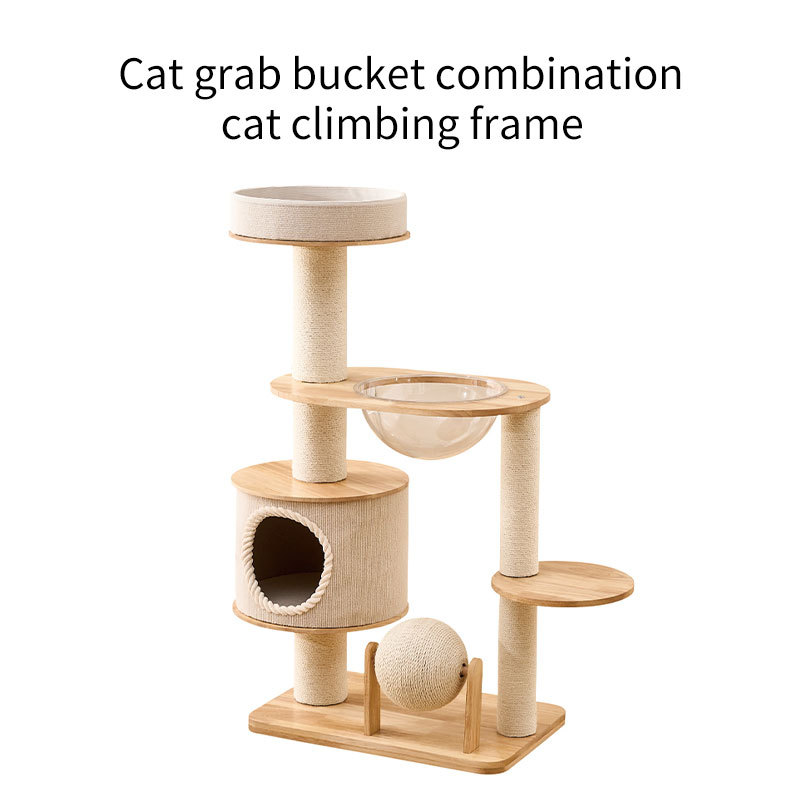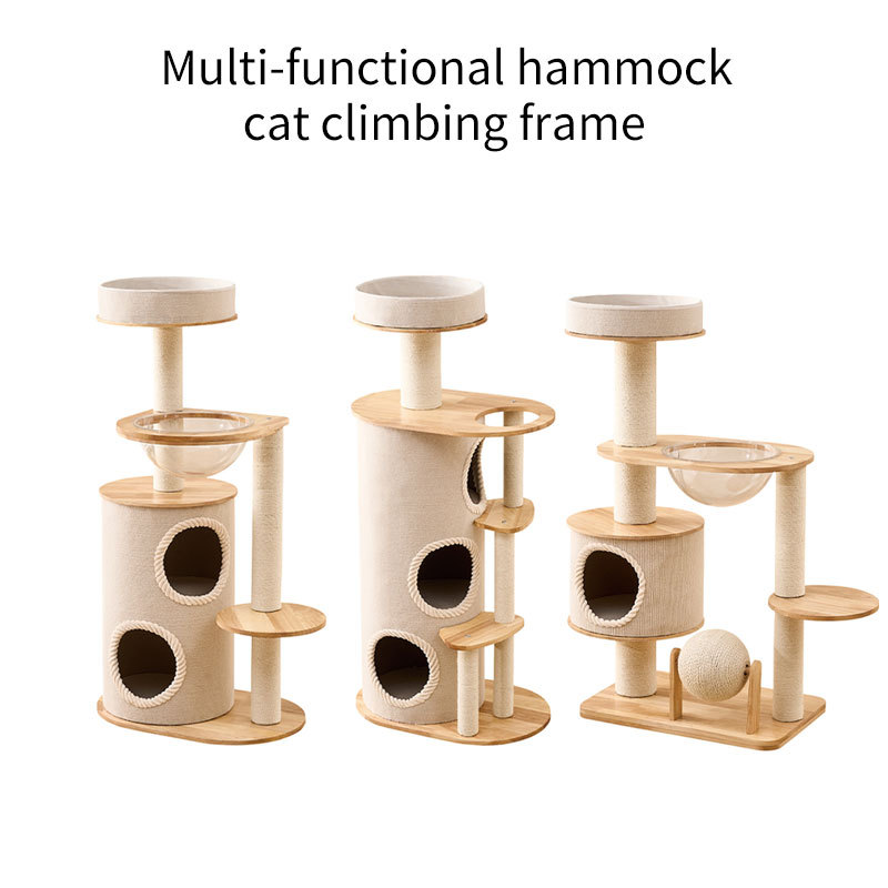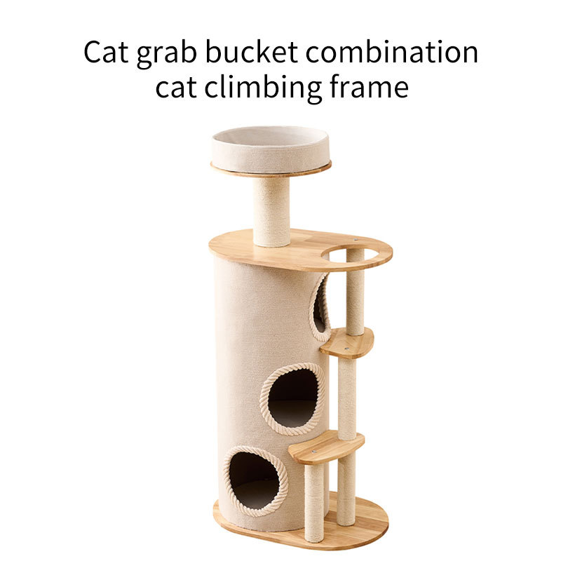 고양이 등반 프레임 고양이 둥지 고양이 나무 통합 닷지 방지 스크래치 방지 다기능 나무 구멍 고양이 둥지 고양이 등반 프레임 물과 나무