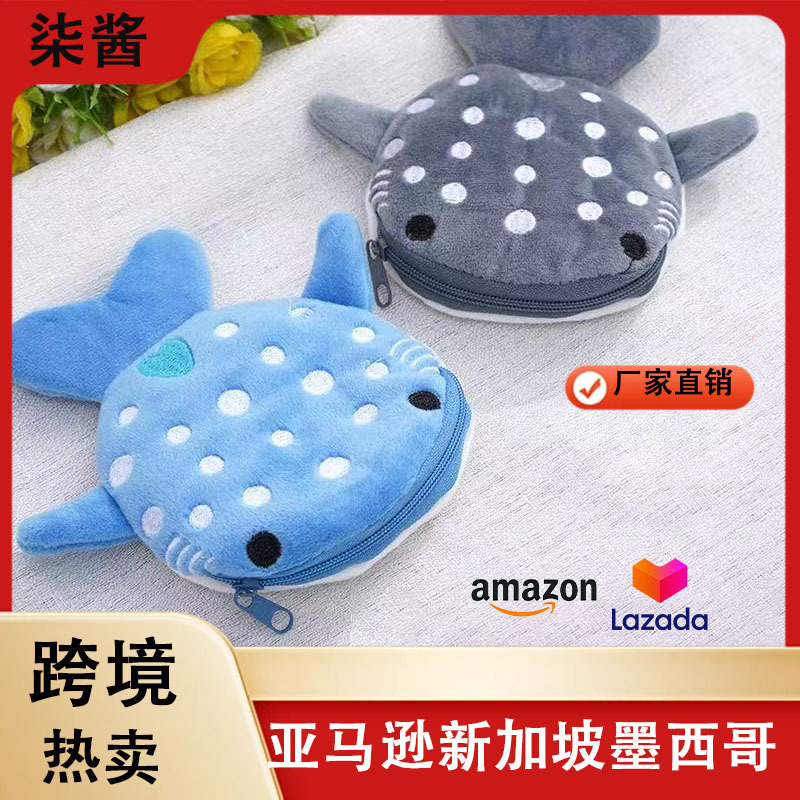 국경 간 대외 무역 동전 지갑 블루 상어 장식 지퍼 가방 데이터 케이블 만화 펜던트 가방 어린이 플러시 장난감스토어 가기