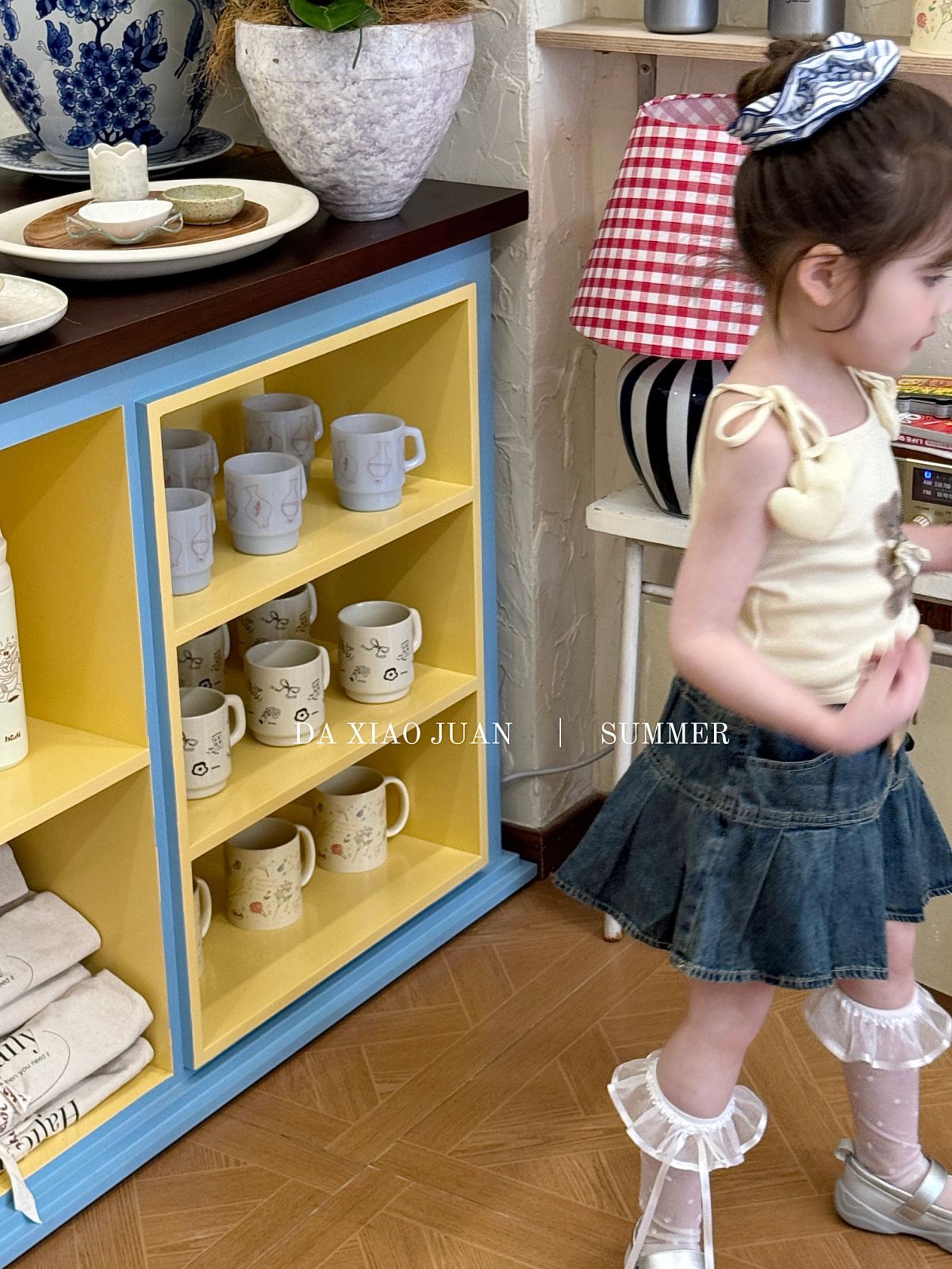사이즈 롤 25 여름 소녀 반 길이 데님 스커트 부드러운 원단 주름 치마 귀여운 달콤한 올 매치 스커트