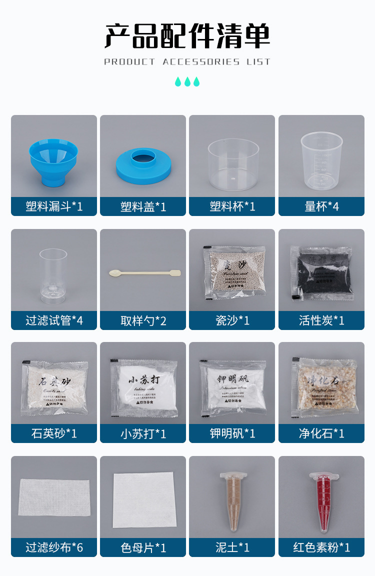 유치원 diy 하수 필터링 수제 정수기 과학 작은 실험 세트 장치 시스템 재료 정화 교육 보조 장치