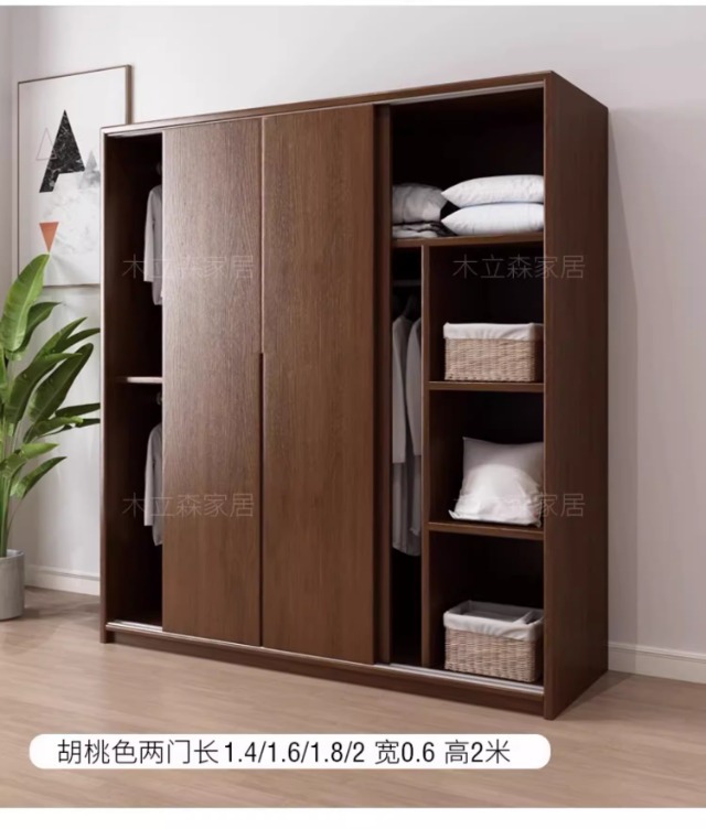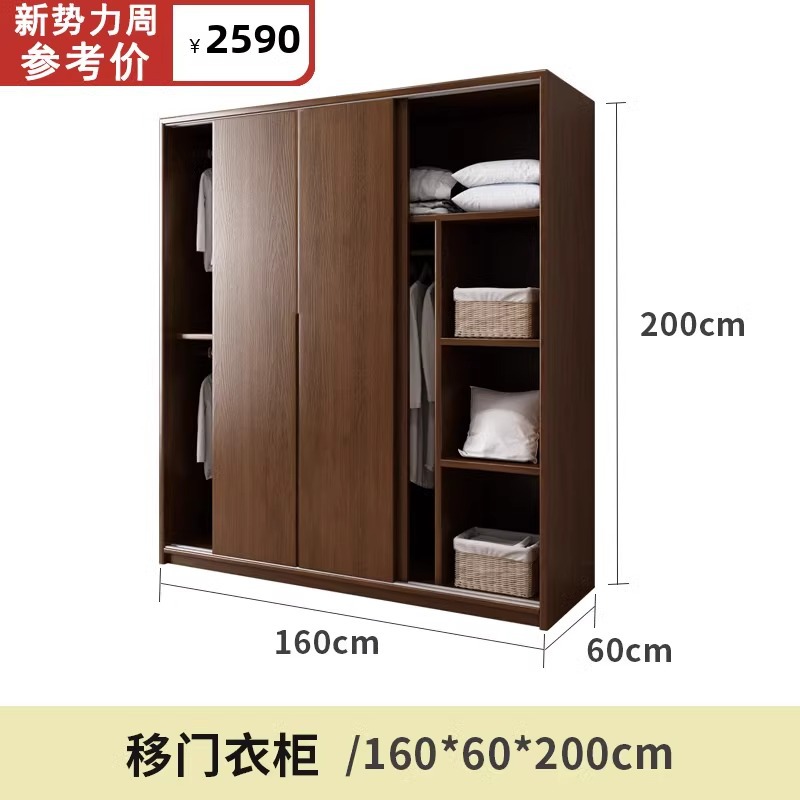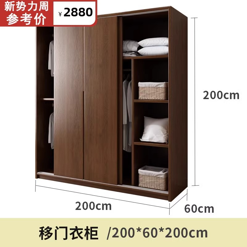 단단한 나무 슬라이딩 도어 옷장 오크 작은 아파트 스토리지 슬라이딩 도어 캐비닛 호두 색상 홈 침실 슬라이딩 도어 대형 옷장스토어 가기
