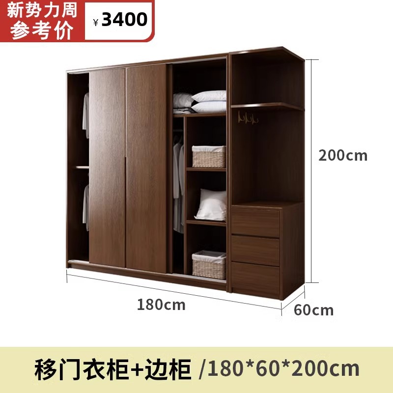 • 2.0m 미닫이문 옷장 + 사이드 캐비닛