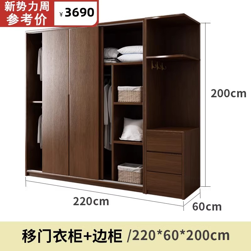 • 2.2m 미닫이문 옷장 + 사이드 캐비닛