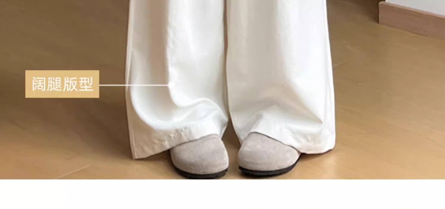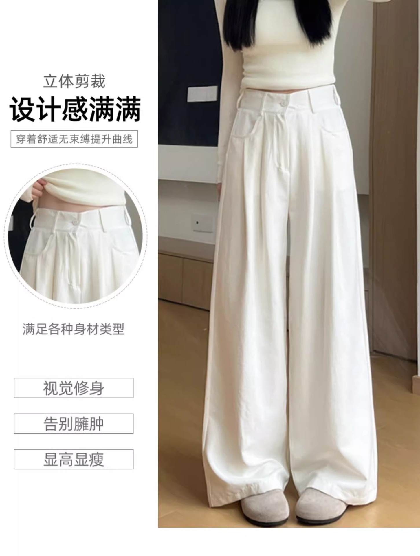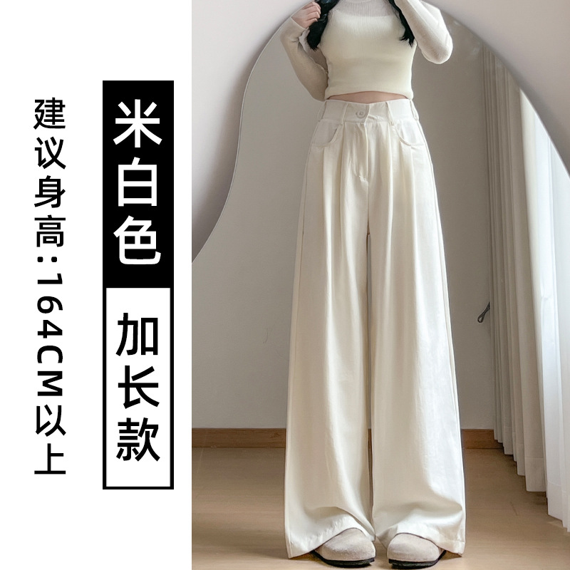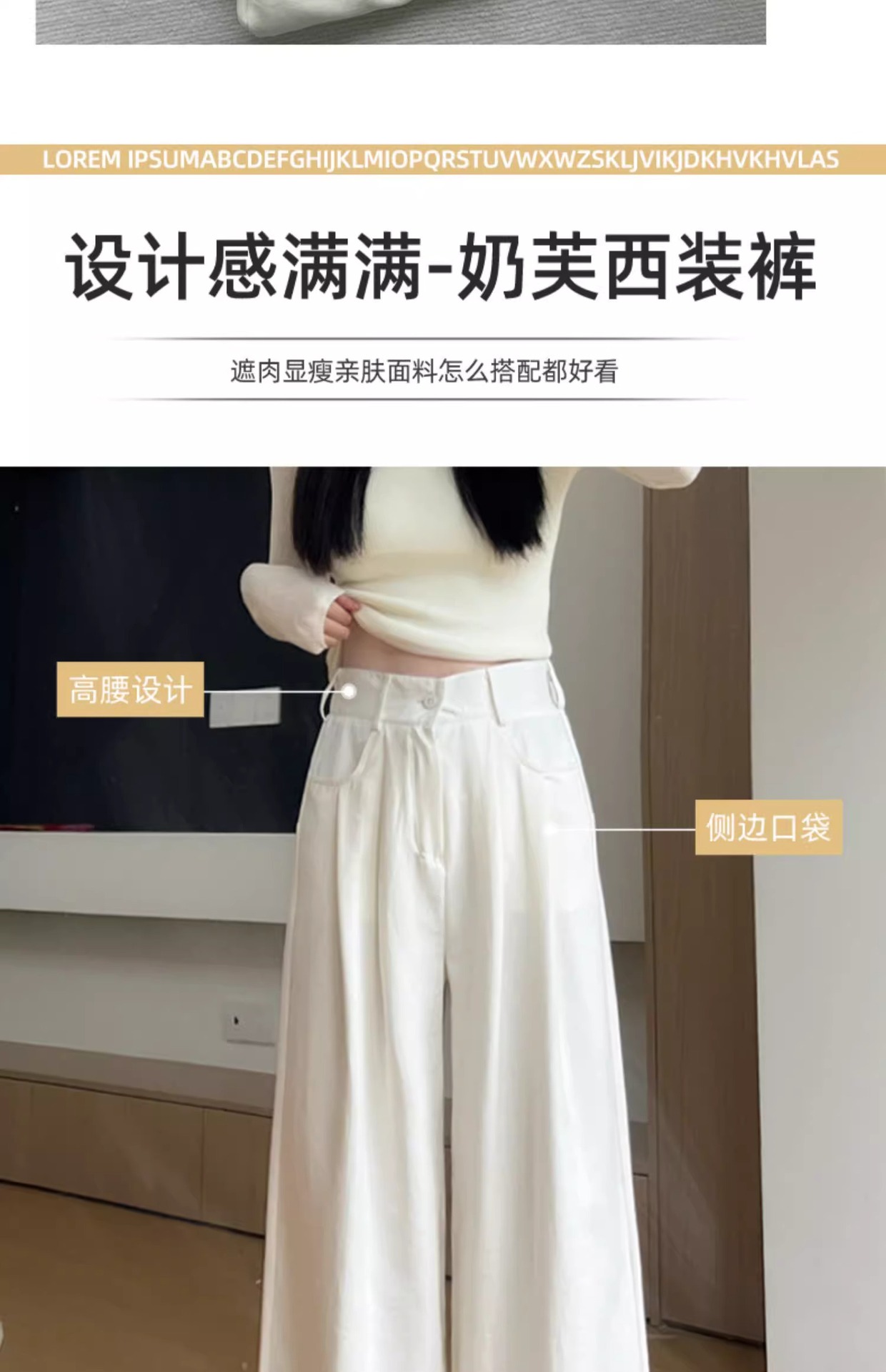 아이보리 밀크 푸 세트 넓은 다리 바지 여성 여름 얇은 2025 새로운 스타일 작은 높은 허리 얼음 실크 dape 야마모토 바지스토어 가기